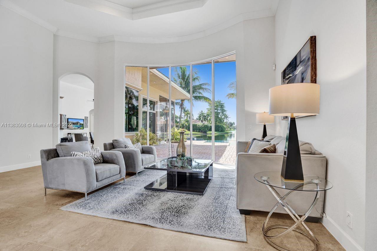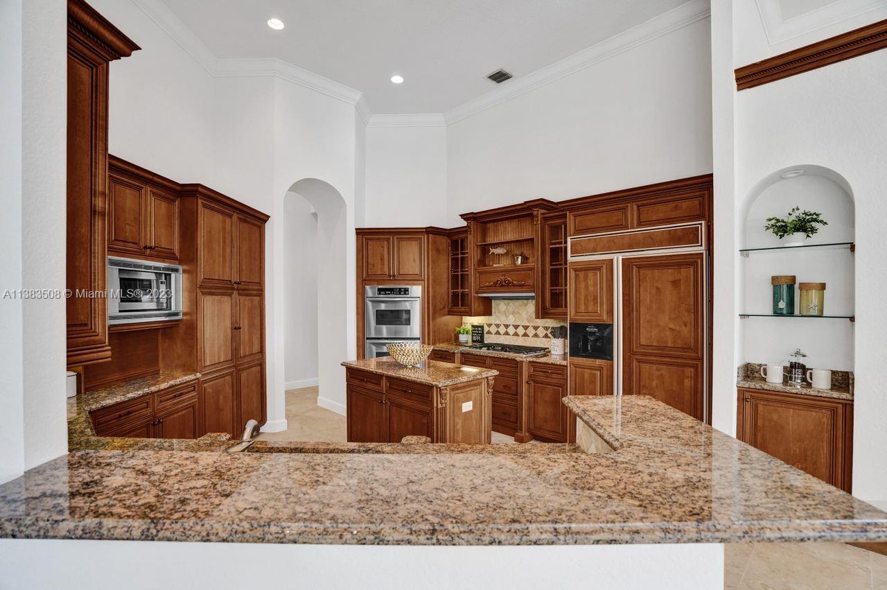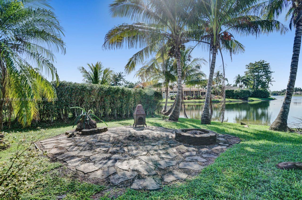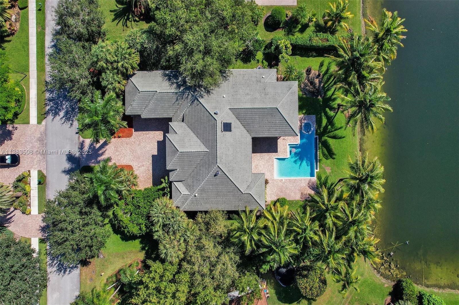 Simply stunning half acre waterfront lot in Exclusive Stonebrook Estates community in the equestrian Town of Davie. Home is located on the best lakefront lpoint ot in the community with long tranquil lakeviews from the moment you enter home with gorgeous remodeled infinity edge pool and jacuzzi. Fantastic one-story split floor plan with 5 bedrooms PLUS office,4 bathrooms,3 car garage and 18 foot ceilings. Beautiful chef's kitchen with Sub Zero refrigerator, gas stove, wood cabinets and granite counter tops. Huge master suite with adjacent sitting/gym area and large walk-in closets. Grand master bath with granite and double shower heads. Freshly painted inside and outside. Solar water heater. Accordion shutters.True pleasure to show and you will be impressed!