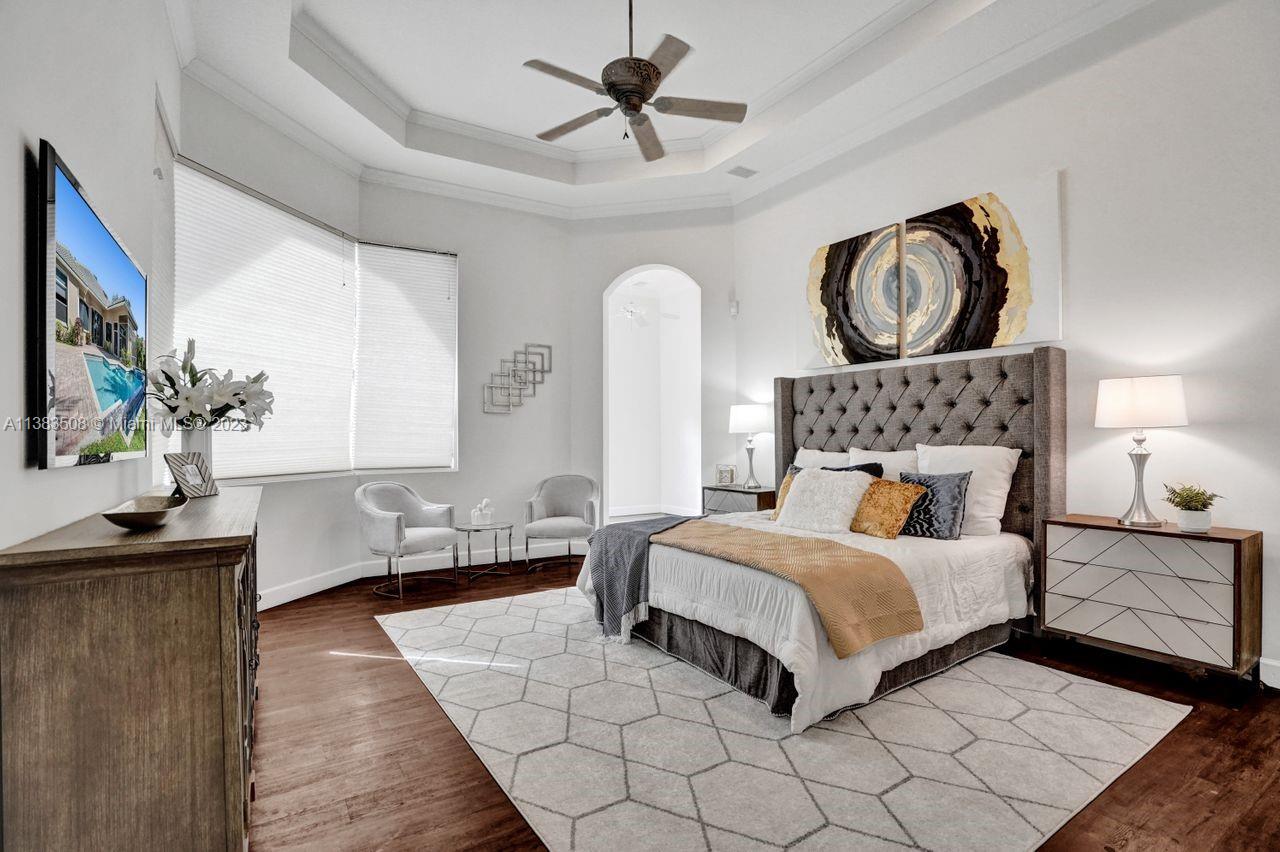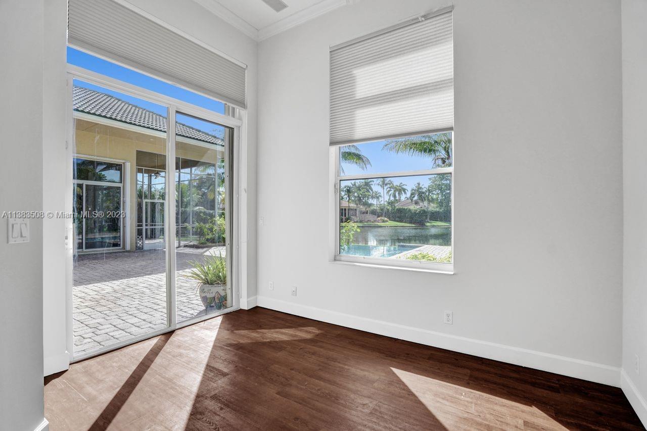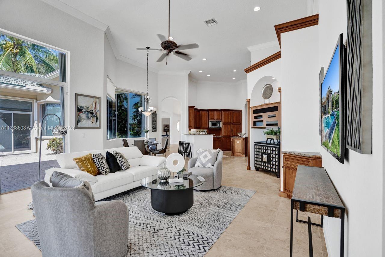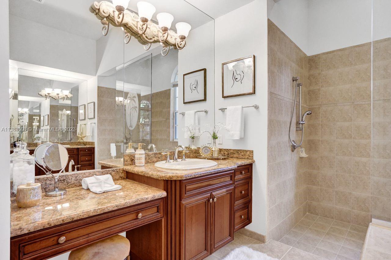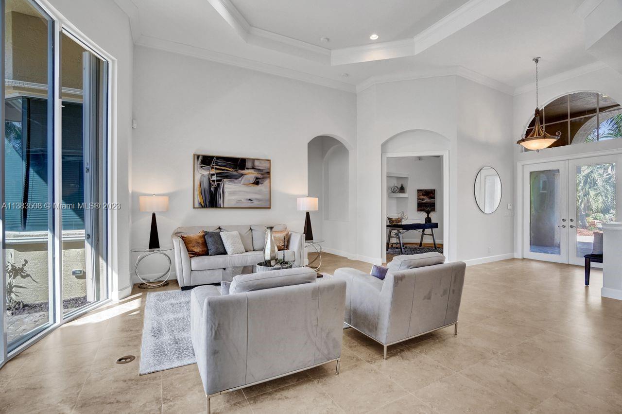 Simply stunning half acre waterfront lot in Exclusive Stonebrook Estates community in the equestrian Town of Davie. Home is located on the best lakefront lpoint ot in the community with long tranquil lakeviews from the moment you enter home with gorgeous remodeled infinity edge pool and jacuzzi. Fantastic one-story split floor plan with 5 bedrooms PLUS office,4 bathrooms,3 car garage and 18 foot ceilings. Beautiful chef's kitchen with Sub Zero refrigerator, gas stove, wood cabinets and granite counter tops. Huge master suite with adjacent sitting/gym area and large walk-in closets. Grand master bath with granite and double shower heads. Freshly painted inside and outside. Solar water heater. Accordion shutters.True pleasure to show and you will be impressed!