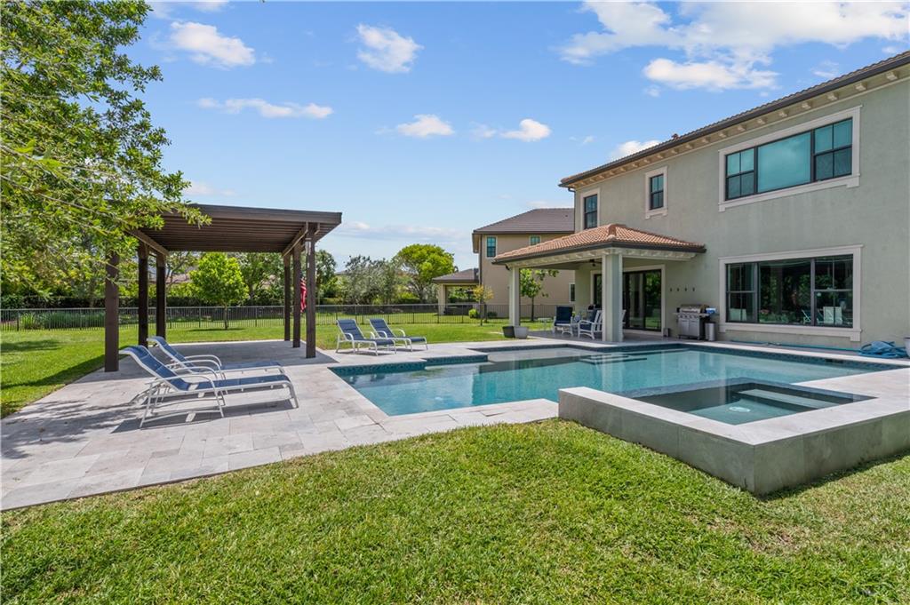 Absolutely stunning fully upgraded home on one-of-a-kind lot OVER 1/4 ACRE!! AMAZING BACKYARD!! 5 bedroom, 4.5 bath, 3 car garage home PLUS office PLUS loft PLUS mudroom in prestigious Watercrest!! Relax in your resort-style outdoor oasis complete w/custom pool w/sun shelf, oversized heated jacuzzi/spa, custom pavers & pergola perfect for ENTERTAINING! Open concept layout w/gourmet kitchen & beautiful custom wood working throughout! Quartz countertops & 10-foot island, gas cooktop, stainless steel appliances, double oven, custom wood cabinetry, & walk-in pantry. Additional features include impact windows & doors throughout, mudroom built-in’s, framed windows, and other architectural upgrades. Fully bedroom w/ensuite bathroom downstairs. On tucked away street (not on main drag). A+ schools!