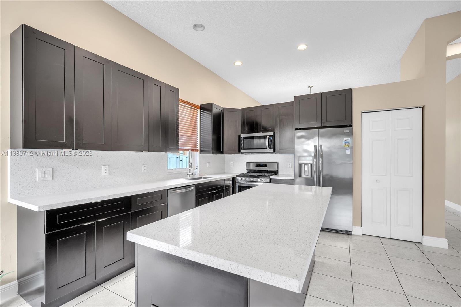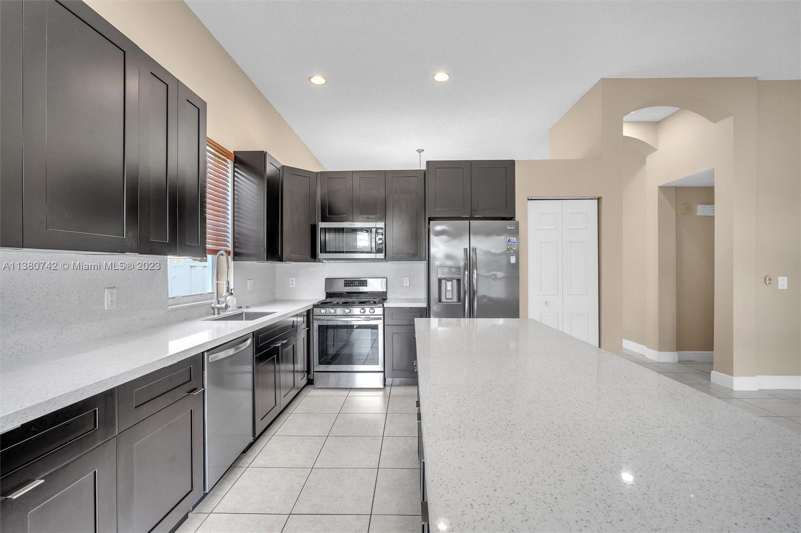 Welcome to your dream home in the resort style community of Pembroke Falls. Boasting an array of sleek finishes and a beautiful open plan layout. This 3/2.5 upgraded home features a functional entryway space, high ceilings, and flows into a luminous, open- concept living, dining, and kitchen area. The remodeled kitchen is equipped with stainless steel appliances, a gas stove, quartz countertops, and a large kitchen island and pantry. The expansive and fully fenced backyard allows for room for a pool. The master bedroom features wood floors, a large walk-in closet and double sink, tub and shower in the bathroom. The location is one that you cannot recreate. The recreational area tops all in the area (includes community pool, tennis courts, ballroom, basketball courts and much more).