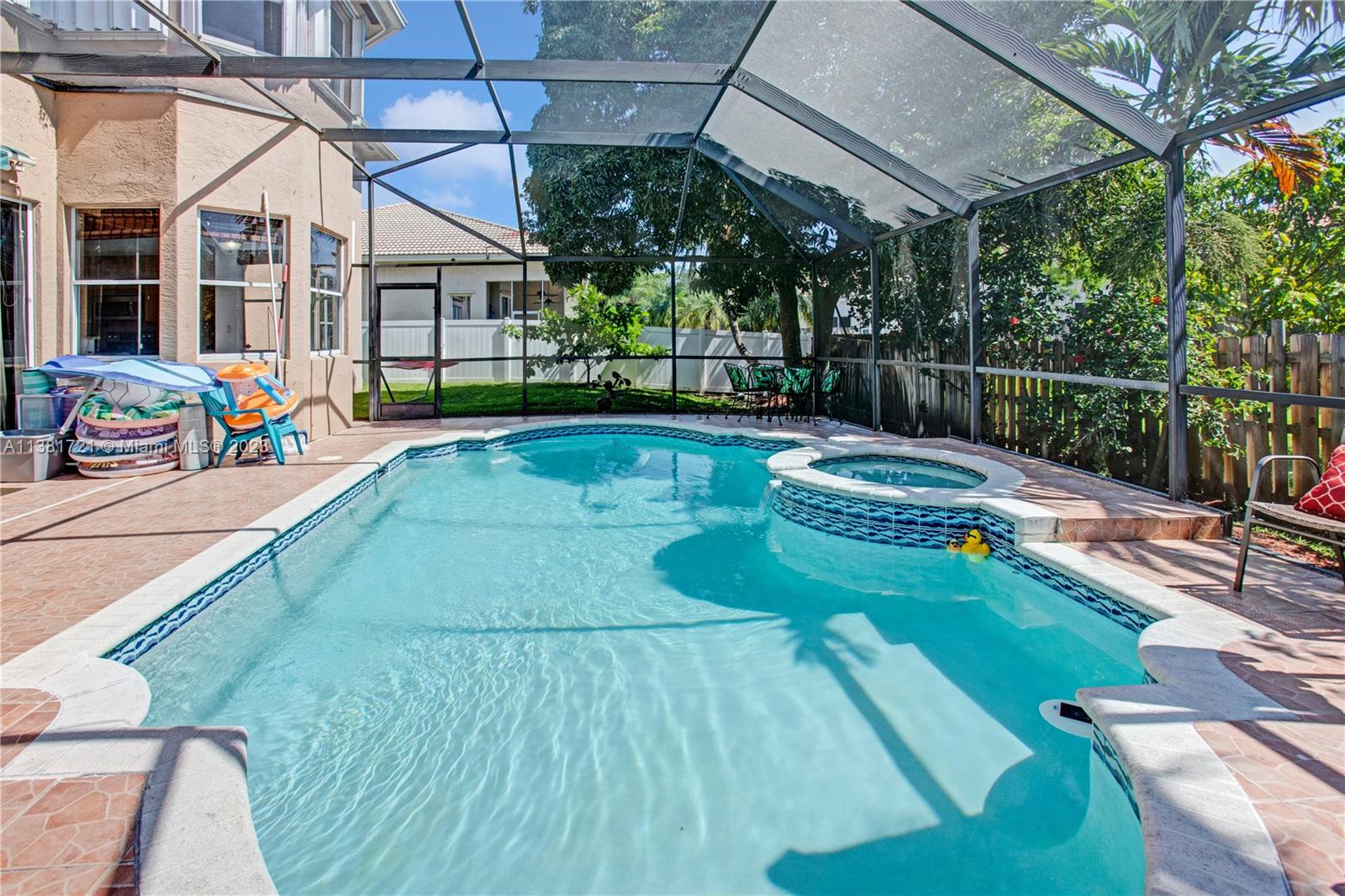 Welcome home to this beautiful & spacious 4 bedroom home located in a highly desirable neighborhood Estancia in Pembroke Pines. As you step inside, you will be greeted with new Italian porcelain flooring throughout the house, providing a sleek & modern touch. The home features 3 full baths, 2 of which are fully renovated, each with top-of-the-line finishes & fixtures, adding to the luxurious feel of the home. One bedroom conveniently located on first floor with access to a full bath. The screened-in heated pool with spa is perfect for year-round enjoyment and relaxation. The pool heater & AC installed in 2021! Home Located in an A-rated school district making it an ideal choice for families with children. Don't miss out on the opportunity to make this beautiful property your forever home!
