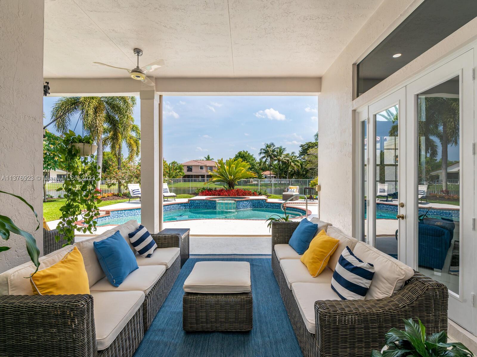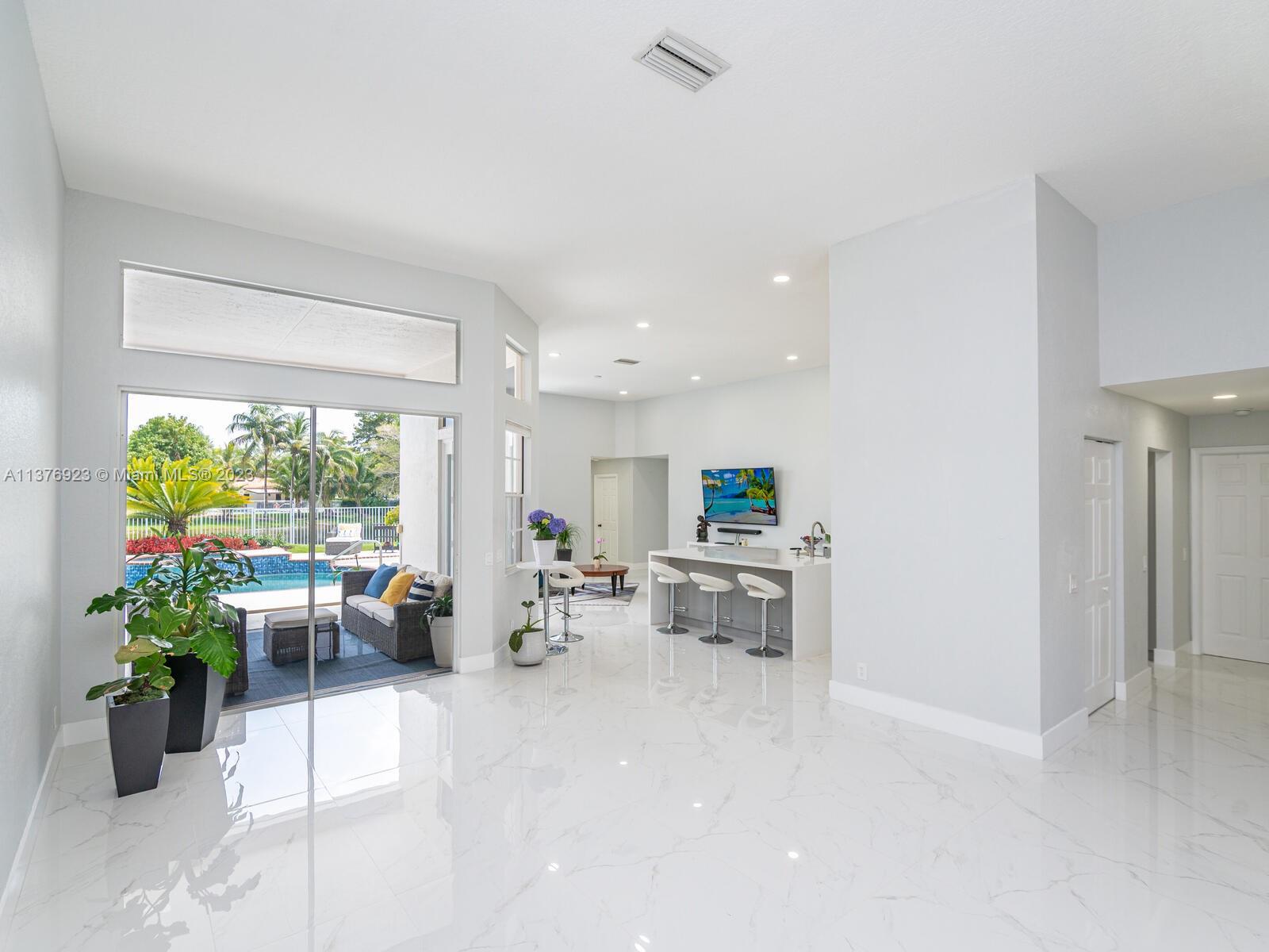 This exquisite, one-story single family home in Weston-Lakes features 4 beds, 3.5 baths, and sits on a cul-de-sac pie-shaped lot, and more than 1/3 Acre of land. This prime location offers a quiet environment, with a long driveway for up to 6 cars. Enjoy the stunning lake view, community pool, kids' playground, and soccer field across the backyard. Recently updated with new plumbing, AC, tankless water heater, kitchen, floors, bathrooms, recess lights, garage and main entrance hurricane doors, freshly painted inside-outside, and stunning landscaping. Accordion hurricane shutters and 2007 roof. Situated near A+ schools, parks, shopping centers and more. Airport and beach only 20-30 min away. Don't miss your chance to own this spectacular home in Weston's most desirable community!