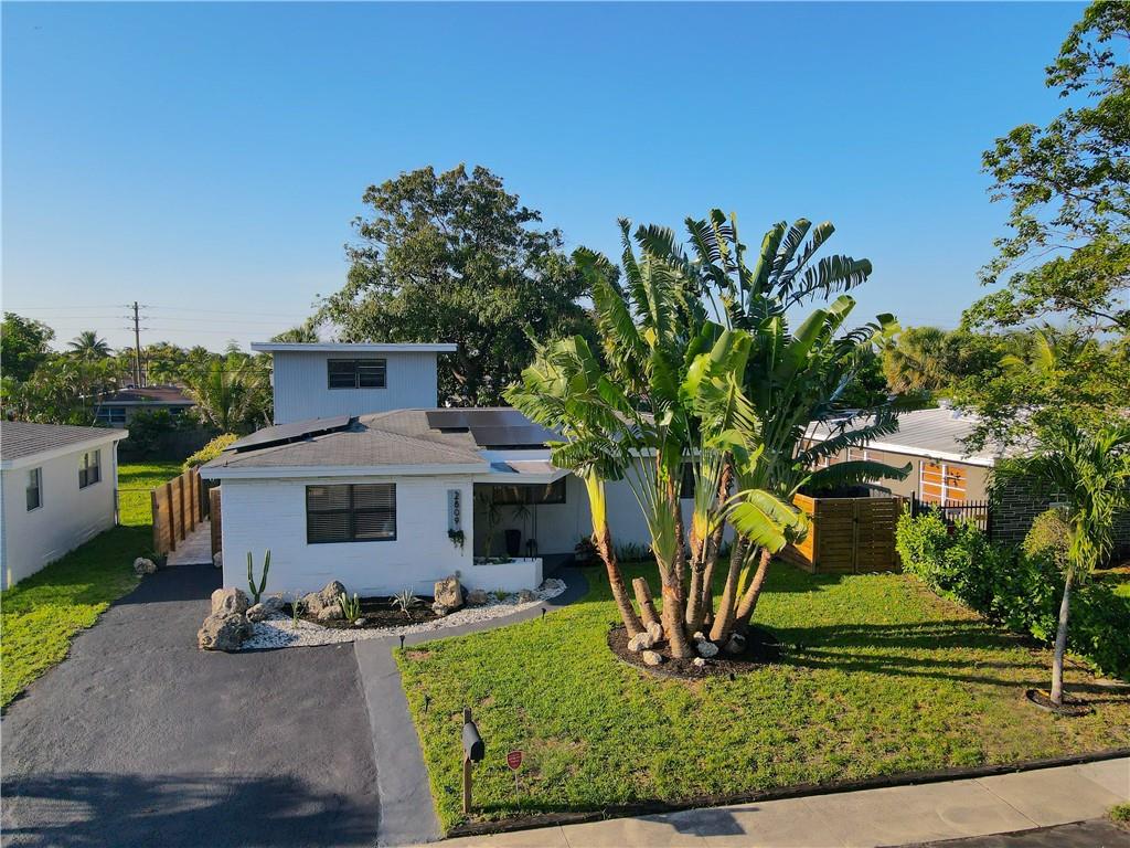 Welcome to one of the most unique homes on the market! Settled into a rapidly-appreciating Fort Lauderdale neighborhood, this spacious 4-bed, 2-bath + den has been totally updated from floors, to kitchen, to modernly-contrasted bathrooms. The kitchen has an eye-catching rustic-industrial look that you won't see anywhere else. The 4th bedroom is located upstairs within the extended back half of the house and provides a layout with ample privacy. Because this home sits on a large lot right across the street from a park, you can leave the blinds open all day for a bright feel with nothing but green space in sight. The home is also fully equipped with solar panels for an extremely reduced utility bill. AC replaced within the last couple years as well. Showings begin Saturday 5/13/23.