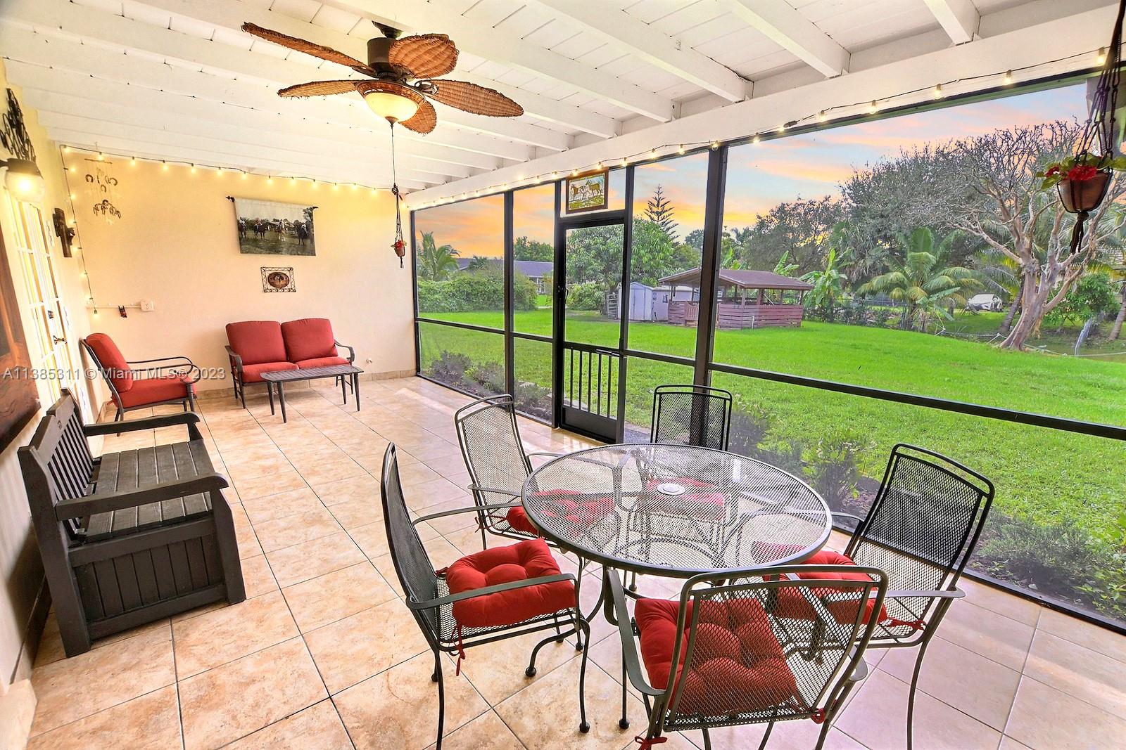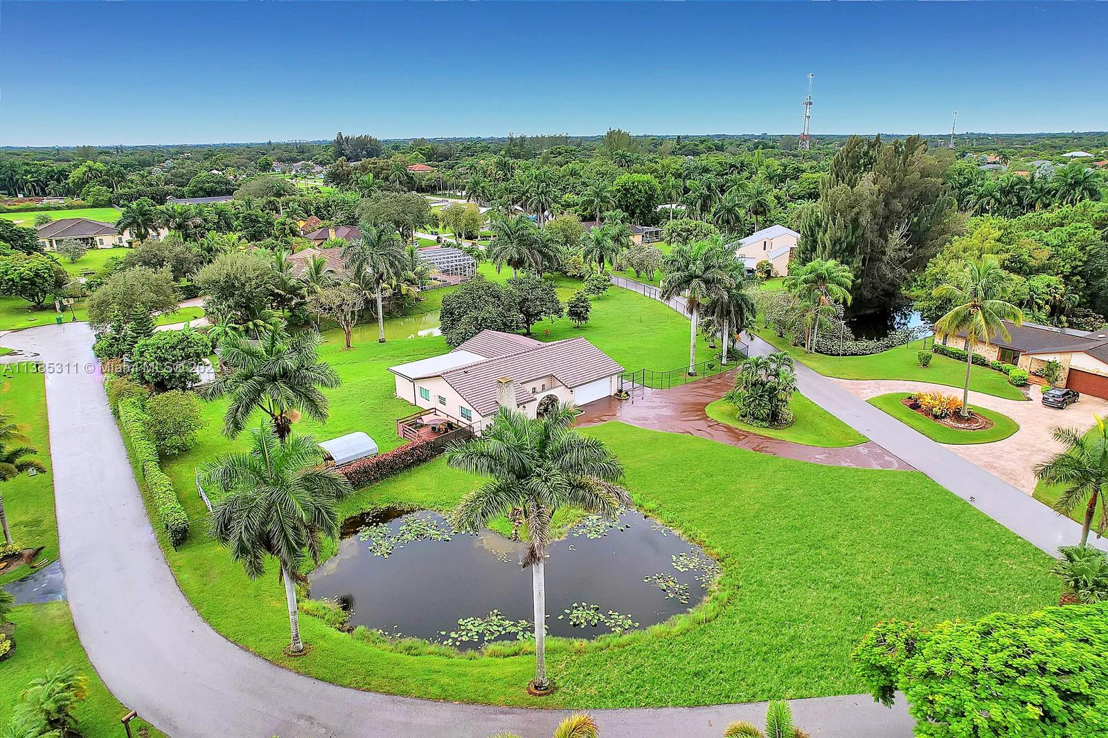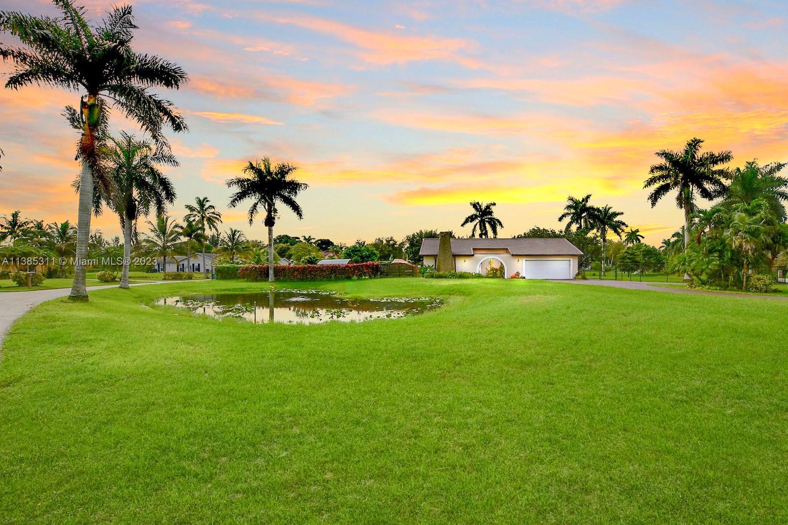 TRULY ONE OF A KIND 4 BED 2 BATH HOME SET AMID A SPRAWLING 59,242 SF LOT AWAITS IN THE EQUINE FRIENDLY SECTION OF DAVIE. UPON ARRIVAL AN ENCHANTING CURVED DRIVEWAY GREETS & WINDS AROUND A PRIVATE POND & WELL MANICURED GROUNDS. WELCOMING ARCHED ENTRY OPENS TO AN INVITING FLOOR PLAN W SPACIOUS ROOMS. THE ELEGANT KITCHEN FEATURES STAINLESS STEEL APPLIANCES & COOKING PENINSULA W A CUSTOM VENT HOOD, OFFERING SCENIC VIEWS OF THE BEAUTIFUL PRIVATE GROUNDS. COZY UP IN THE FAMILY ROOM AROUND THE ROMANTIC FIREPLACE. PRIMARY SUITE INCLUDES AN ENSUITE BATH W DOUBLE VANITY & OVERSIZED SHOWER. CHARMING FRENCH DOORS OPEN TO SCREENED PATIO PERFECT FOR OUTDOOR DINING WHILE ENJOYING SUNSETS & SERENE VIEWS. NEW ROOF, IMPACT WINDOWS. BARN HAS 2 STALLS, 2 CAR GARAGE, BOAT & RV PARKING & NO HOA.