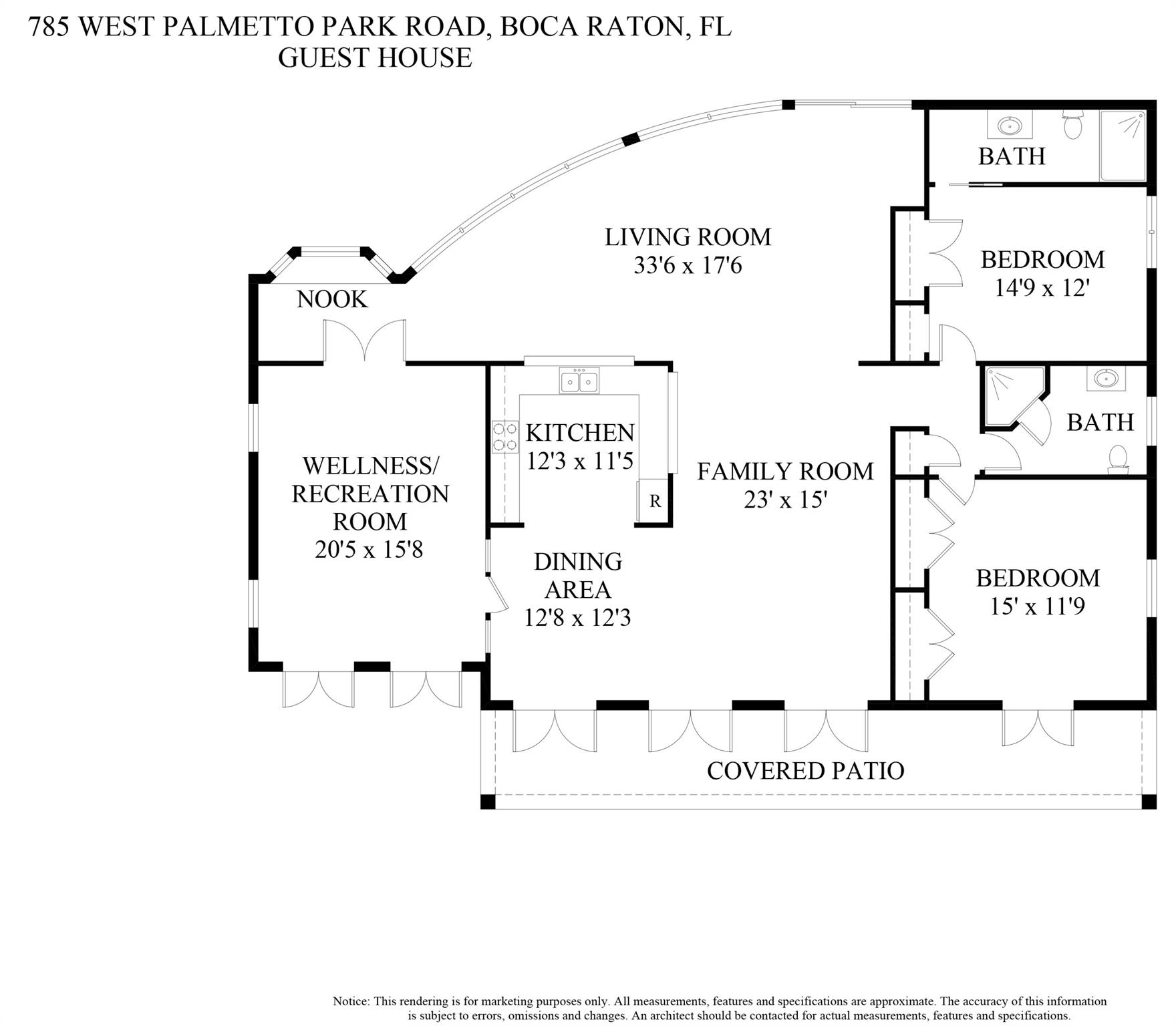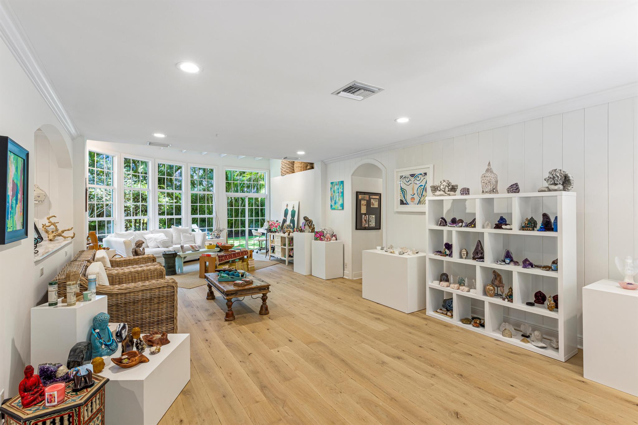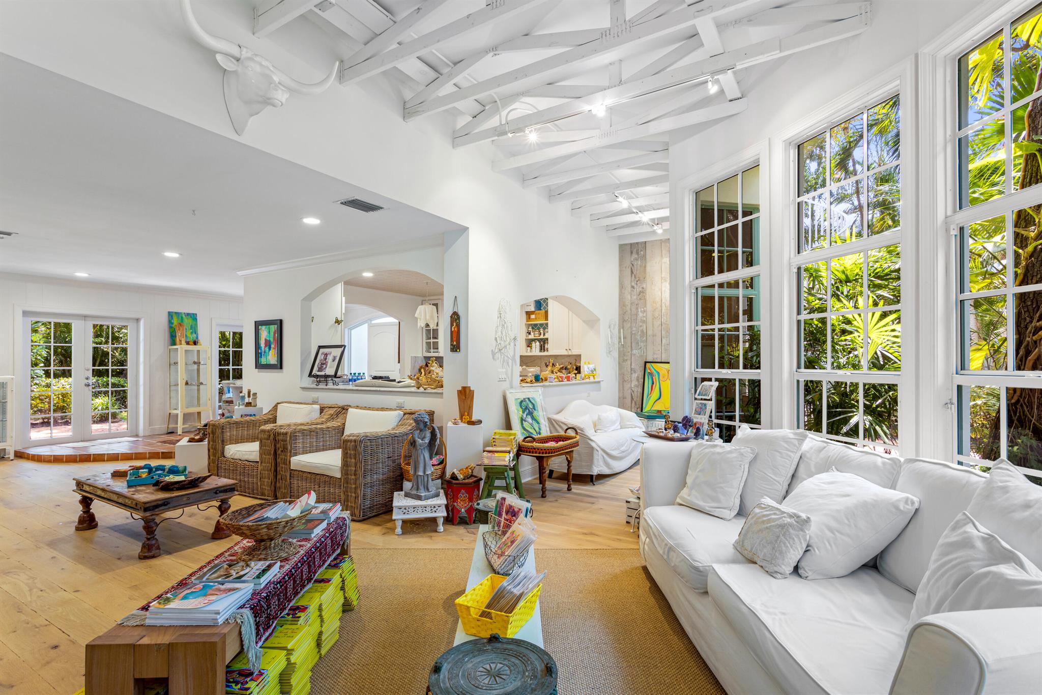 This walled and gated Compound Property includes two separate lots with a Main House (2.962 LV.sf. / 3,485 Tot.sf.) and Guest House (2,360 LV.sf. / 2,678 Tot.sf.) on over a 1/2 acre. The light-filled interior of the main residence is appointed with washed pecky cypress beamed ceilings, wide plank pecan wood flooring, custom moldings and architectural arches unify this single-story residence. A focal point is the tropical pool courtyard accessible from most major rooms. The adjacent Guest House, provides exposed vaulted ceiling, pecan wood and terra cotta tile floors, is entered from three sets of French doors along its covered terrace. The open great room and kitchen separate a large recreation/wellness room from two bedroom suites with second pool encompassed by mature landscaping