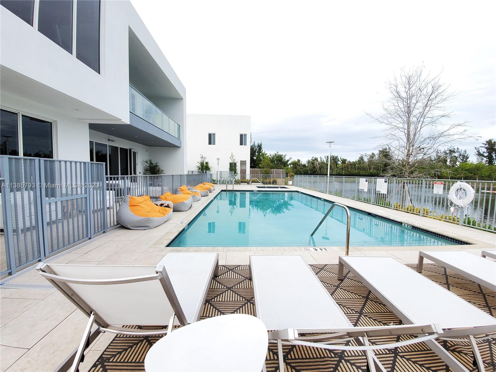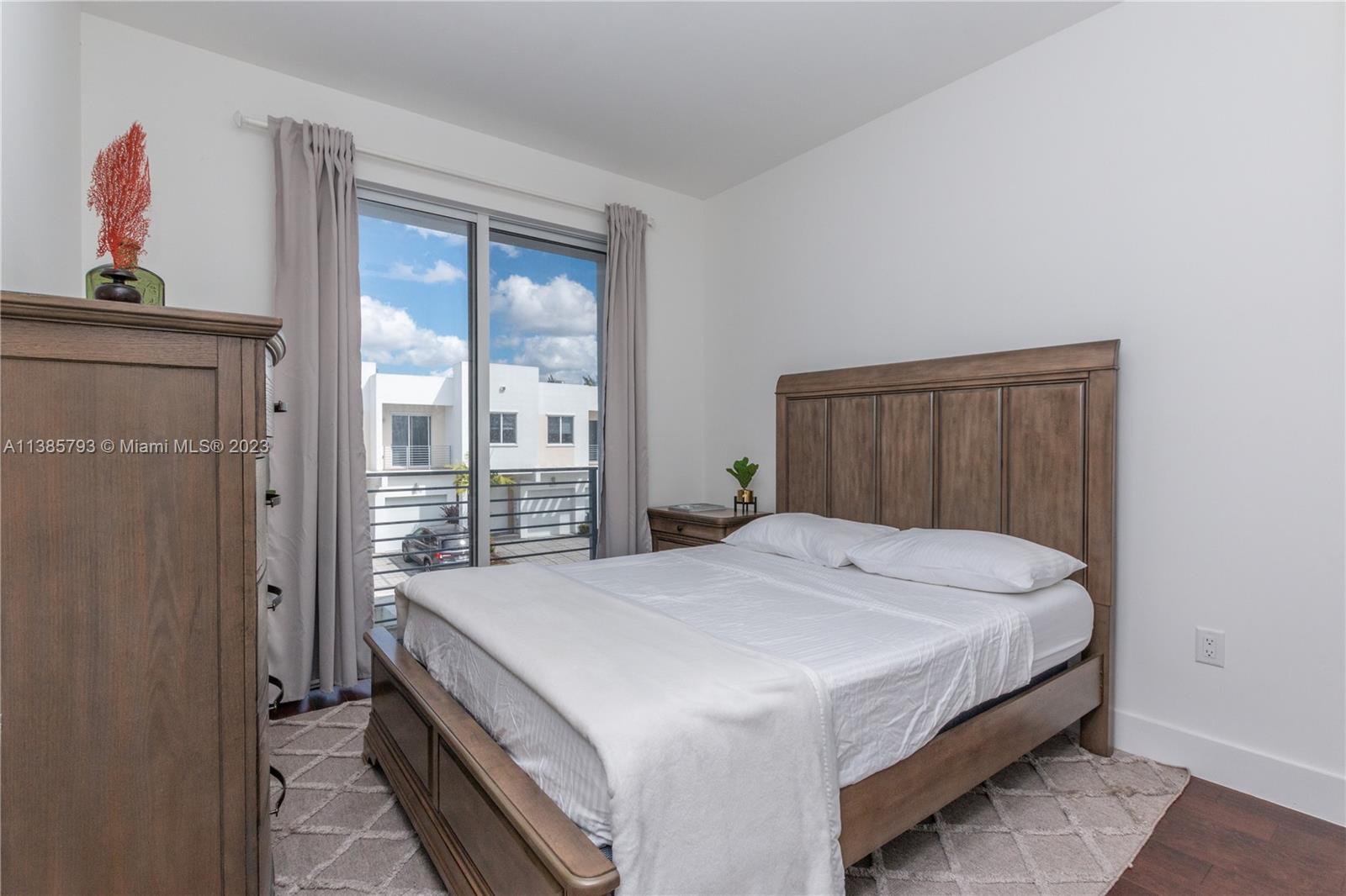 Exclusive corner Unit. **One of only 5 units with this layout**. Boutique complex home to just 142 residences. Open concept floor plan communicates kitchen, living, dining and half bathroom while offering a private room with complete bathroom in first floor. Second floor hosts 3 bedrooms and 2 bathrooms with wood flooring. Primary suite features: two walk-in closets, spacious bathroom with dual vanity and separate bathtub-shower. Enjoy custom finishes throughout, high ceilings and abundant natural light. Amenities includes fitness center, pool and social areas. Doral neighborhood is home to public and private schools rated A, restaurants, shops and more. Close to Miami International Airport
