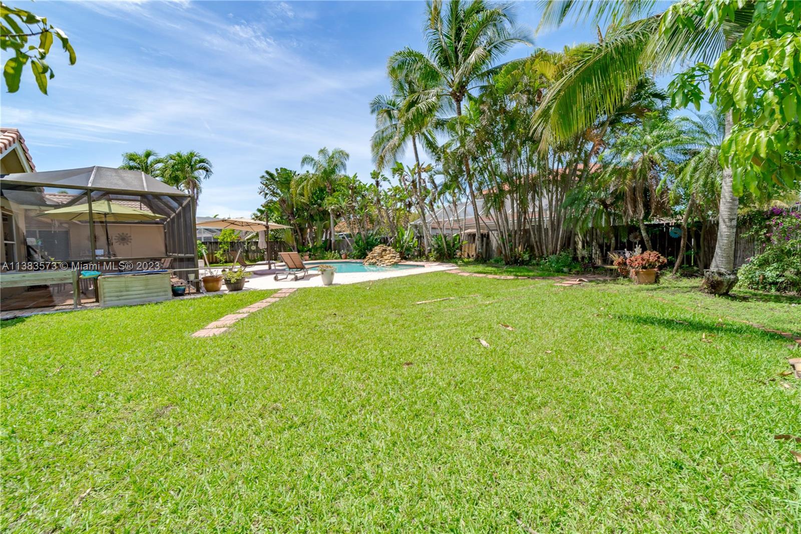 Rare Silver Lakes cul-de-sac gem with an oversized lot. This great 4 bedroom family home has a very large backyard with large pool. Fenced yard surrounded by lush tropical landscaping including palms, mango, banana, sugar apple, and an avocado tree. It has a large screened in patio..great for entertaining. A true 4 bedroom w/ first floor master bedroom, formal dining area, two living areas, loft/gaming area, large breakfast dining area, modern kitchen w/ all stainless steel appliances.Quartz counters. Top of the line Bosch convection oven w/ induction stove, as well as, quiet Bosch dishwasher. 2 car garage. 2 zone AC. The larger unit installed last year and is a high end Lennox Elite variable speed unit with 9 years left on its warranty. Automated 2 zone sprinkler system. Great schools.