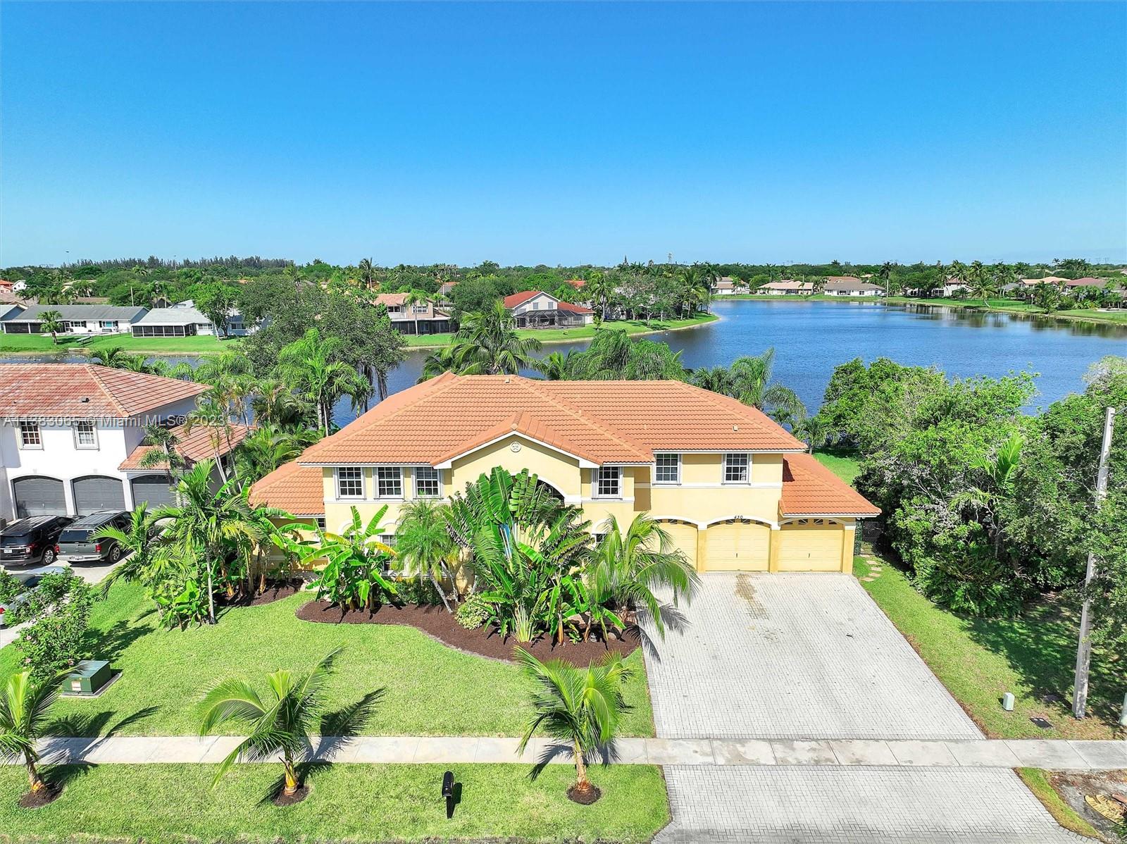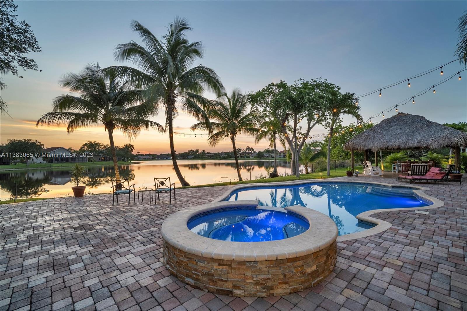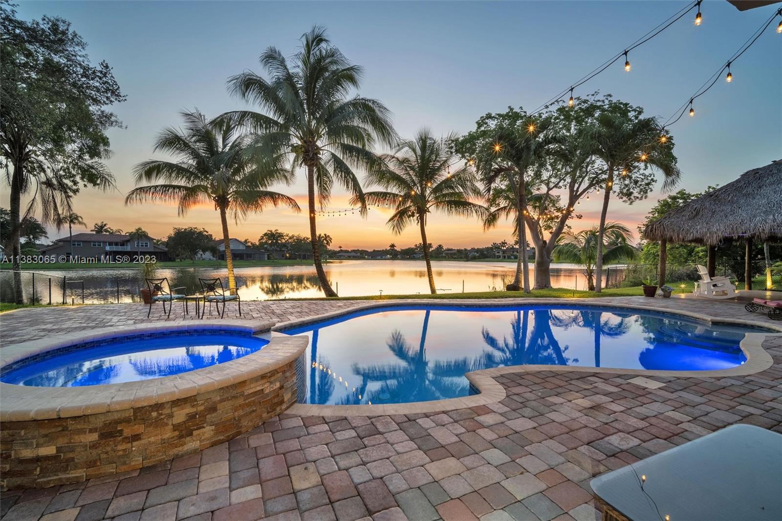 Priced $100k below appraised value, this beautiful home boasts stunning lake views, a free form pool, and a tiki hut making it the perfect oasis for relaxation and entertainment. You'll find a full bed and cabana bath downstairs in addition to recently installed plank laminate flooring, a family room with custom wet bar, a formal dining room, and a generous living room with soaring ceilings. Exterior features include a 10-year new roof, a partially covered patio, a fenced-in oversized yard, and ACCORDION SHUTTER protection on the 2nd story. This home is the epitome of comfort, offering a perfect blend of indoor and outdoor living in a picturesque setting. Pasadena Estates II has a low HOA fee that includes cable, internet, and free access to all of the amenities at nearby Rose Price Park.