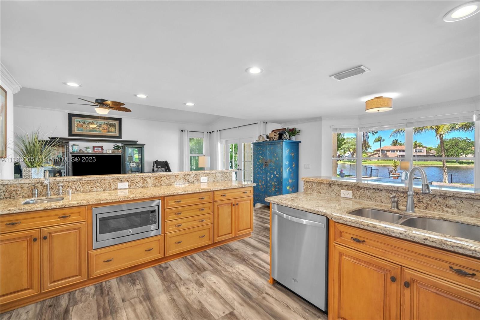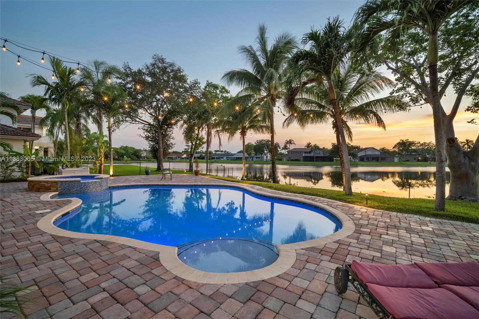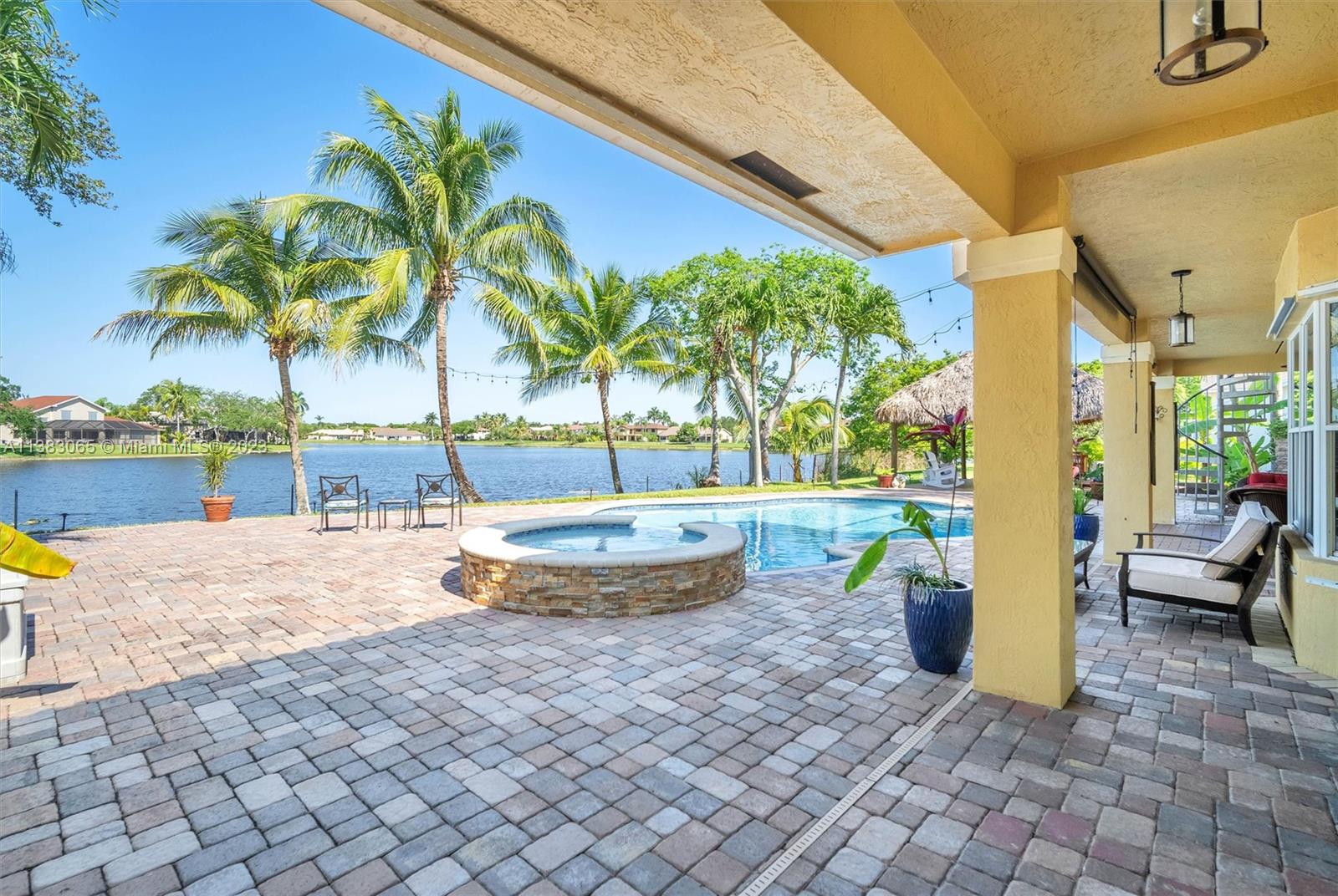 Priced $100k below appraised value, this beautiful home boasts stunning lake views, a free form pool, and a tiki hut making it the perfect oasis for relaxation and entertainment. You'll find a full bed and cabana bath downstairs in addition to recently installed plank laminate flooring, a family room with custom wet bar, a formal dining room, and a generous living room with soaring ceilings. Exterior features include a 10-year new roof, a partially covered patio, a fenced-in oversized yard, and ACCORDION SHUTTER protection on the 2nd story. This home is the epitome of comfort, offering a perfect blend of indoor and outdoor living in a picturesque setting. Pasadena Estates II has a low HOA fee that includes cable, internet, and free access to all of the amenities at nearby Rose Price Park.