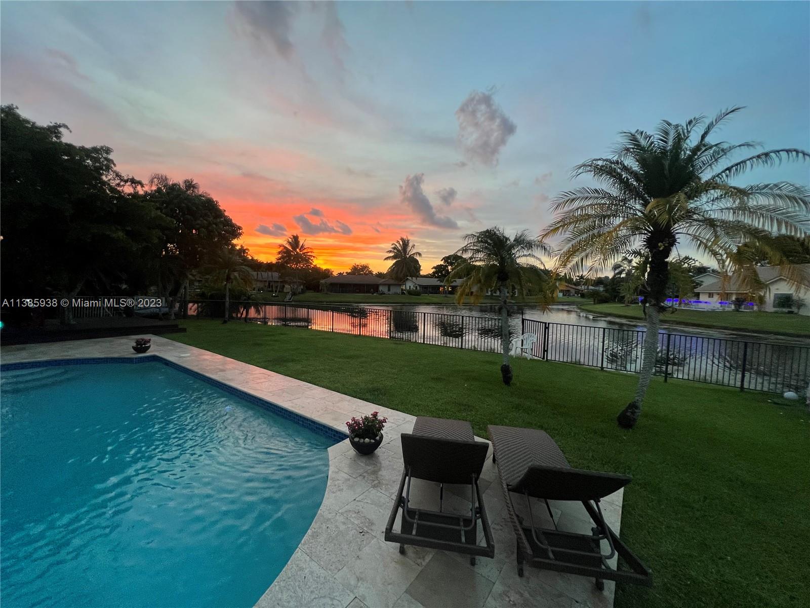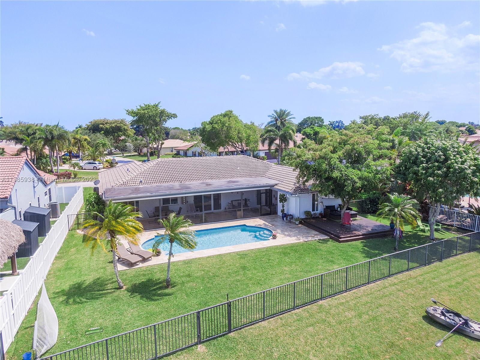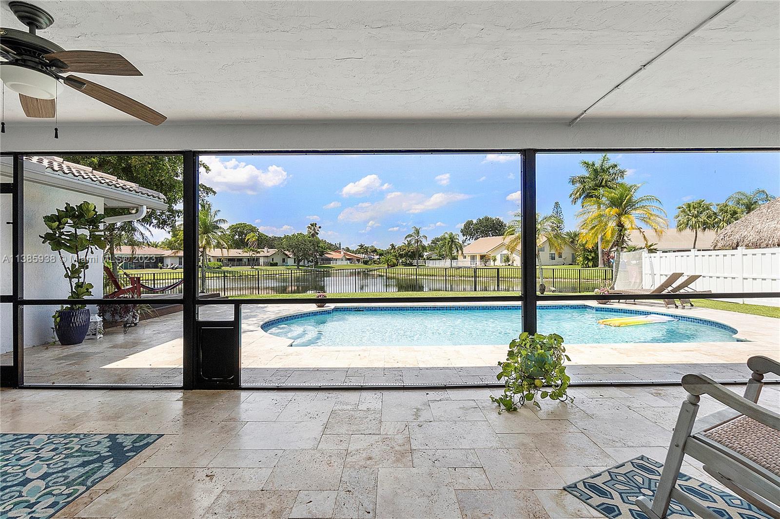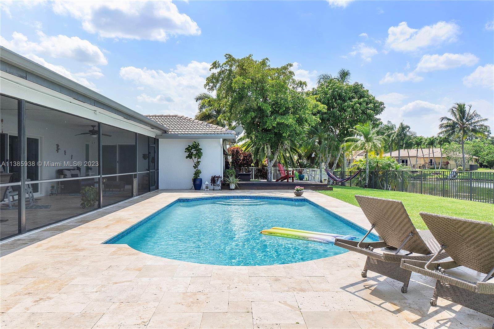 Stunning 4 Bed, 2 Bath resort style home located in the Cypress Glen neighborhood of Coral Springs. No HOA!!! You will enjoy the outdoors with an updated travertine pool, wood deck and beautiful lakefront view. Enjoy a day of fishing from your backyard in your stocked lake. Large backyard with Mango tree and plenty of room for pets, sports and many more activities. Chef inspired kitchen, custom cabinetry, center island and granite. Newer Stainless-Steel appliances. Living room features vaulted ceilings and stone accent wall. Vinyl and porcelain floors. Updated Bathrooms with spacious shower. Newer AC and tankless water heather. Quiet street ends in Cul-De-Sac. Don't miss the opportunity to call this your home.