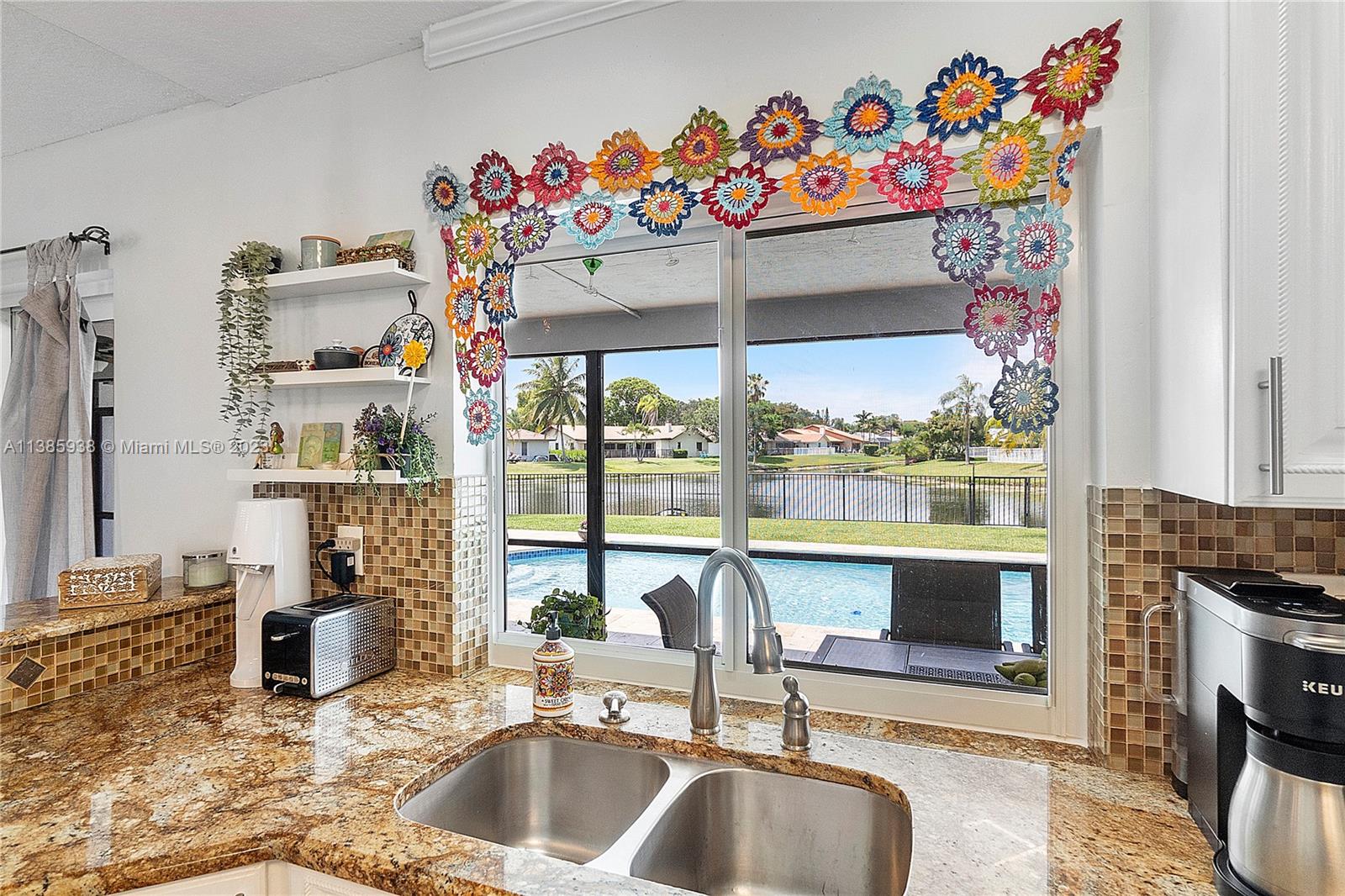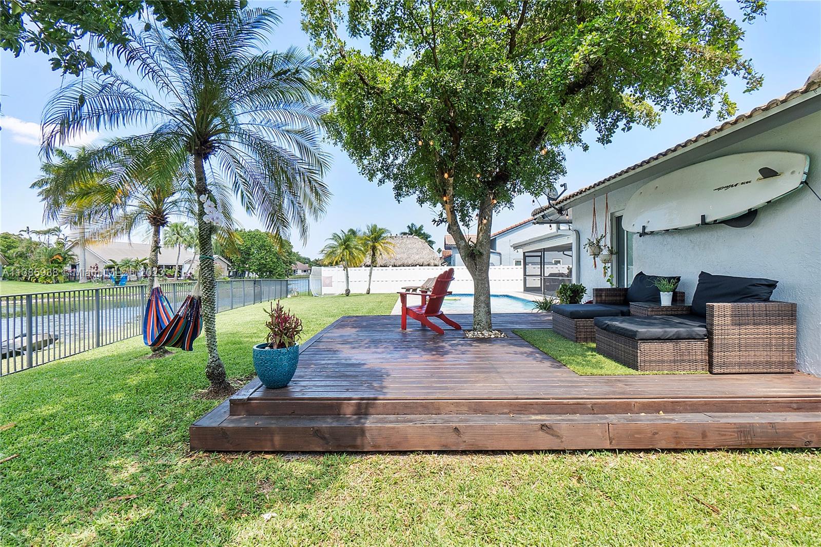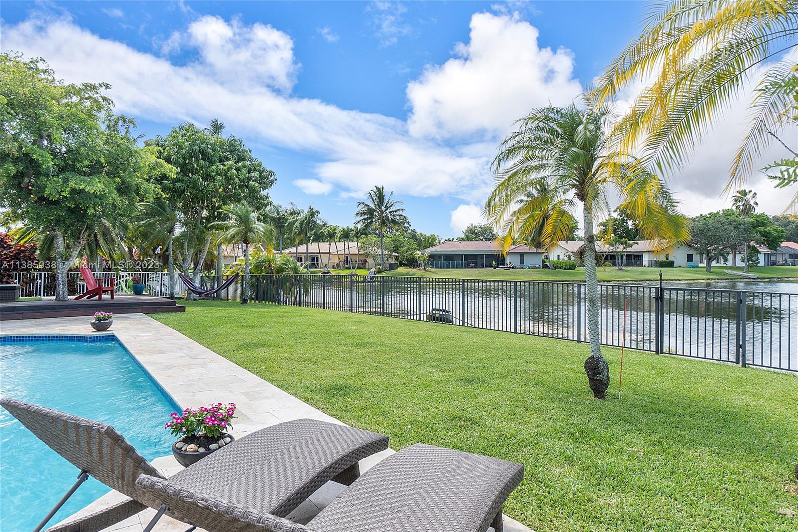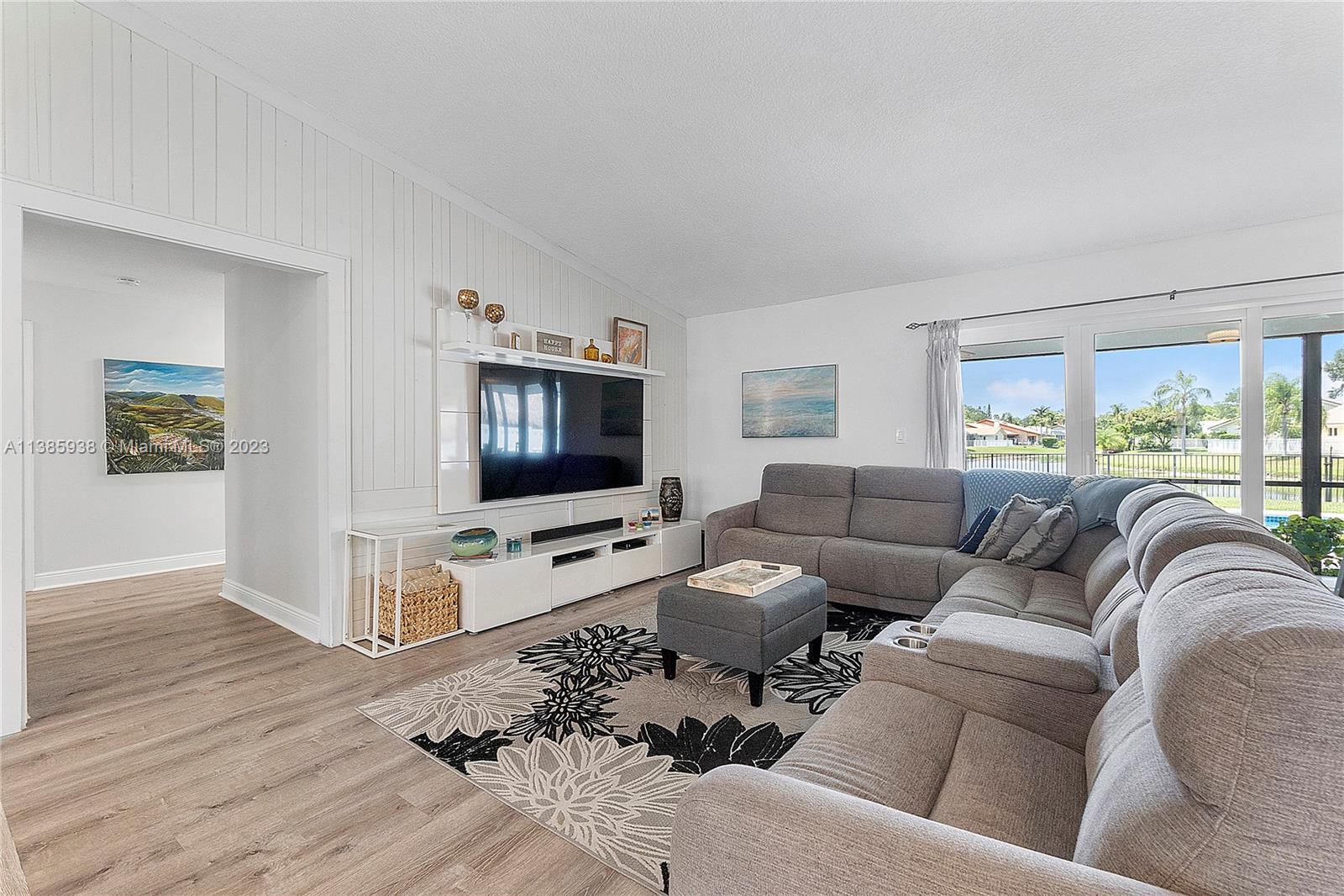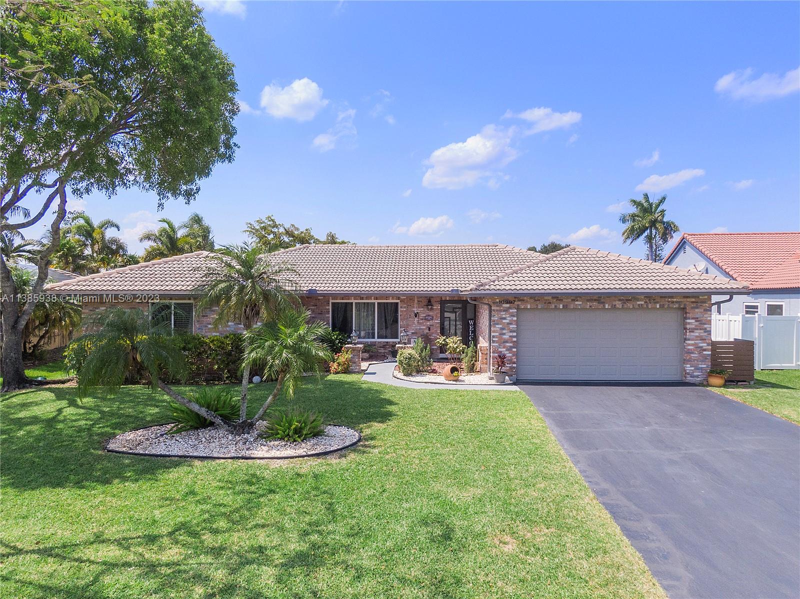 Stunning 4 Bed, 2 Bath resort style home located in the Cypress Glen neighborhood of Coral Springs. No HOA!!! You will enjoy the outdoors with an updated travertine pool, wood deck and beautiful lakefront view. Enjoy a day of fishing from your backyard in your stocked lake. Large backyard with Mango tree and plenty of room for pets, sports and many more activities. Chef inspired kitchen, custom cabinetry, center island and granite. Newer Stainless-Steel appliances. Living room features vaulted ceilings and stone accent wall. Vinyl and porcelain floors. Updated Bathrooms with spacious shower. Newer AC and tankless water heather. Quiet street ends in Cul-De-Sac. Don't miss the opportunity to call this your home.