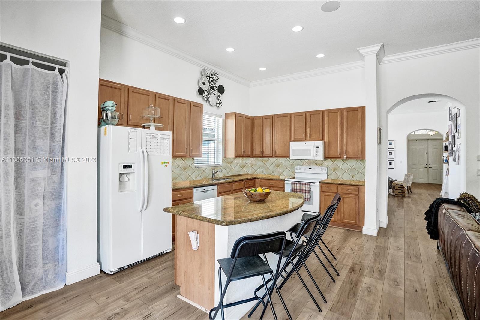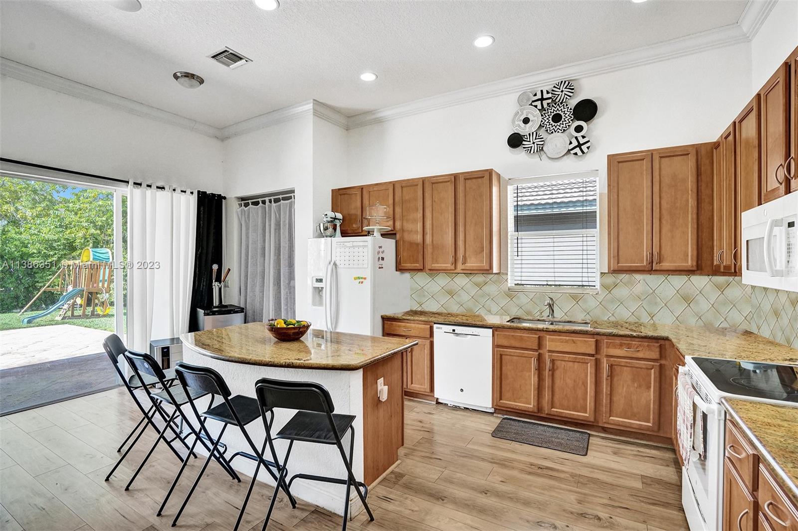 Welcome to this stunning one-story residence, a true gem that exudes charm, elegance, and modern comforts. Nestled in a tranquil neighborhood, this home boasts an array of desirable features, including new tile flooring, vaulted ceilings, a spacious backyard, a laundry room, an open kitchen, and a primary suite with a primary bathroom that includes double sinks, shower and tub. As you step through the front door, you are greeted by a warm and inviting ambiance. The vaulted ceilings create an airy and expansive atmosphere, enhancing the overall sense of space and openness. The home features 4 generously sized bedrooms, and 3 bathrooms. One of the highlights of this property is the expansive backyard space, offering endless possibilities for outdoor activities, gatherings, and relaxation.