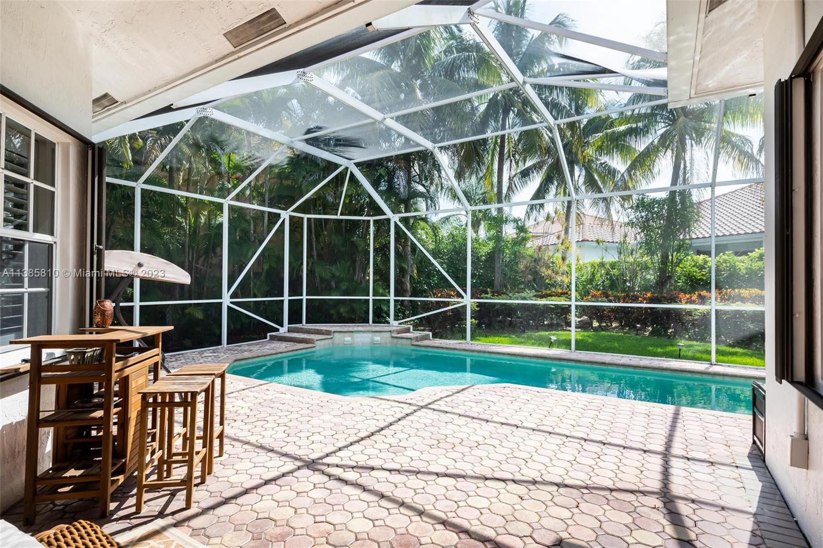 Stunning one story situated on a 13,920 oversized lot w/ NEW ROOF (2020)! Meticulously maintained & set back on a professionally landscaped lot loaded with curb appeal. Volume ceilings & a modern open floor plan create the perfect setting for entertaining & creating family memories! Newer modern kitchen w/ quartz countertops, designer custom cabinetry, large pantry & wine refrigerator. Plantation shutters, crown moulding & surround sound throughout. Porcelanto floors, designer upgraded bathrooms, hardwood floors in master bedroom & laminate in secondary bedrooms. Private yard w/ screened heated pool, patio and yard w/ room for the kids to play. Resort style community w/ pools, splash pad, miniature golf, playgrounds. Bike ride to Gator Run Elementary & enjoy Weston's "A" rated schools.