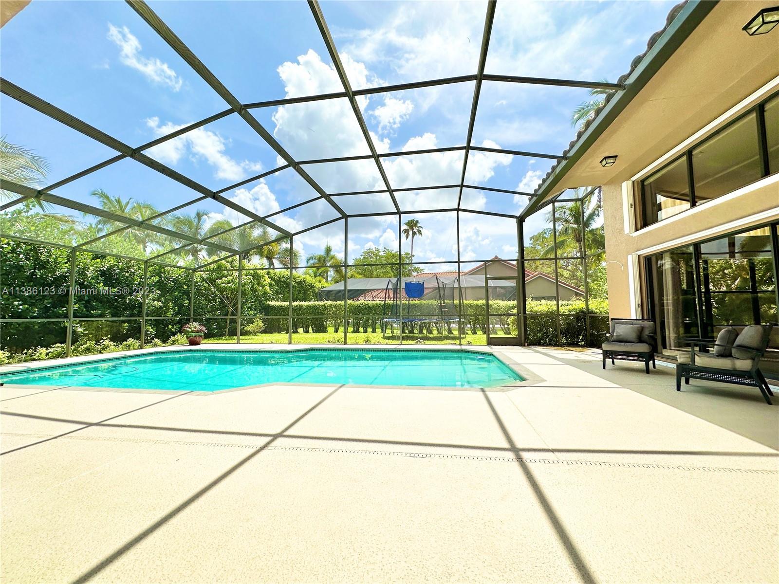Great opportunity to own this stunning landscaped corner lot home 5BED/3 BATH. Located in the exclusive, safe gated community of TEQUESTA. This property offers a luxury living space, including high ceilings, huge living room, bright kitchen with stainless steel appliances, formal dining area, 4 spacious bedroom and ample master bedroom with walking closet and laundry room. Perfect for raising a family and entertaining friends. Features ROOF LESS THAN THE 6 YEARS OLD, Italian porcelain tile all through the house, 2 AC units less than 1 year old. Garage for 2 cars, provides space for vehicle and storage, enormous screened patio/pool area. Accordion hurricane shutters throughout the home. Located in an A+ rated school district. Walking distance to the beautiful Peace Mound Park. A must see!