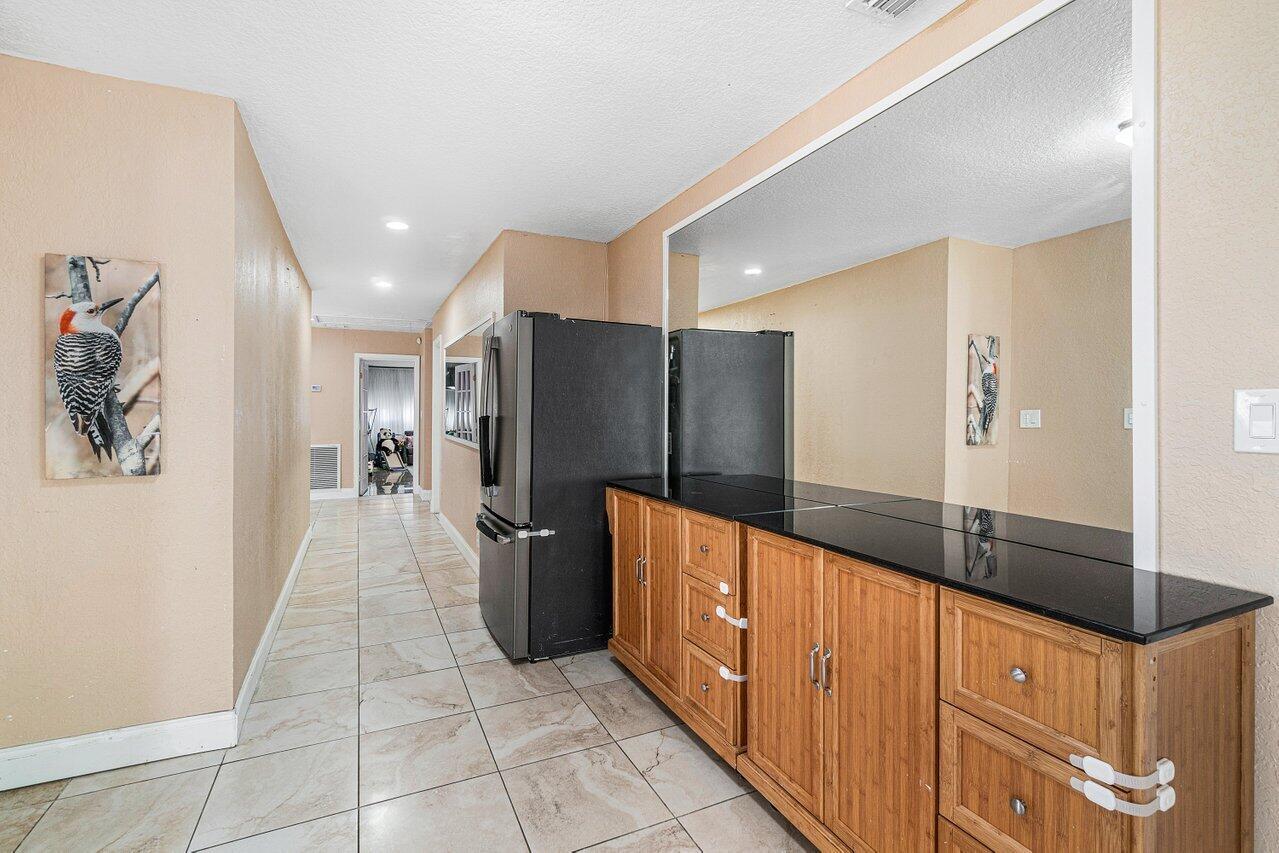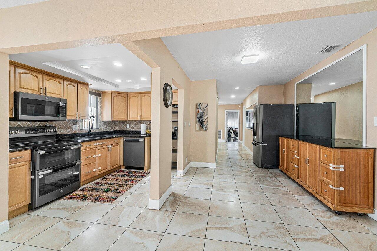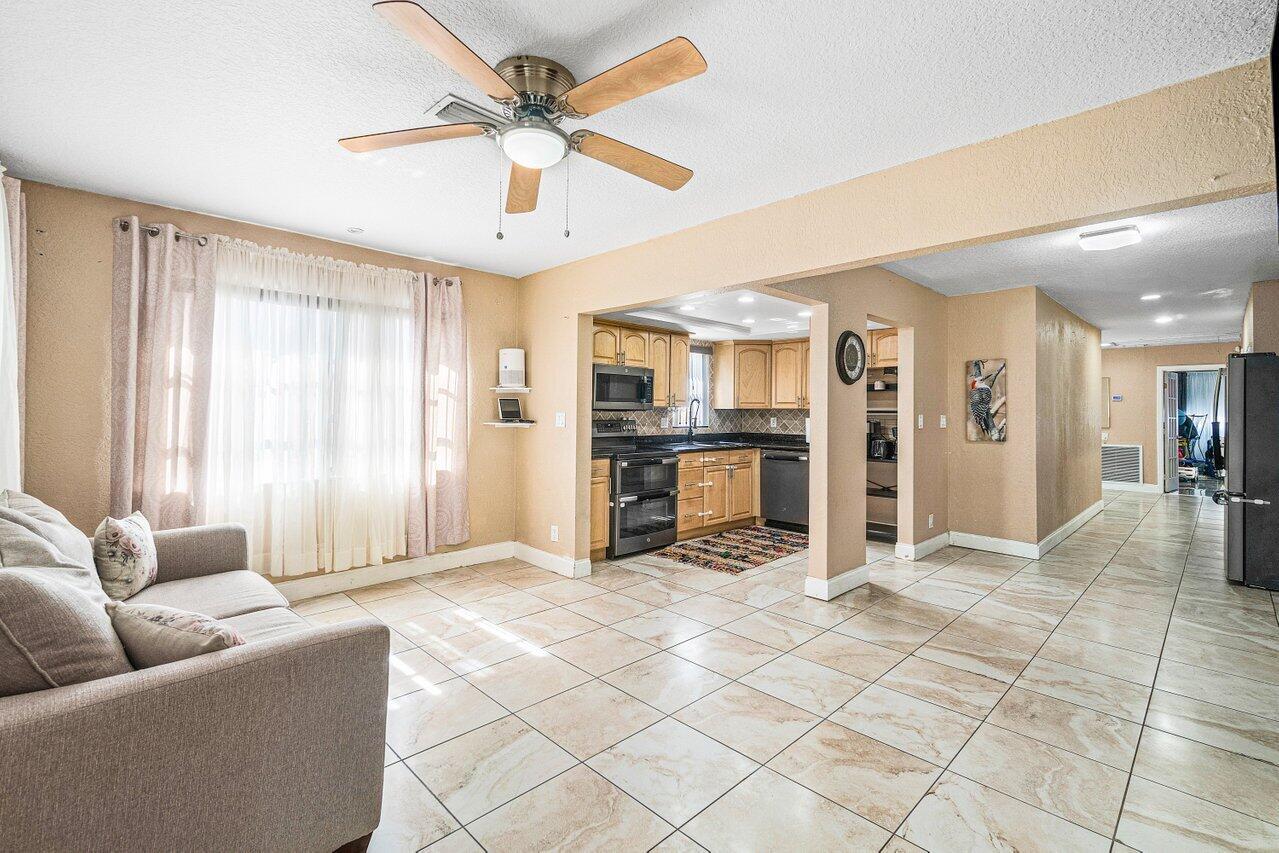 Location! Location! INVESTORS DREAM! NO HOA!! Perfect renovated Single-Family Home. This home features roof built 2015, two separate kitchens, two separate living areas, two separate entrance areas. 20x24 renovated family room with kitchen, newer appliances. 2017 a/c unit, newly built 2019 8x20 Front Entrance hurricane proof enclosure for house appeal with permits, extra-large driveway with over 10 parking spaces, air-conditioned controlled private access, functional two car garage converted with marble countertops inlaid in garage, hurricane impact glass sliding door and front door, hurricane shutters, extra-large screen patio 20x30 with sun shading in the back & privacy fence. A+rated school, close to fire station, safe neighborhood, 30 sec to I95 & excellent investment property.