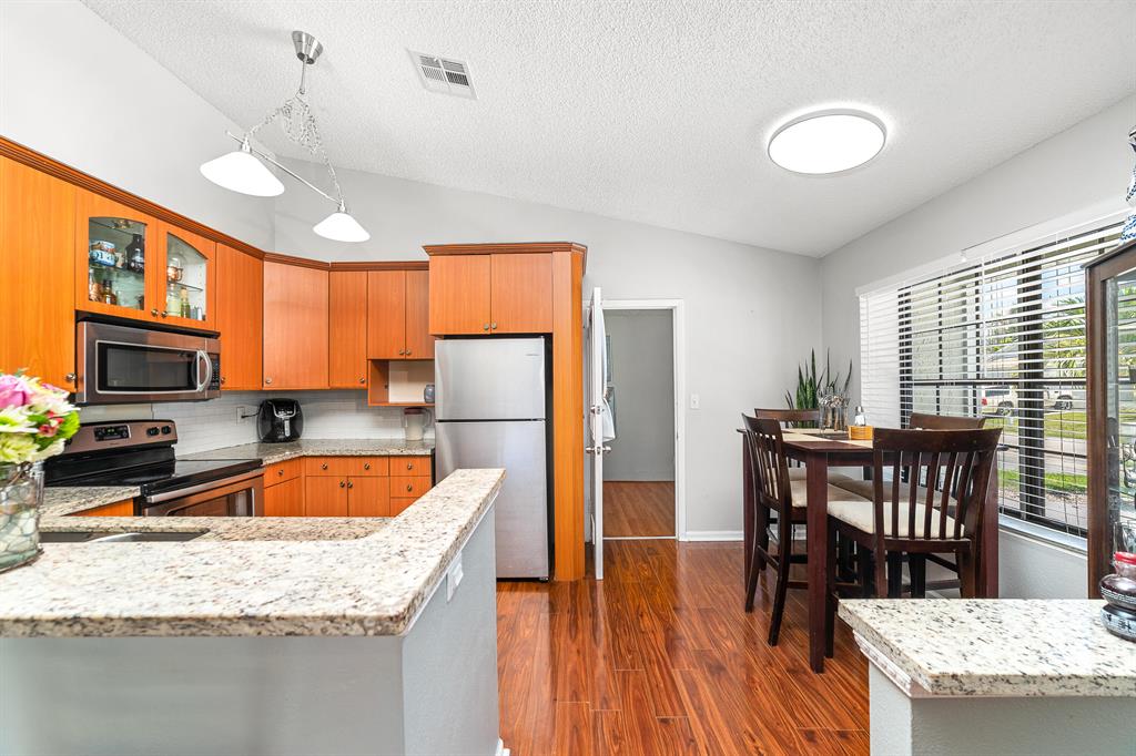 Welcome home to this phenomenal 3 bedroom 2 bathroom property located in the highly desirable, low HOA, Tudor Woods of Boca Raton. BRAND NEW ROOF! A/C 2020, Water Heater 2016. Immediately as you enter, you notice the soaring vaulted ceilings and abundance of natural light. The kitchen has been updated with granite countertops, stainless steel appliances and modern cabinetry. The home features laminate flooring throughout the living areas and has been recently painted. The one car garage was converted by a previous owner to a bonus room, easily used as an office, play space or possible future bedroom. The primary suite boasts a large walk in closet and partially updated bath. The secondary bedrooms have built out closets and ample storage space. The secondary bath has been partially