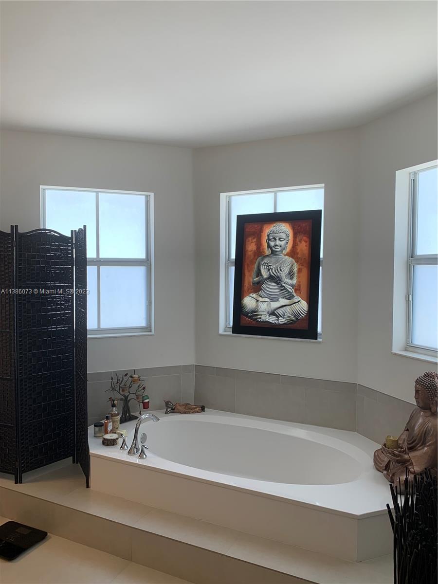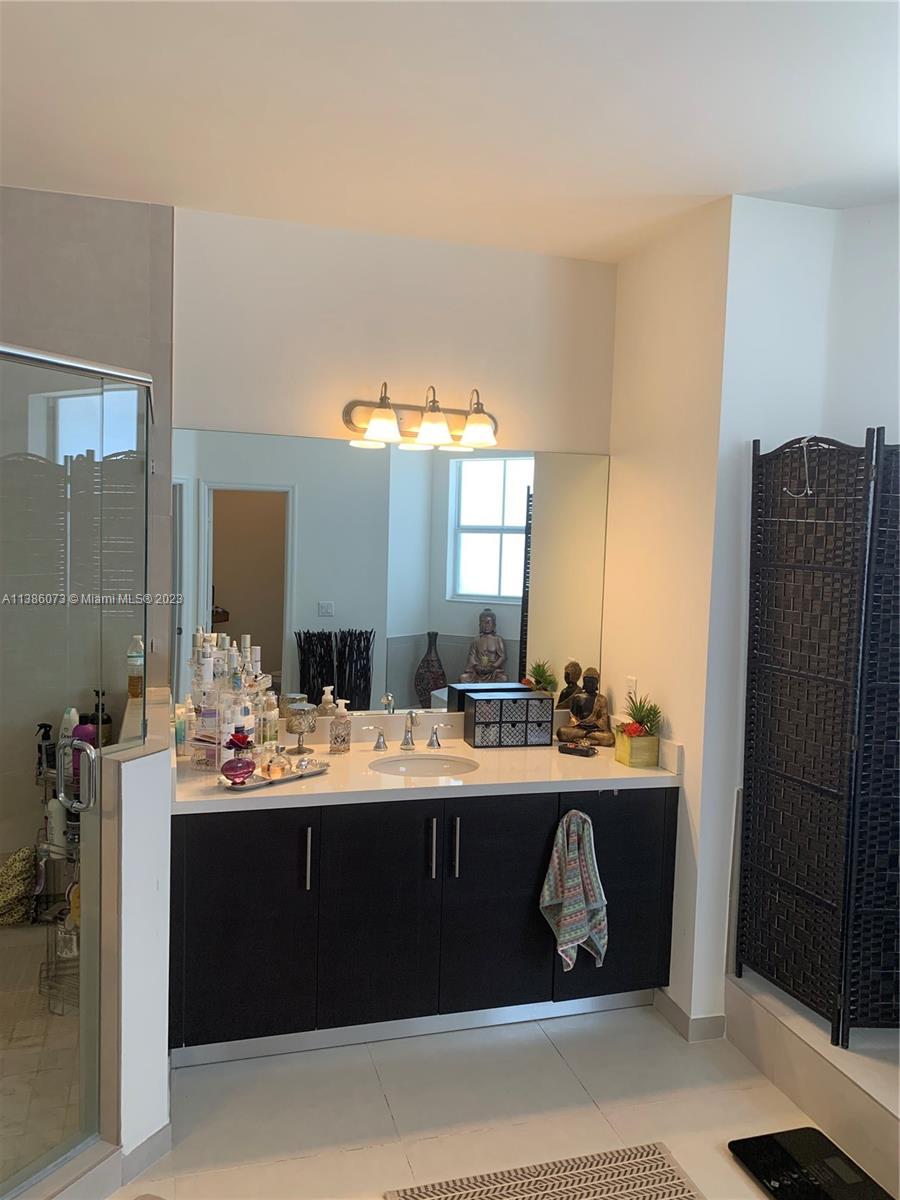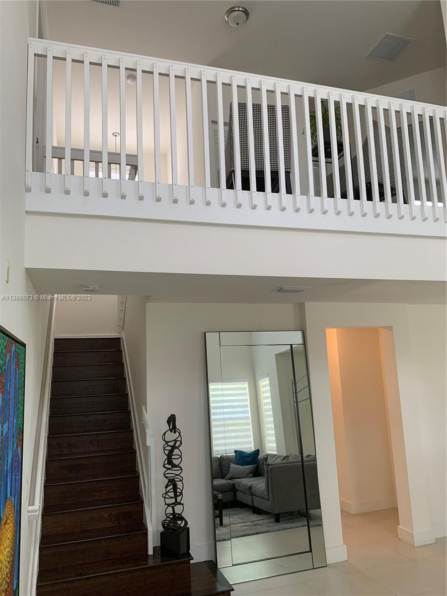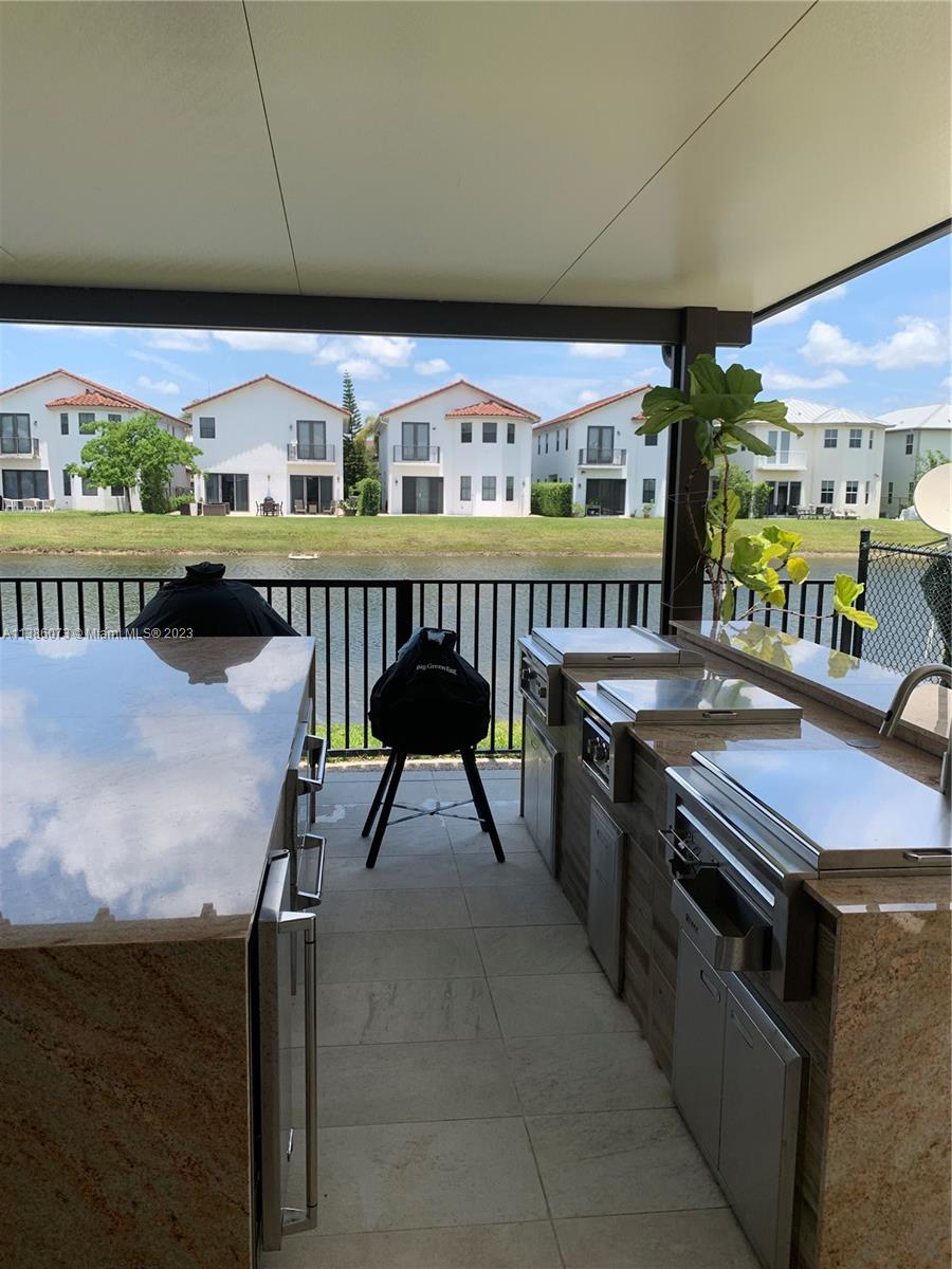 Welcome to Vintage Estates beautiful lake front single family home located in one of Doral's most sought after gated communities. This gorgeous 2,945 sqft home features 4 bedrooms and 4 bathrooms with stainless steel appliances and wood cabinetry throughout the kitchen and bathrooms. Master suite and two additional bedrooms located upstairs. 4th bedroom conveniently located on the main floor. This home is perfect for entertainment. The patio includes an outdoor barbecue kitchen and bar under a covered terrace and much more. Home may be sold with furnishings. Community Club House has pool, bar, gym, party room and more.