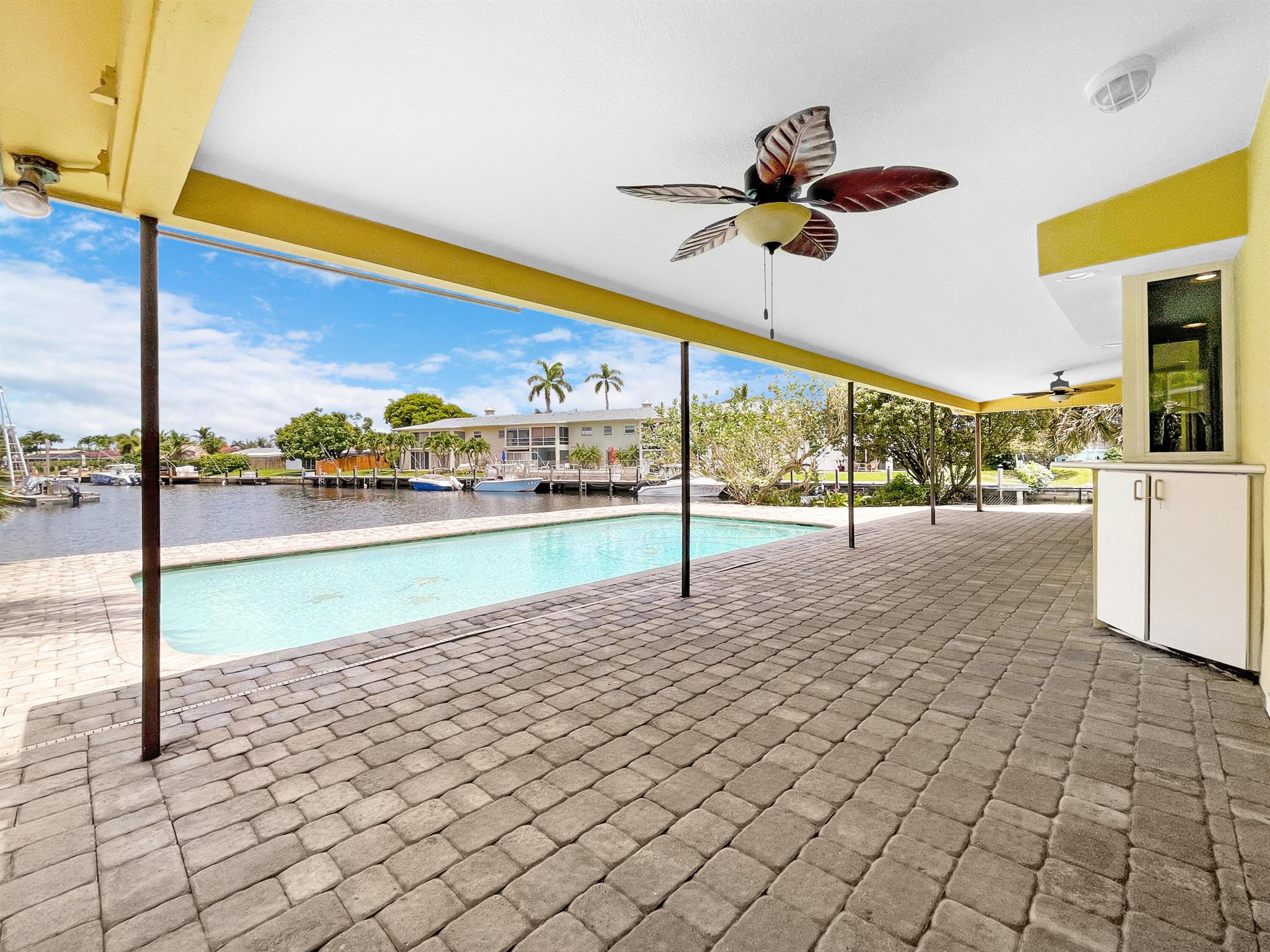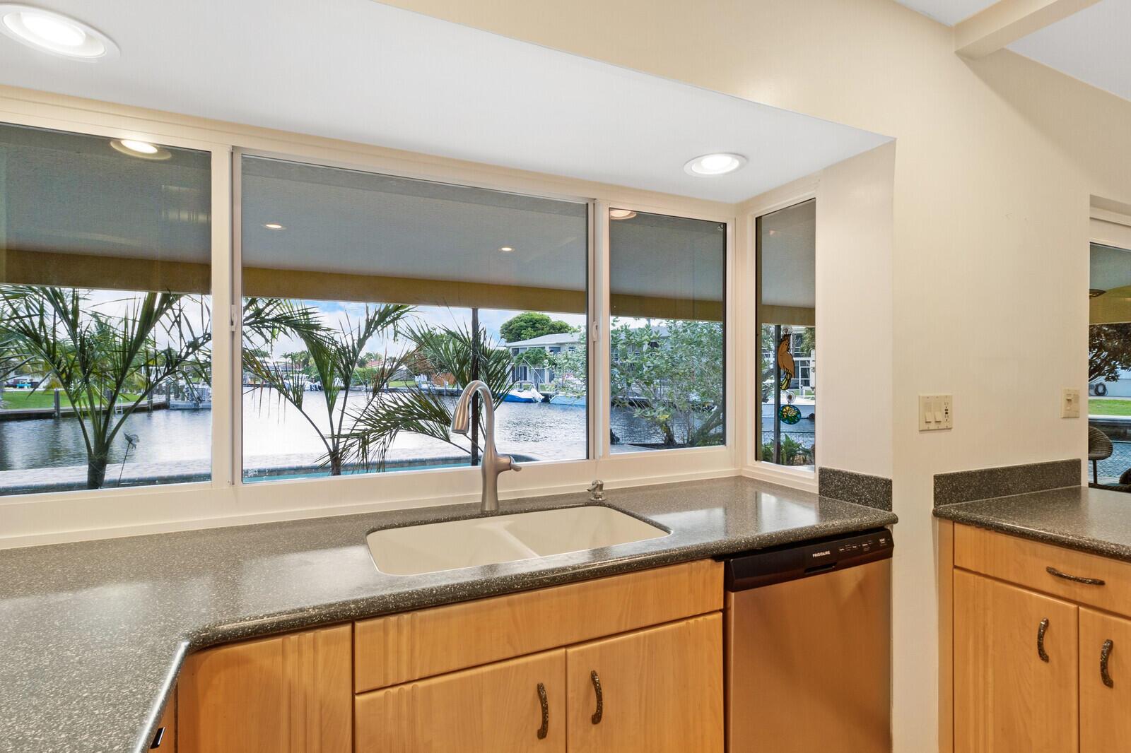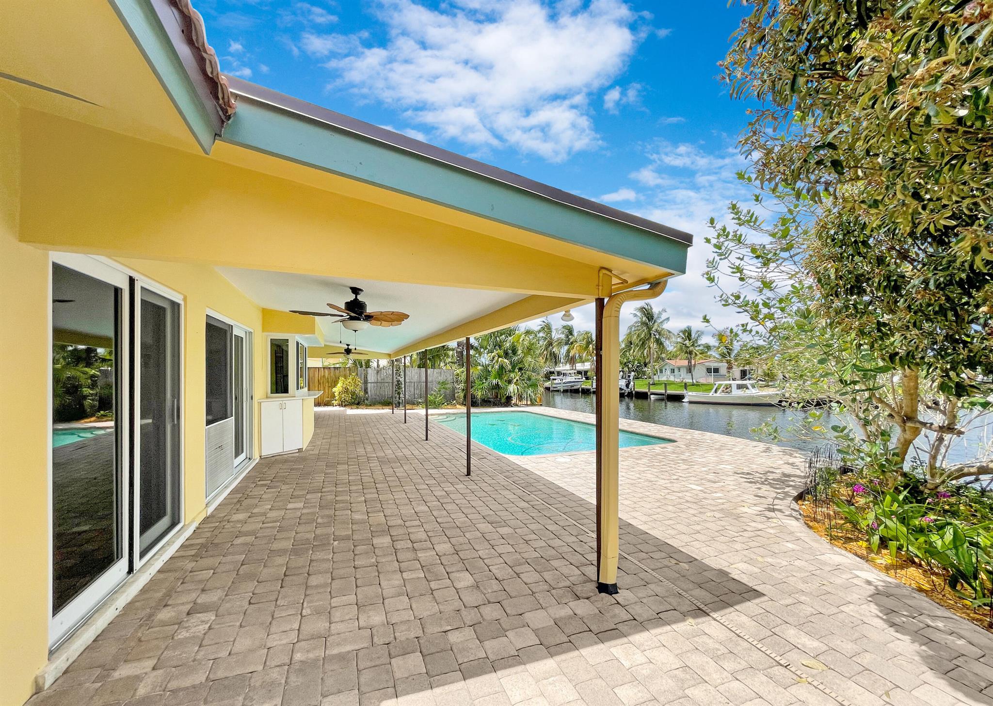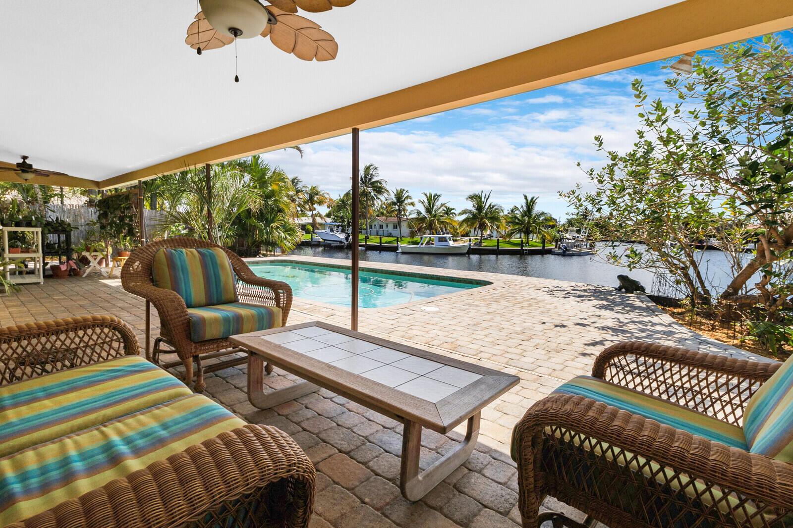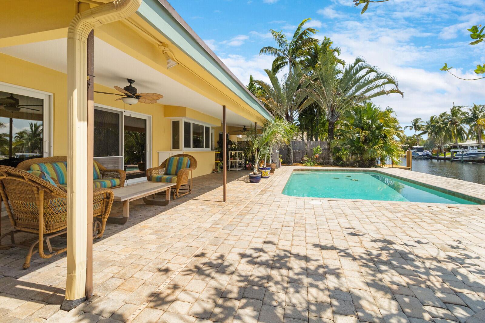 BEST PRICED POINT LOT! - GORGEOUS SUNSET VIEWS, POINT LOT. 202' WATERFRONT...ROOF 2017 & AC 2017 - NEW FOOTER/UPDATED SEAWALL. FOUR BEDROOM w/SPLIT FLOOR PLAN and OVERSIZED 2 CAR GARAGE. IMPACT WINDOWS. 2022: Neighborhood sandbar & favorite fishing hole close. Only 5minutes to INTRACOASTAL; less than 10minutes to the OCEAN. VERY PRIVATE LOCATION: Dead End Road road leads to Cul-de-sac. No traffic ! MASSIVE side yard for pets, playground, putting green or garden! Some photos are staged; no walls moved or removed. This is the one you have been waiting for! Pompano Beach is one of the fastest growing cities in South Florida & known for its restaurants, roof-top bars & luxurious waterfront dining like Houston's, The Foundry, Maxx's Cafe or CASUAL SIDEWALK CAFES