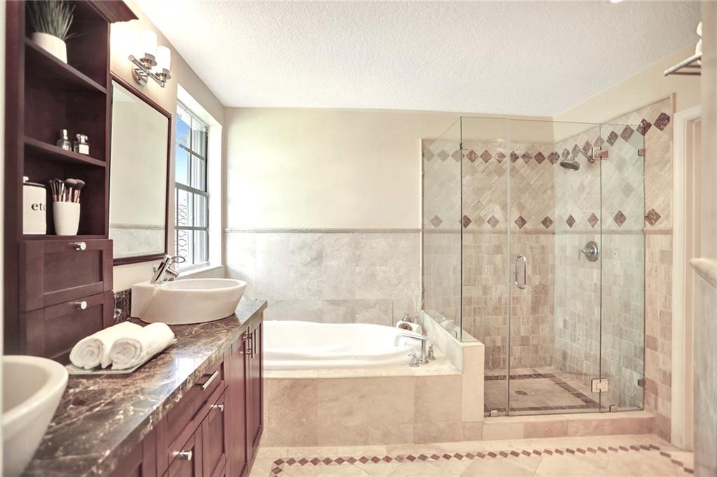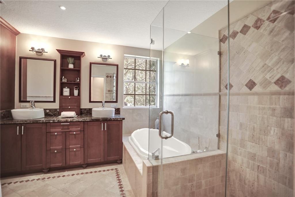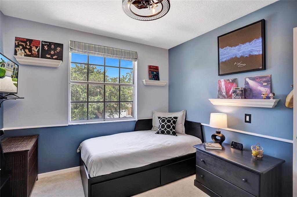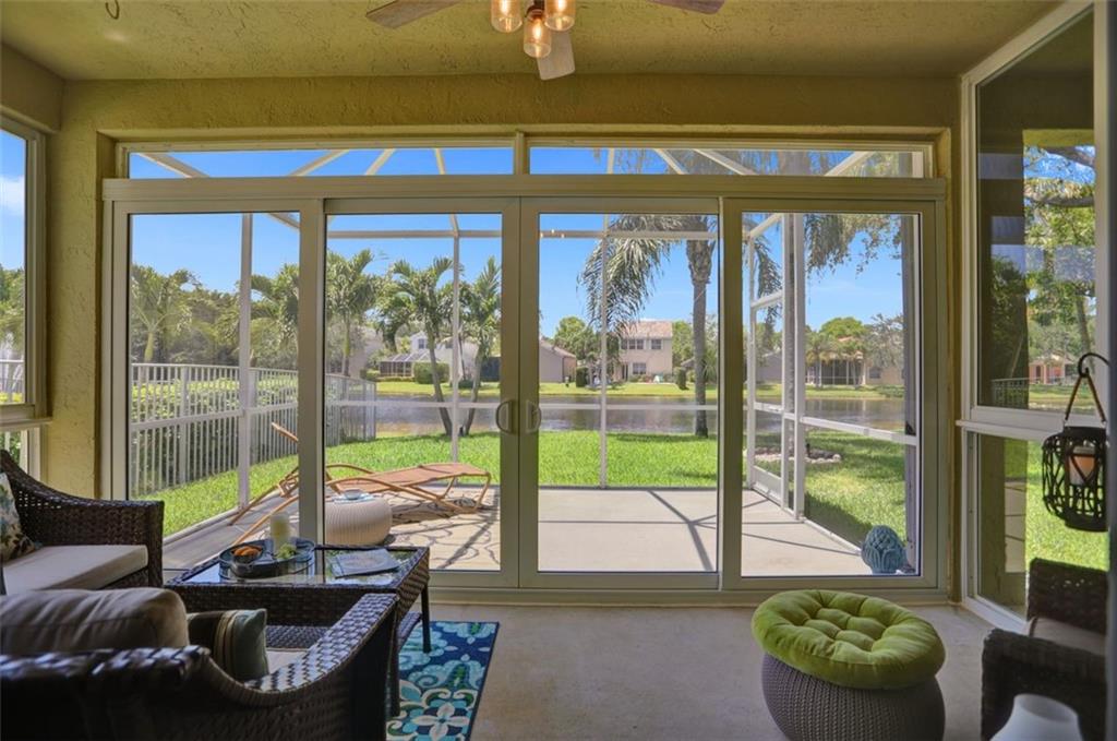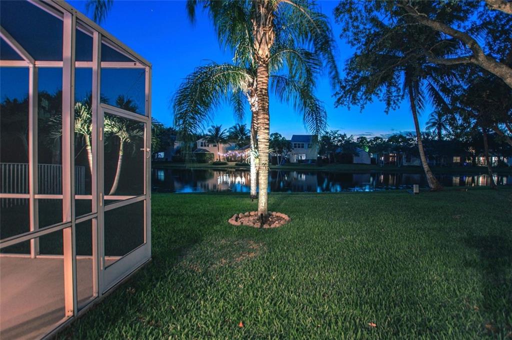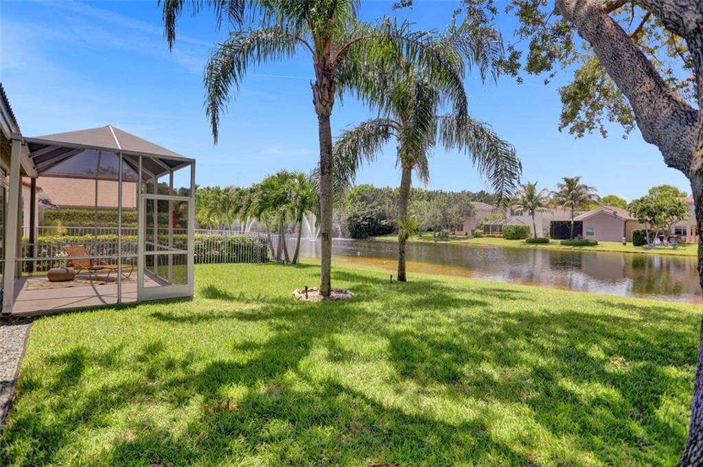 Gorgeous 5BD+Loft/3.5BA/2CG residence nestled on a picturesque lakefront lot w/sprawling backyard, shady trees w/landscape lights & sparkling fountains! NEW ROOF 2018! Stunning NEW IMPACT GLASS enclosed sunroom brings the outdoors in, creating a relaxing Zen-like spot! NEW features incl special solar screens for outdoor patio, AC 2022, HWH 2021, W/D 2020, new lights, fans, newer appliances, custom shades & more! Gourmet granite kitchen w/solid dual-toned solid wood cabs, breakfast center island, custom range hood, pullouts, uplighting & stainless appliances incl NEW Bosch dishwasher & LG Refrig 2020, Samsung oven 2018. All remodeled bathrooms; master bath w/travertine/solid wood cabs, seamless/rainfall shower, modern sinks. Ample room for pool! Accordions, community pool/park, A+ schools!