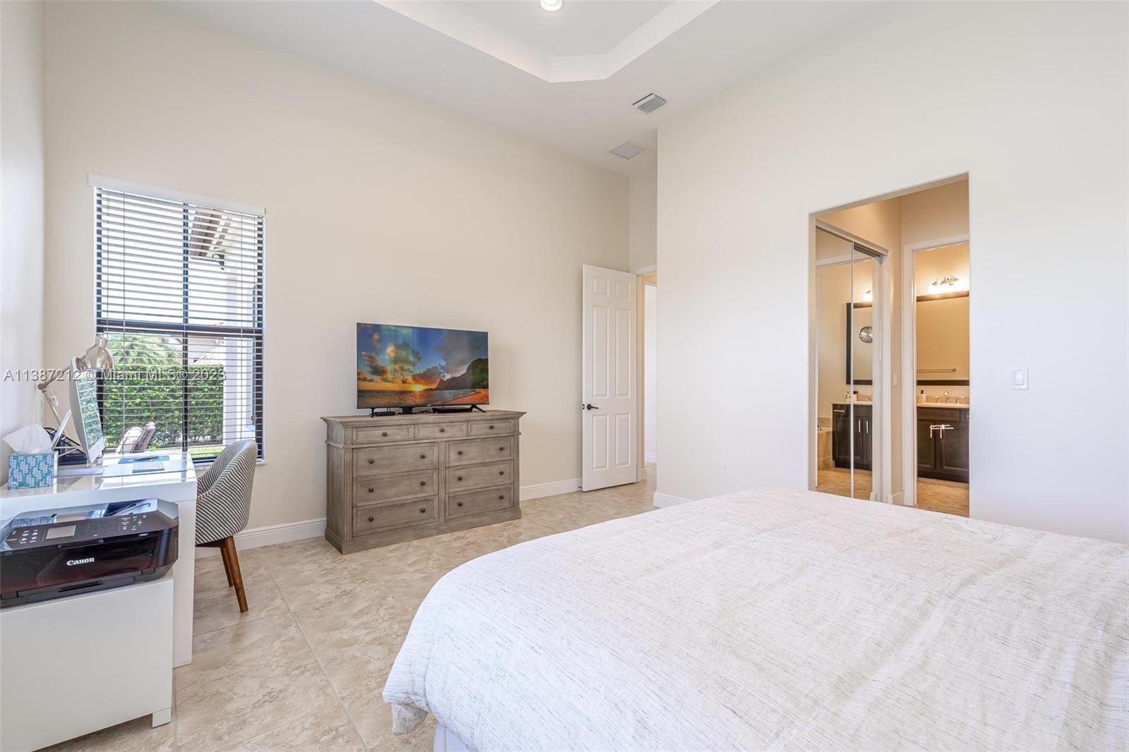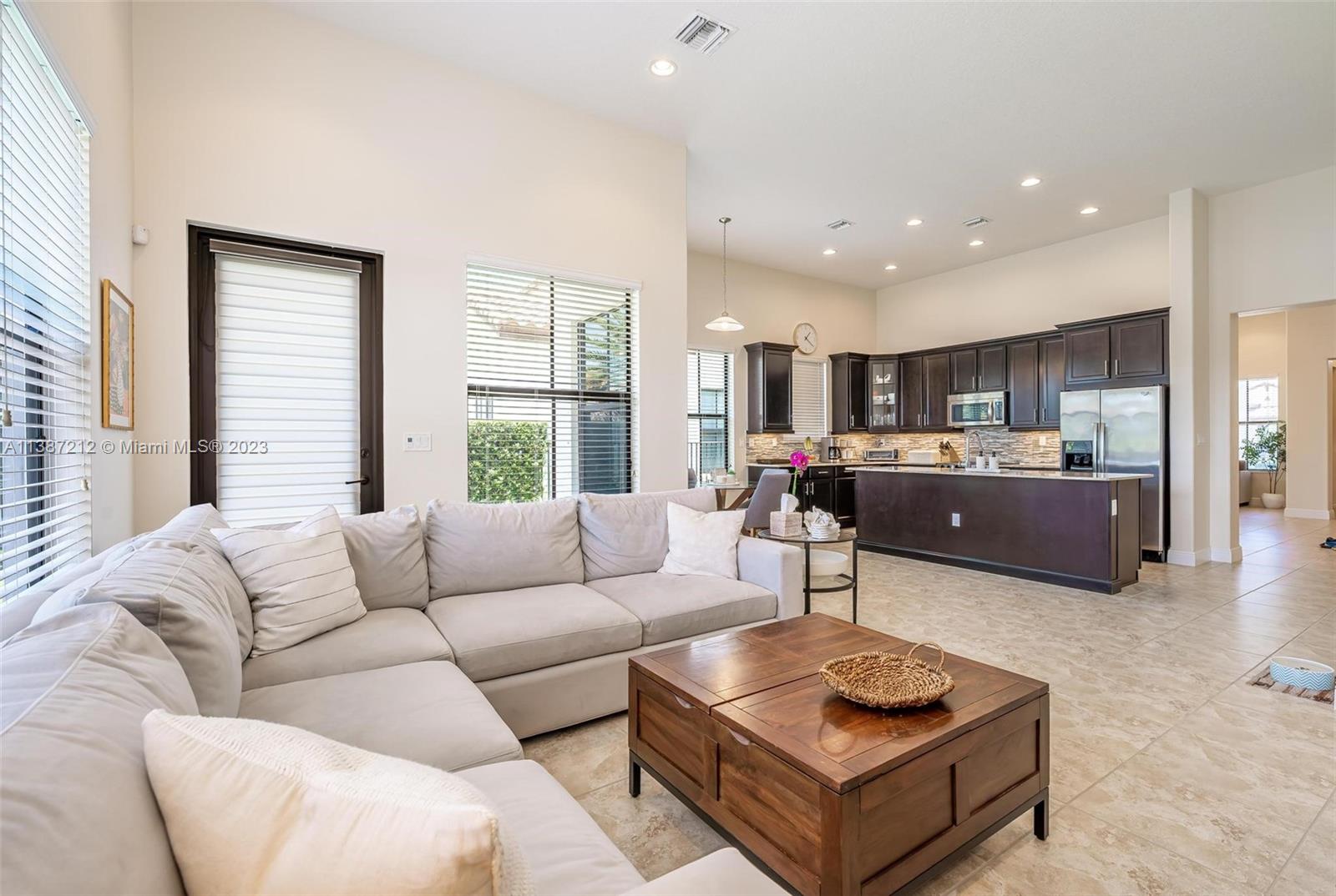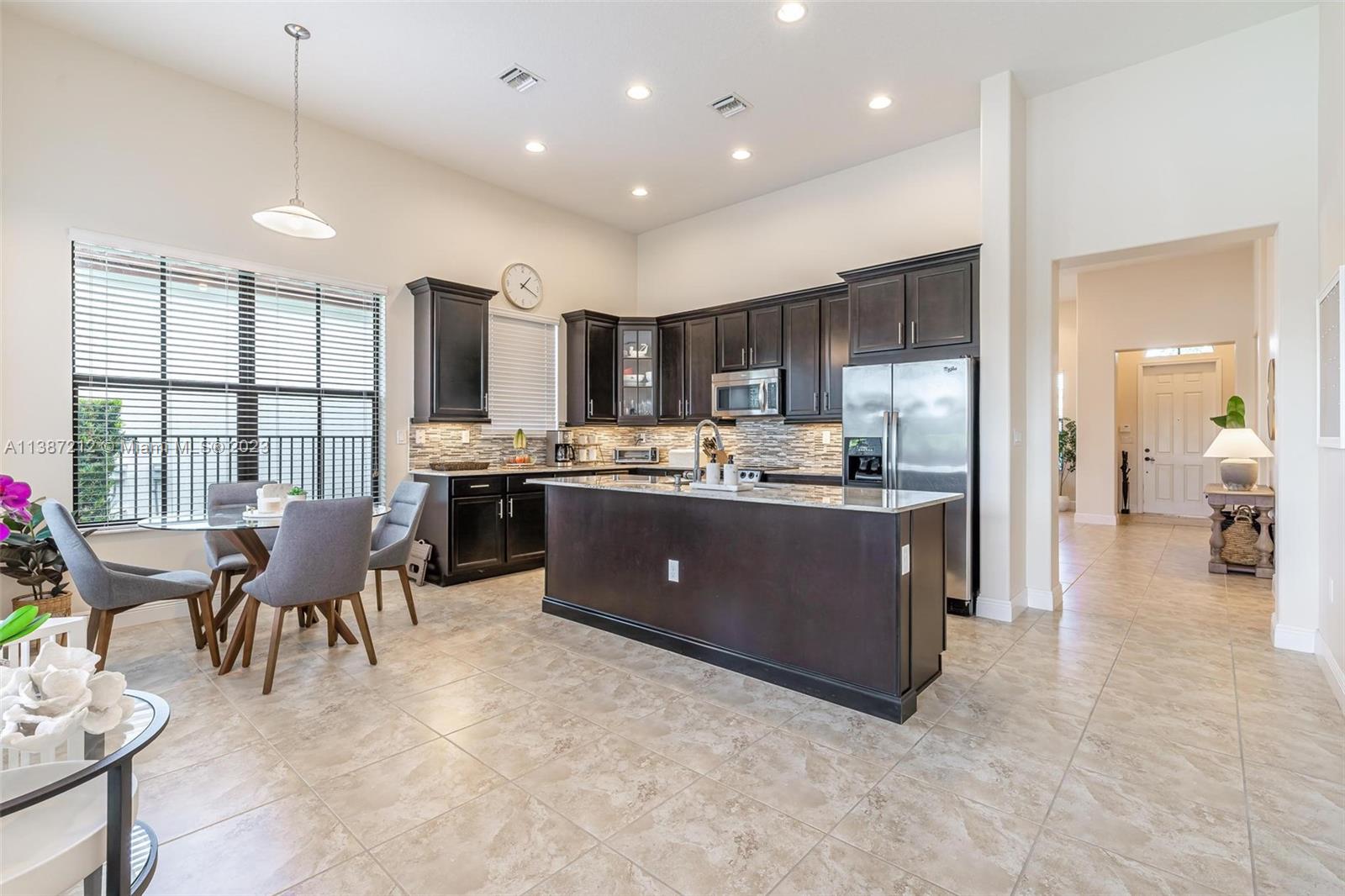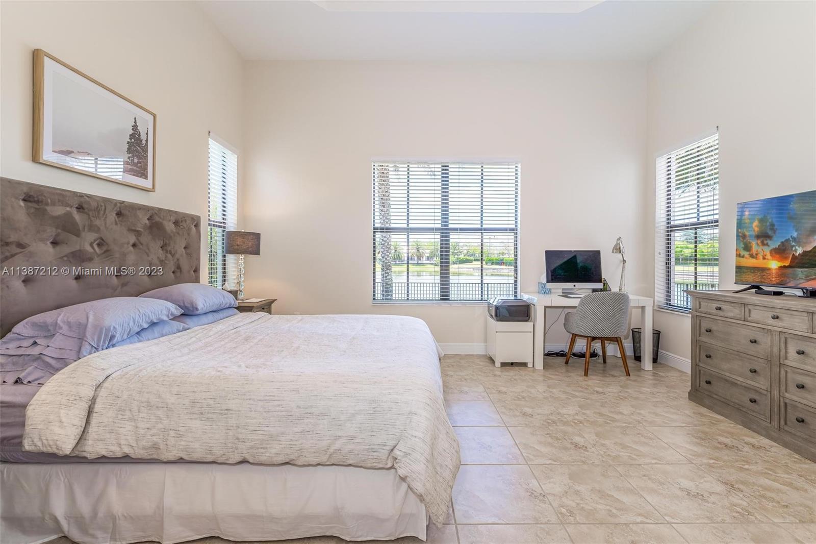 Fantastic sought after lake front Chapala model in the exquisite community of Monterra in Cooper City. Fabulous 4/3 with popular split floor-plan, this open and airy home has soaring 12 foot ceilings and spacious rooms. Tons of natural lighting from the many windows and slider. Home is in pristine condition ~turnkey~ move right in! Sit on the patio and enjoy the cool breezes from the pretty lake. Large lot with room for play, pets and pool! Live the luxurious South Florida lifestyle with the community's resort like amenities; huge pool, tennis, fitness center and more. Guard gated community adds to the upscale appeal. Excellent Cooper City schools and terrific location near shopping and highways. Monterra is Cooper City's premier location and this one is a WINNER!