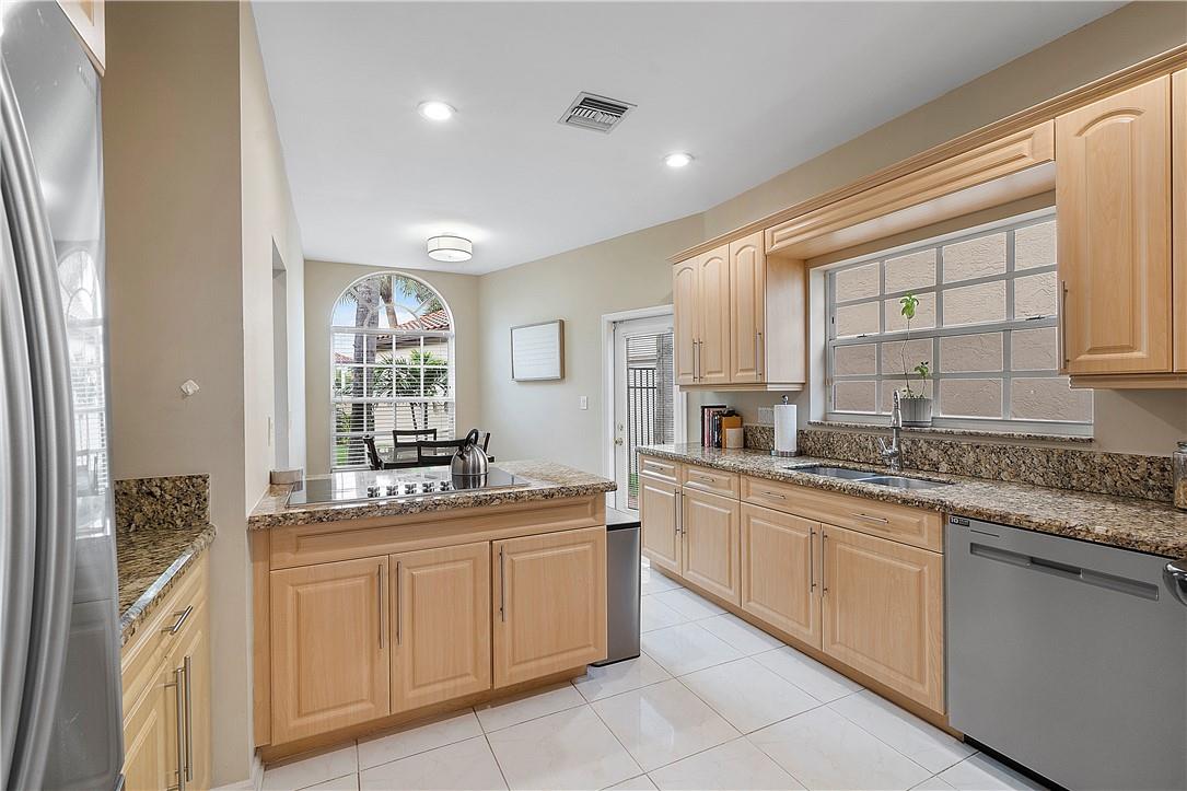Welcome home to this well maintained, beautifully upgraded, contemporary style home that's located in the luxurious community of Boca Pointe. Be prepared to be kept in resort style mode as this home was designed for both entertaining and everyday living. Enjoy the open floor plan, high ceilings, skylights, 3 bedrooms that boast 3 ensuite & walk in closets, chef style kitchen with stainless steel appliances & granite counter tops & did I mention there's 2 master bedrooms with ensuite fit for kings & queens! Step out into your privately fenced backyard that's perfect when entertaining & very pet friendly. The extra long driveway parks 6 cars along with your spacious 2 car garage. The pool is just steps away so be ready to experience the ultimate Florida style living! This is a must see!