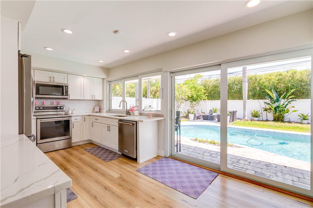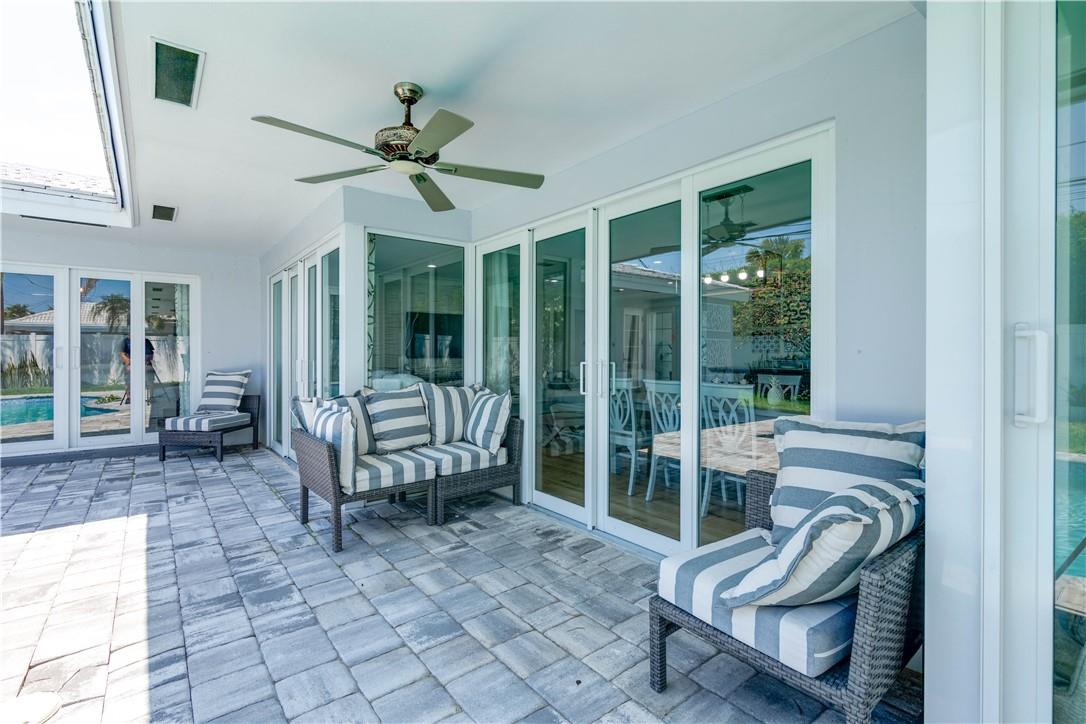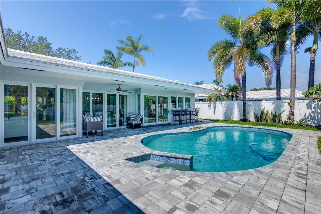 Come explore this elegantly remodeled home located in the beautiful Imperial Point neighborhood. This home, nestled in a lush tropical oasis, features an expansive open floor plan. The living space is ideal for entertaining, and the glass doors allow for lots of natural light to fill the room. The kitchen merges sophistication and comfort with stainless appliances, solid surface counter tops and white cabinetry. Enjoy a seamless transition of indoor & outdoor living from the kitchen and living space to your covered patio, pool and back yard. The elegant floors flow throughout the home providing continuity from room to room. Other compelling details include, high impact windows, large laundry room, custom walk-in closet cabinetry, high hat lighting.