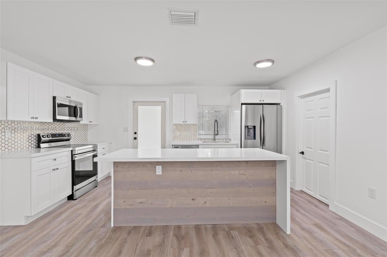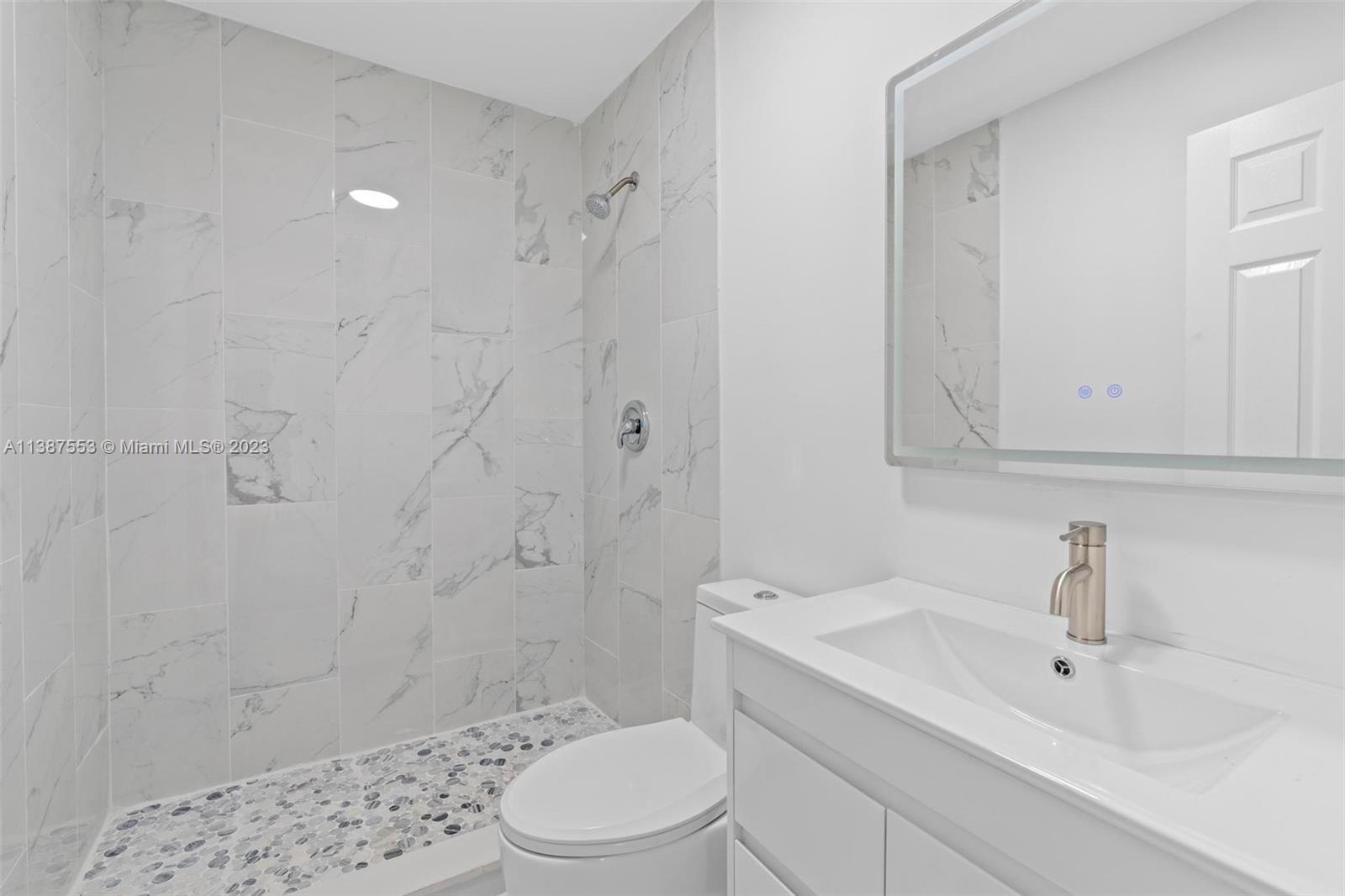 TOTALLY REMODELED 3BR 2 BATH Hialeah Home 1200 SQ FT on 7,000 SQ FT LOT. Brand New Roof, New Impact Windows and Doors ,All New underground plumbing, electrical and A/C ducts and Units. All New laminate floors, baseboards and Interior Doors. New European Kitchen Cabinets W/ Quartz countertops. Kitchen has large island with eat-in counter, All New Stainless Steel Appliances including Side by Side Refrigerator, Range , Microwave and Dishwasher Brand New washer / dryer hookups and tankless W/H. . All New high end fixtures and completely remodeled bathrooms, House has a split floor plan consisting of a 2/1 and 1/1 perfect for In-law quarters.