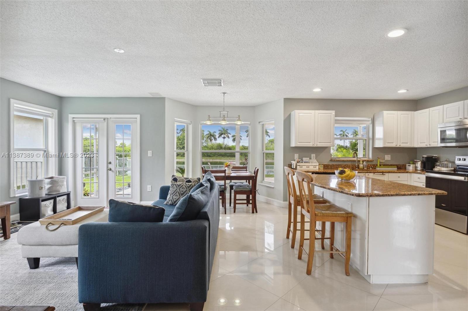 Beautiful LAKE FRONT 4/3, 2 car garage home in the desirable community of Marina Isles at SilverLakes. Updated & Lovingly maintained featuring a majestic entryway with high ceilings & lots of natural light. Spacious & open floor plan with porcelain tile. Formal living & dinning rooms w/an Updated kitchen, large island, granite countertops, & SS appliances. Gorgeous Brazilian Teak hardwood floors on 2nd floor. Large master suite with tray ceilings, walk-in closet, & master bath with Roman tub. Upstairs French doors to a private balcony and incredible lake views! French doors lead to a large screened & paved patio ideal for entertaining. Huge fenced-in yard w/room for a pool & Priceless lake views. garage w/ epoxy floors and large cabinets. on a Quiet and Safe cul-de-sac street.