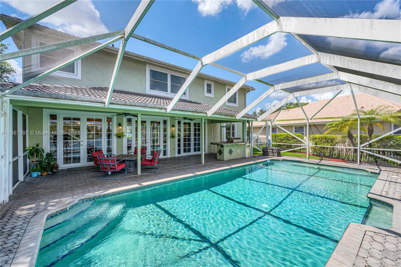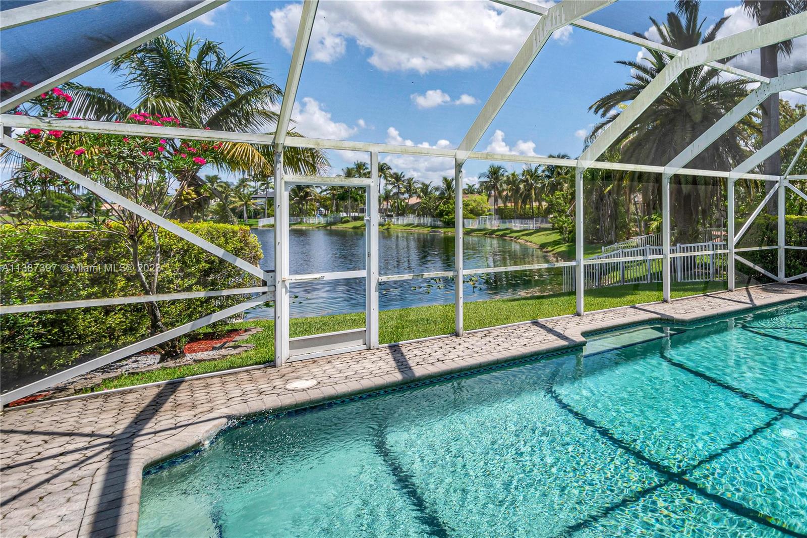 Unique home in Stoneridge Lake Estates Gated Community. Beautiful point lot home with extensive unobstructed lake front view. Perfectly appointed to radiate natural light and private outdoor living. Enjoy year long, outdoor Florida Life in your screened-in sparkling pool with with all day sunshine. One bedroom is located on the ground floor for ease and comfort. Open plan gourmet Kitchen, Casual Dining and Family Room. Separate Living Room and Formal Dining Room. Excellent Large Laundry Room. Updates can be seen throughout. Crown molding, impact windows and doors with newer appliances. 2 Newer ACs, Newer Water heater and Recently Sealed Roof. 3 car garage! This home is move in ready! The community boasts gated guard house, 2 tennis courts, a basketball court and park.Make it yours today!