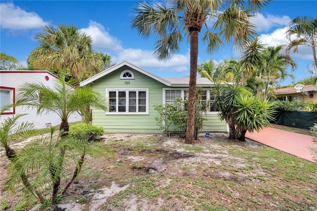 Absolutely adorable Key West Style Bungalow with large backyard... Front Porch entry ... All large rooms... Make this home your tropical oasis with fruit trees and private yard ... This house is walking distance to Hospital and only three blocks to intercoastal!!