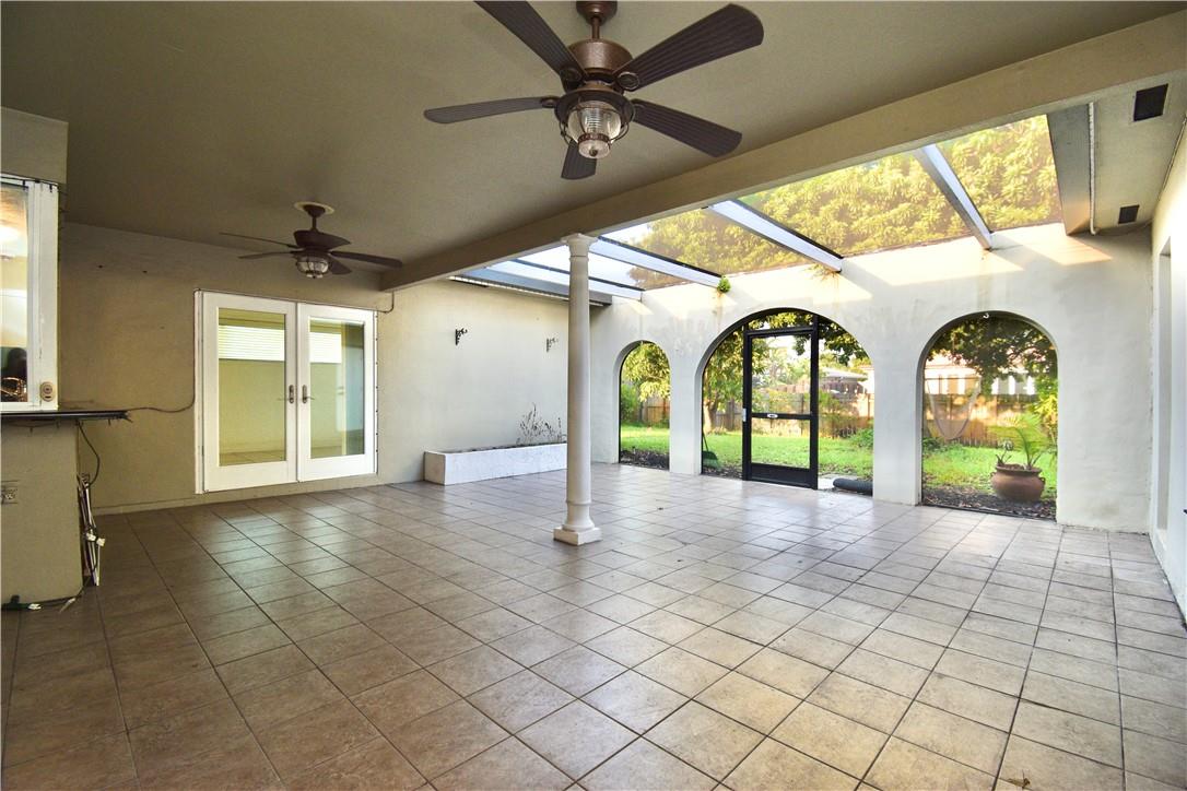 Lovely 3 br 2 bath home with a 2 car garage in the heart of Hollywood Hills. This home boasts impact windows, an upgraded kitchen and breakfast bar with granite and stainless steel appliances, brand new frig and tile floors in the living area. There are french doors to a large screened in patio leading to a serene, shaded, big back yard. Newer A/C. In addition to the 2 car garage is a spacious circular driveway that fits 4 cars. Close to major highways, shops and places of worship.