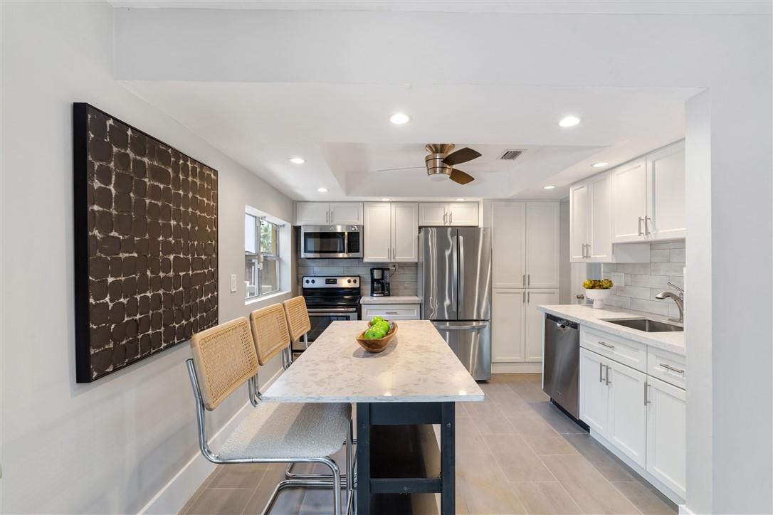 Nestled at the end of the canal just a short cruise away from the intracoastal and within close proximity to all the amenities that define South Florida making it one of the most iconic regions in all of the world to call home is your new home. Pride of ownership is evident as you walk through this 3 bedrooms, 2 baths home with lots of natural light offered by the early afternoon sun beaming down the canal as you overlook the pool and pavered deck area. The property is decorated with native plants to provide seclusion for all those seeking a private rear yard setting equipped with a dock. Completely renovated, 3 bedroom, 2 bath, with a bonus room that can be a fourth bedroom, office, den or additional family room. White cabinetry with quartz counters, new flooring and brand new bathrooms
