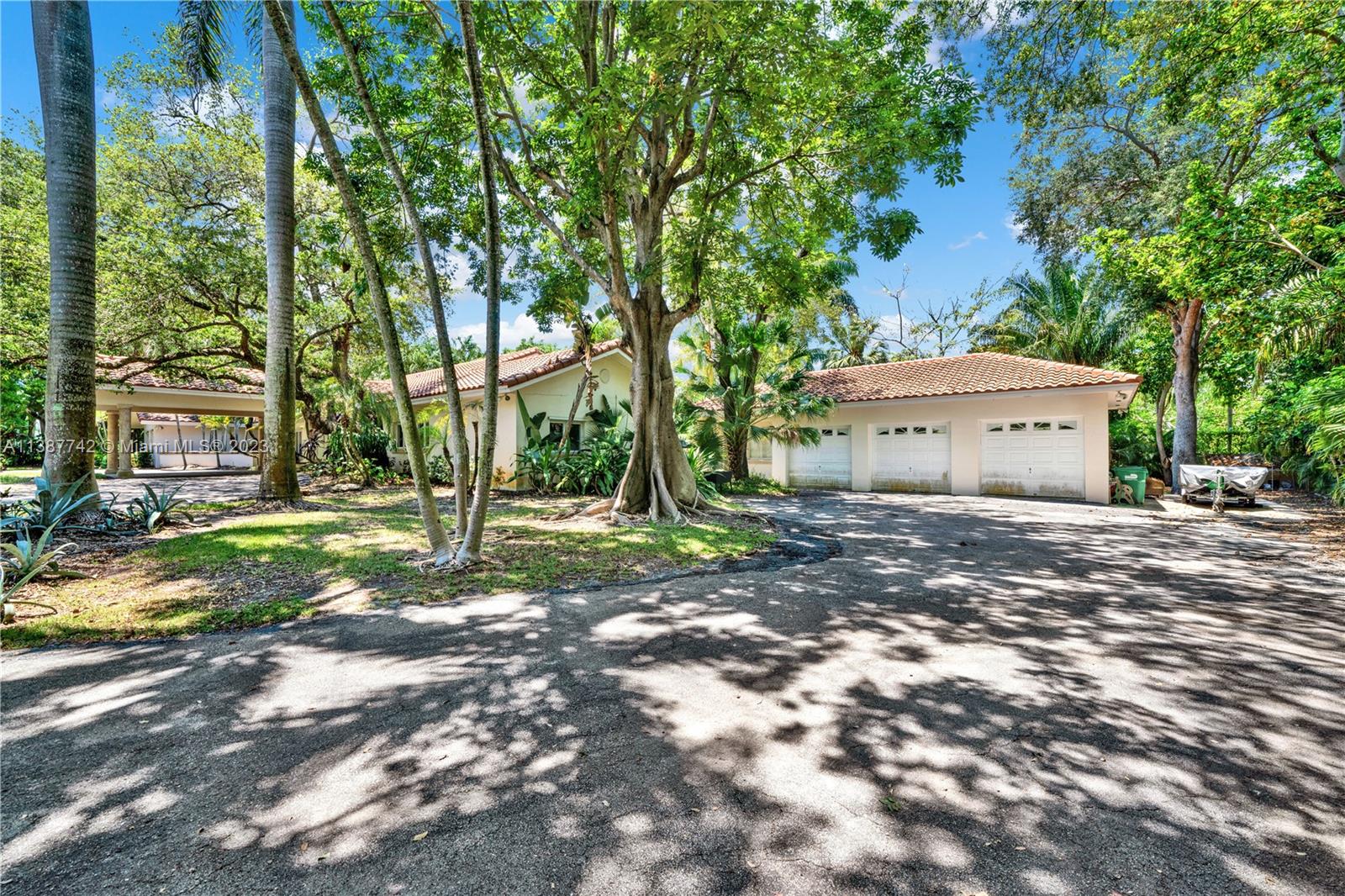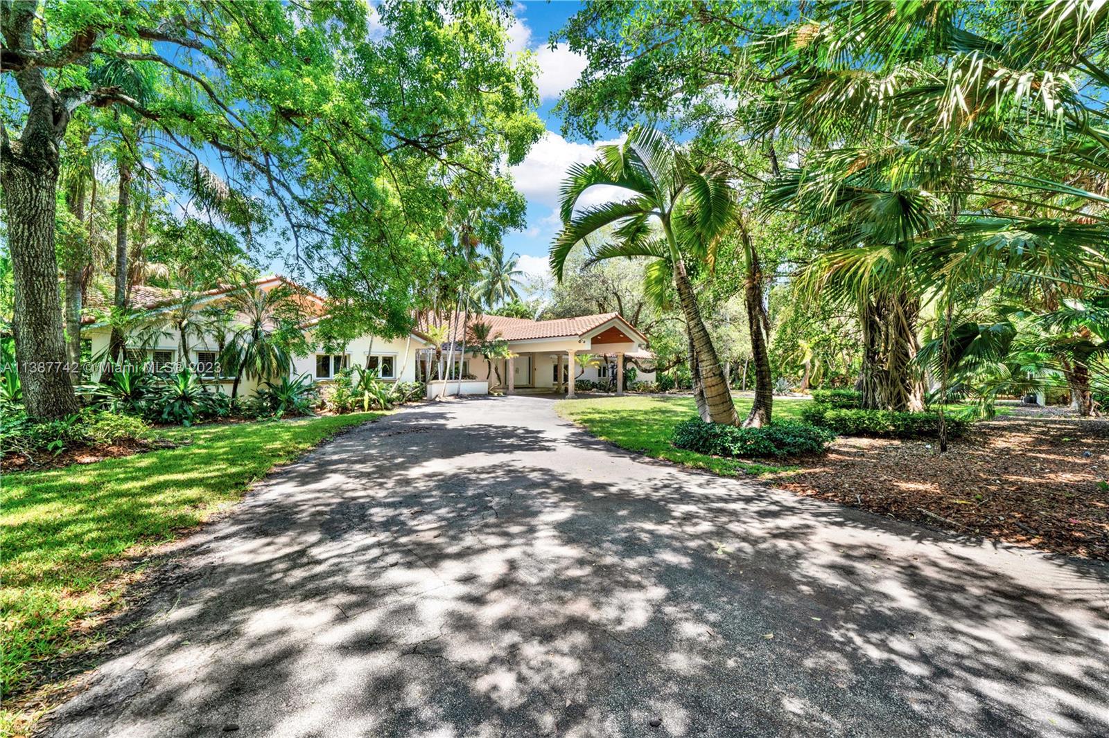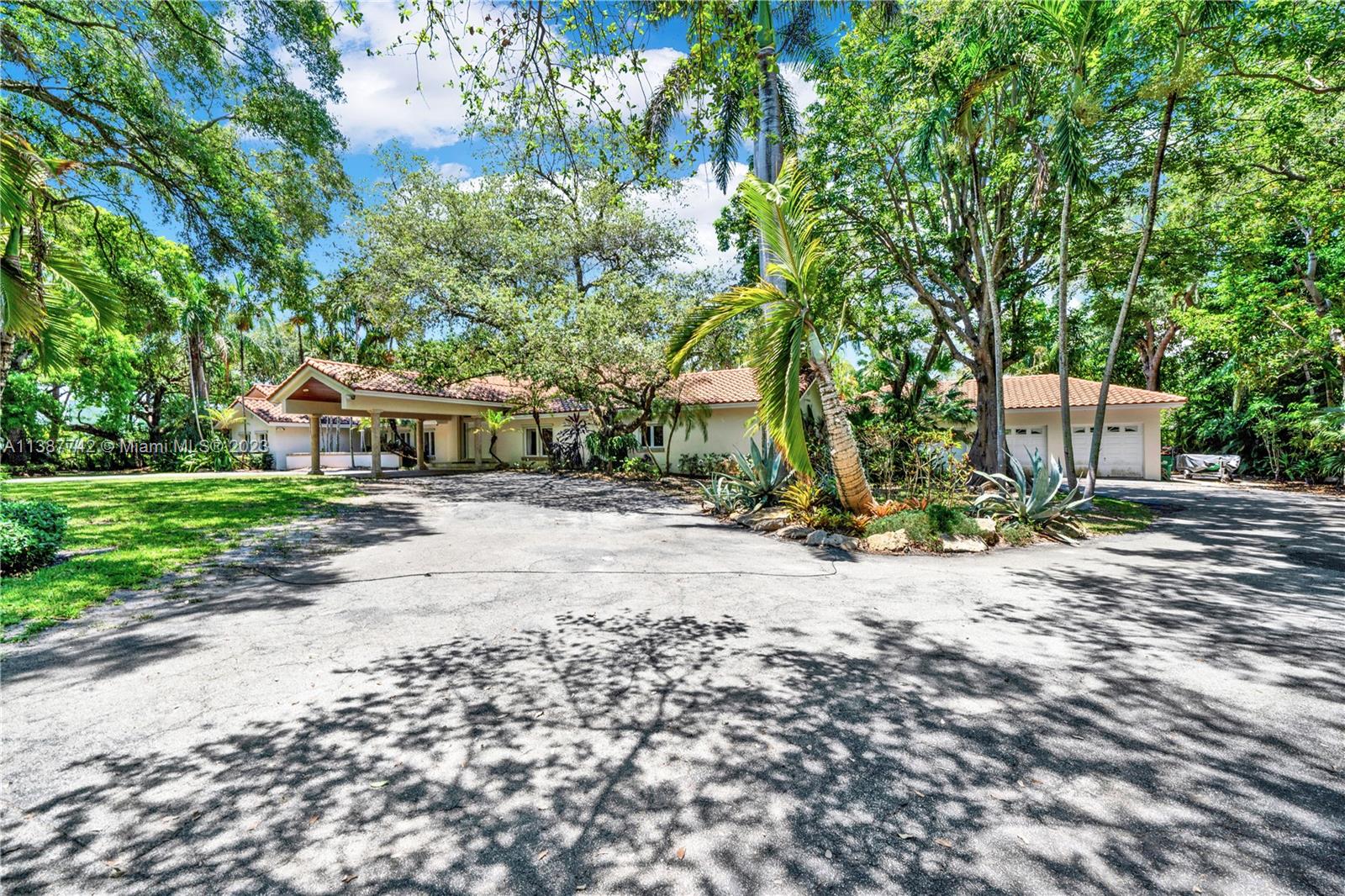 Located on prestigious Old Cutler Road in Pinecrest on an oversized 51,400 square foot lot sits this 5/ 6.5 bath estate home surrounded by lush foliage. The home features some volume ceilings, a split bedroom plan, a 3 car garage, and a detached guest house. In addition, the home is designed for entertaining with a large foyer entry and formal living room, dining room, and family rooms overlooking a beautiful open pool in the backyard. This property requires some maintenance and minor touch-ups. The entire gated property offers ample space for outdoor activities and relaxation, so bring your imagination.