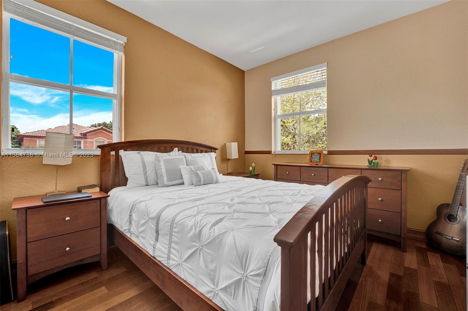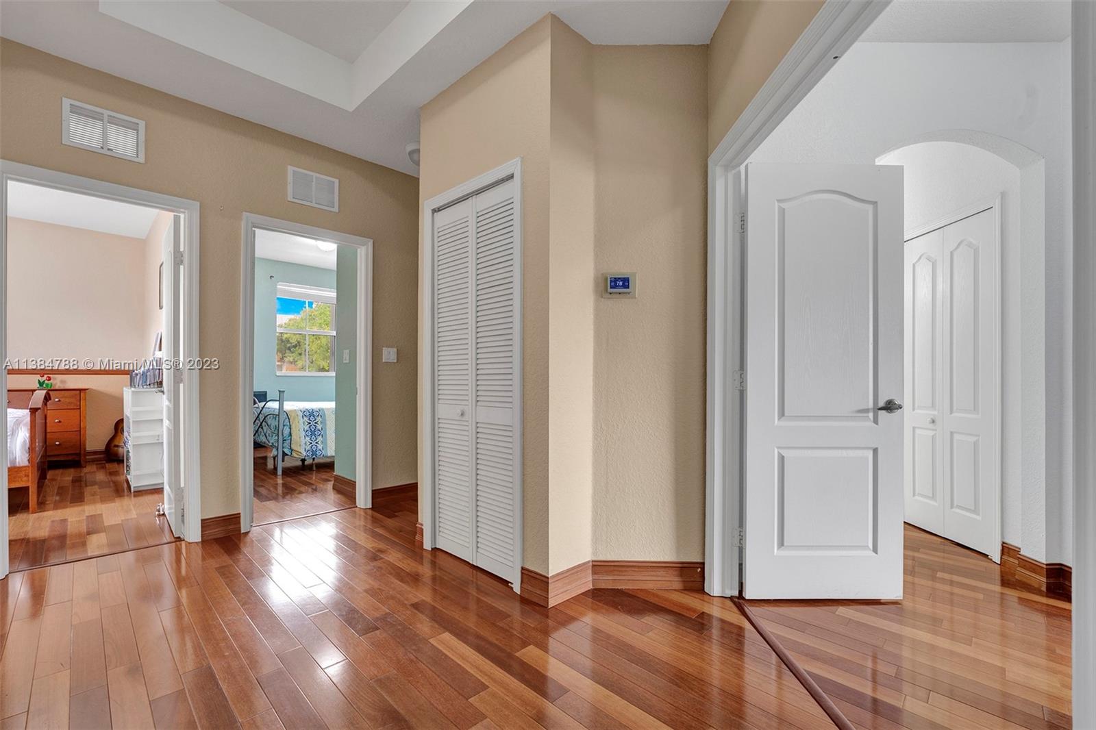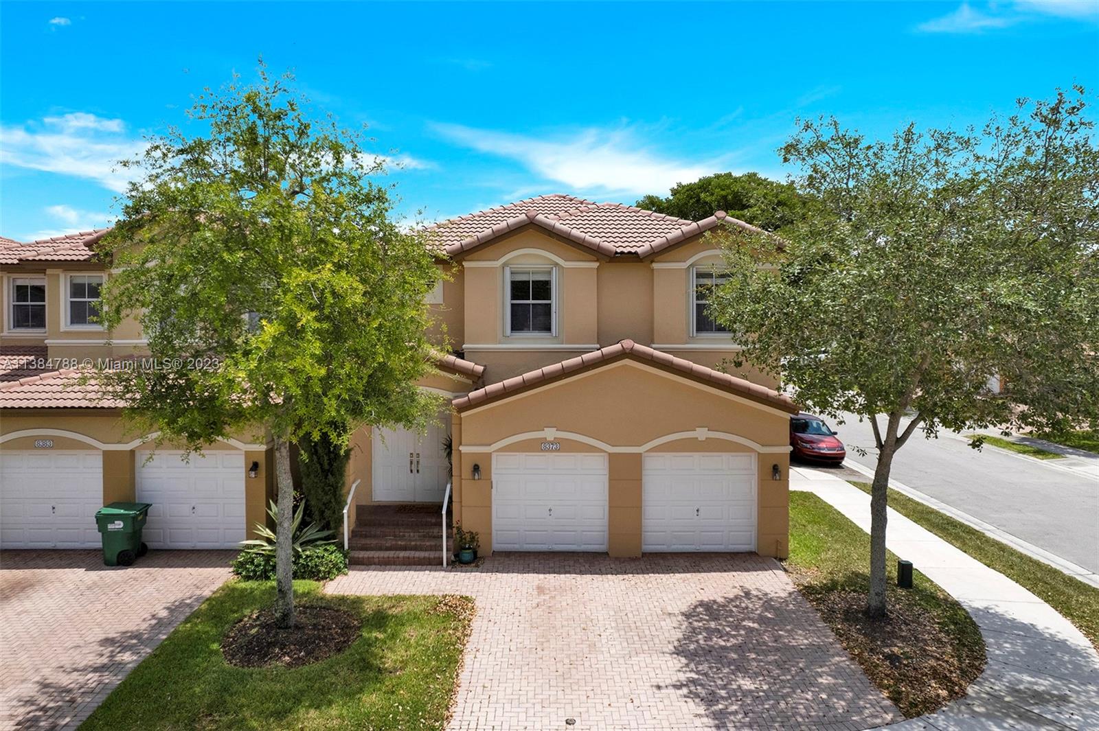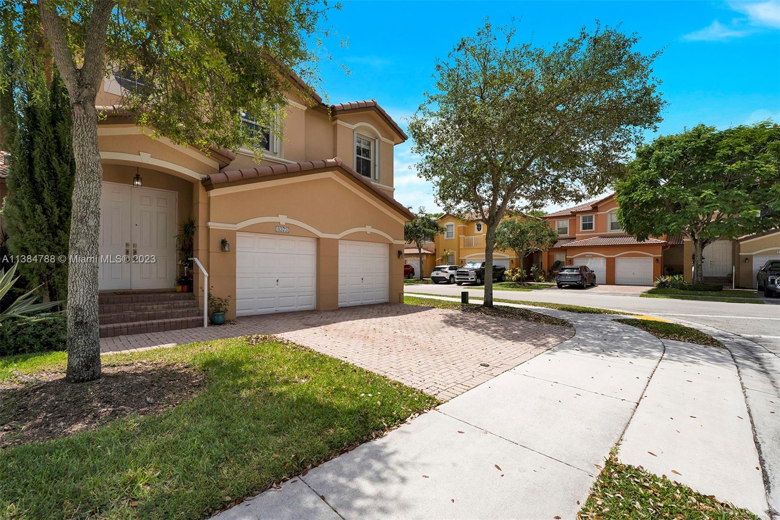 Welcome to this beautiful 4Bed 2.5Bath w/ 2 Car Garage Coach Home located in Madeira I Islands at Doral. The corner unit offers an open floor plan with marble flooring on the first floor and real wood flooring on the second floor. The kitchen features stainless steel appliances, an extra-sized refrigerator, double oven, wine cooler, stylish back splash, and cooktop. The impact windows and sliding doors on the first floor provide both security and energy efficiency, while the hurricane shutters on the second floor offer additional protection during storms. Madeira residents can access many amenities, including a community pool, gym, tennis/basketball courts, playground, jacuzzi, and more. The location is convenient, with A+ schools, shopping centers, restaurants, and major highways nearby.