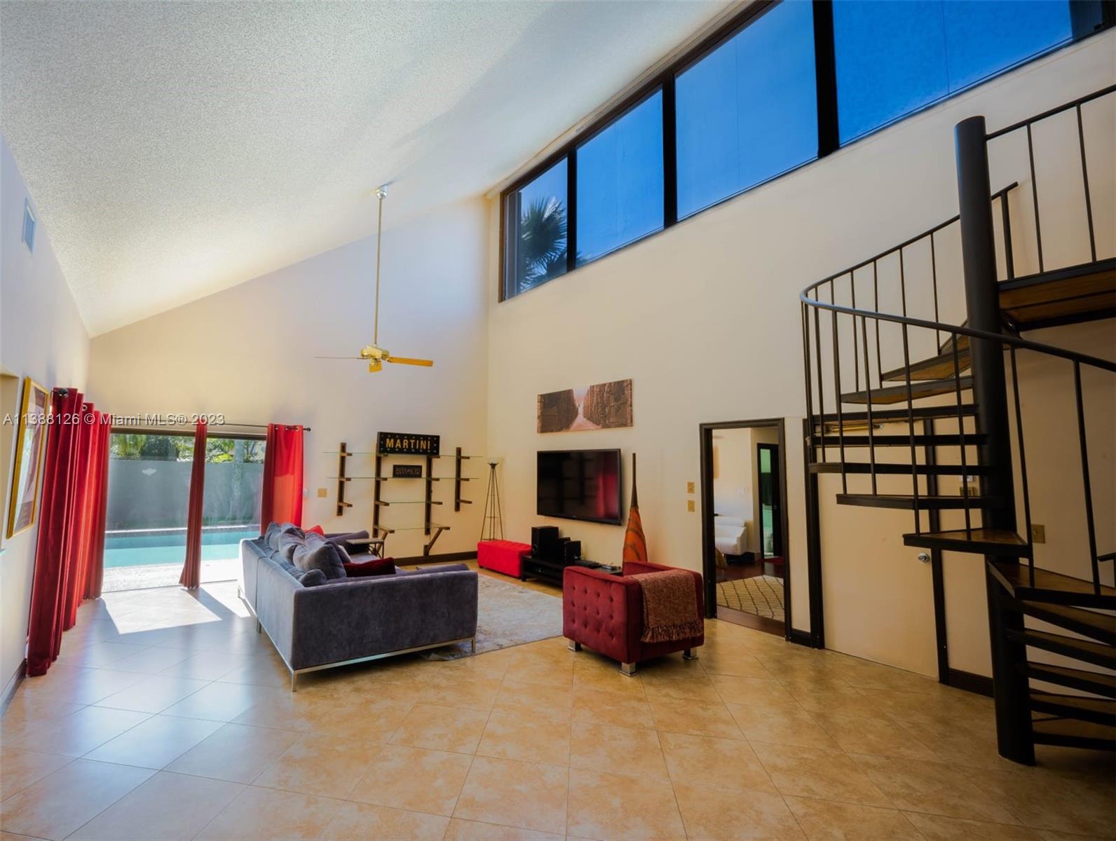 **NEW UPDATE TO LISTING: NEW ROOF AND ELECTRICAL PANEL BEING INSTALLED Charming 3BD/3 full bath fully furnished home with stunning design. Features a 22ft vaulted ceiling in the living room leading to the gourmet eat-in kitchen with stainless steel sink and double pantry. The master bedroom boasts a square sunken shower with multiple jets and a large walk-in closet. Discover a hidden gem through the spiral staircase—a private bedroom that offers versatility and privacy for guests or loved ones with its own full bath and a large walk-in closet, ensuring comfort and convenience for all occupants. Enjoy the unground pool in the walled-in large yard with dry bar, BBQ and enough lawn for kids to play or garden. This upscale home offers a truly remarkable living experience. Easy to Show