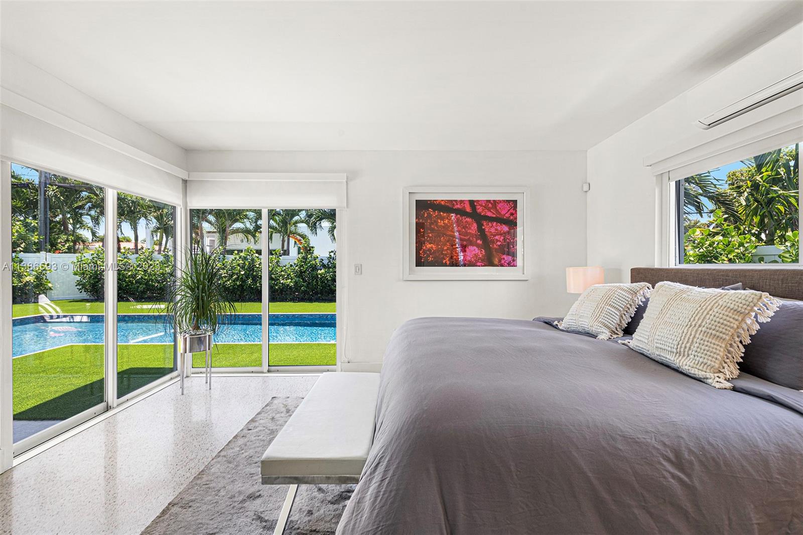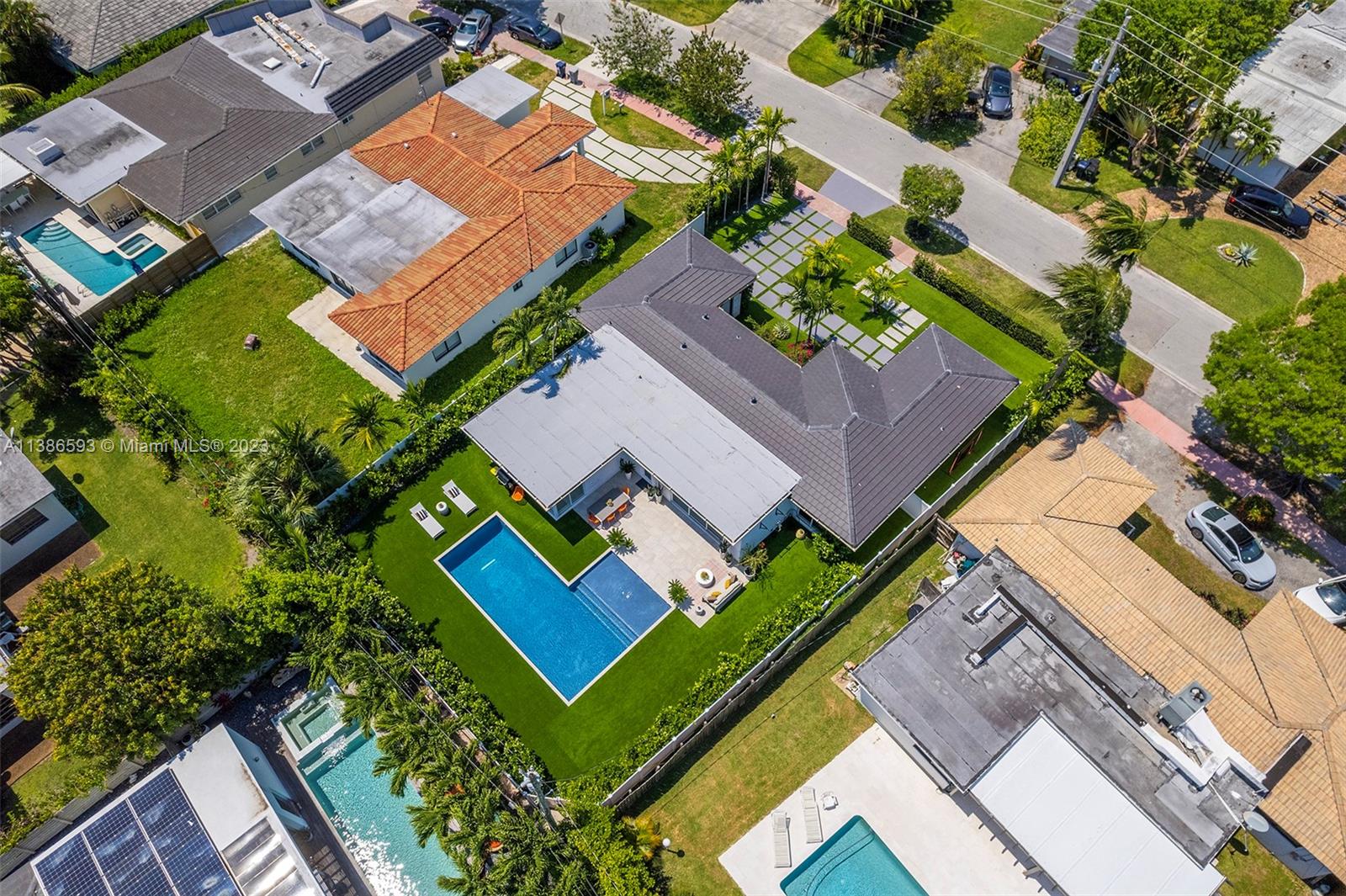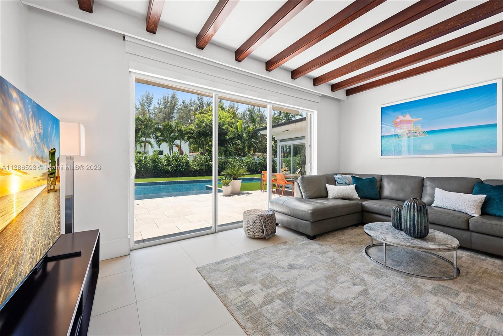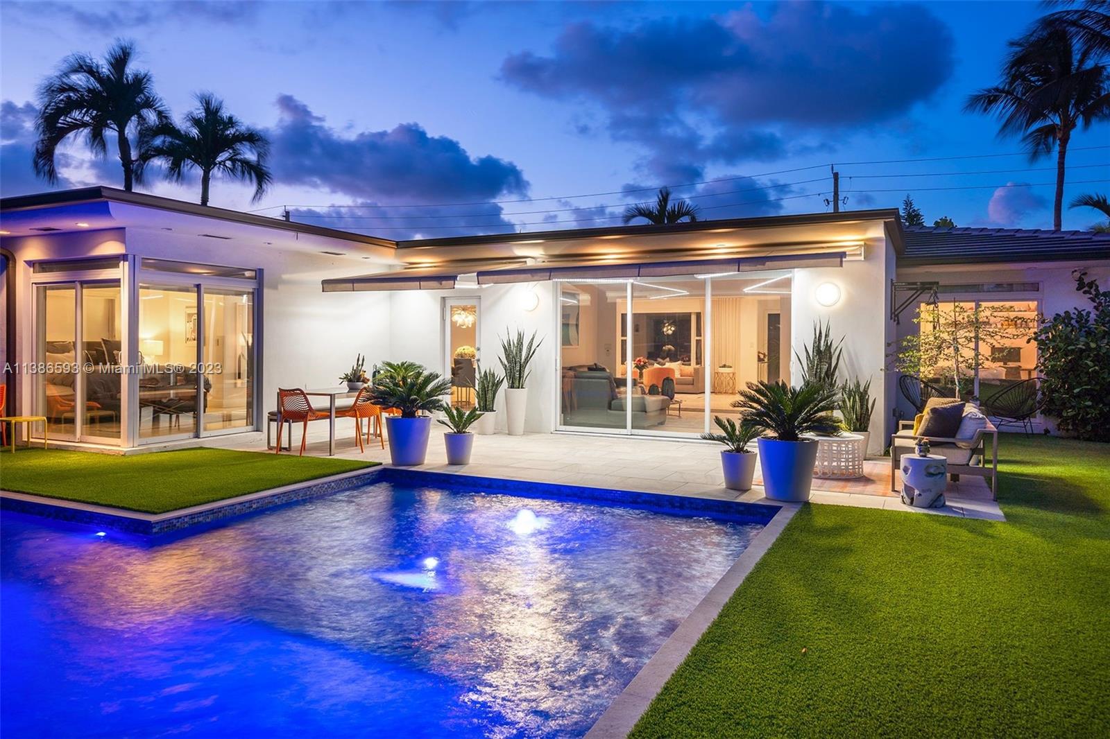 Gorgeously renovated, move-in ready, 3 bed/2.5 bath home, located on oversized 8,500 SF lot in the gated community of Normandy Shores, in Miami Beach. NEW POOL, NEW ROOF, NEW PRIMARY BATHROOM. Great open flow for entertaining. Contemporary kitchen with Gaggenau and Subzero appliances. Florida room opens to manicured backyard with state-of-the-art pool. Large bedrooms, primary suite with access to backyard. Updated primary bath with dual sinks and walk-in shower. Natural light throughout. Original terrazzo floors. Large contemporary driveway for several cars plus GARAGE! Spectacular curb appeal with lush landscaping. Gated community with top amenities: Golf Course, Tennis Courts, Children's Playground and Clubhouse. Walk to the beach, Normandy Circle shops and restaurants. A MUST SEE!
