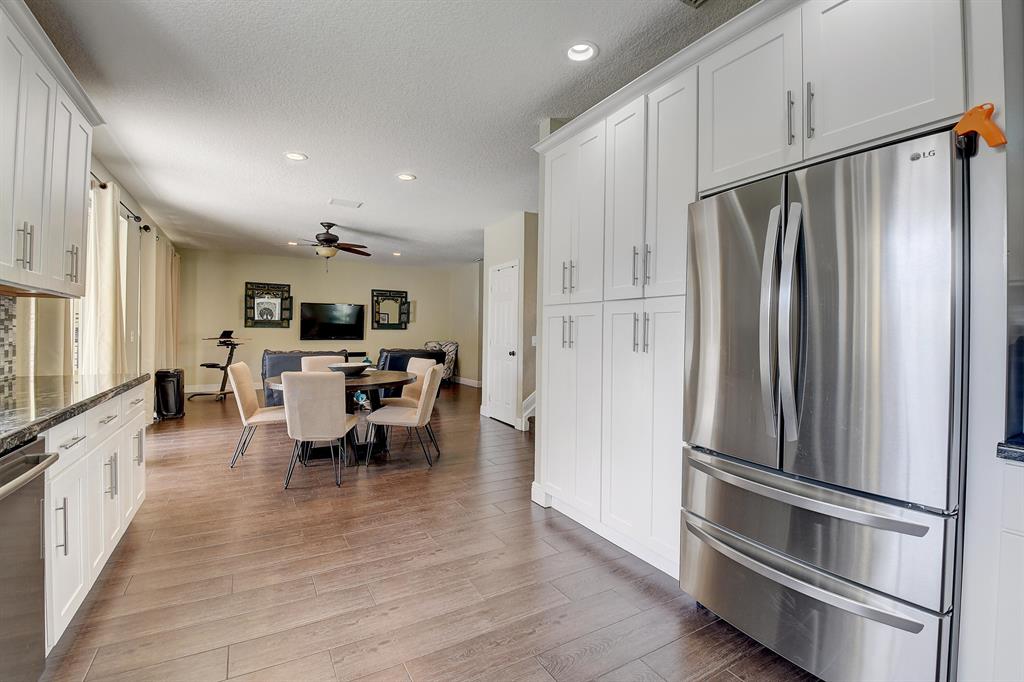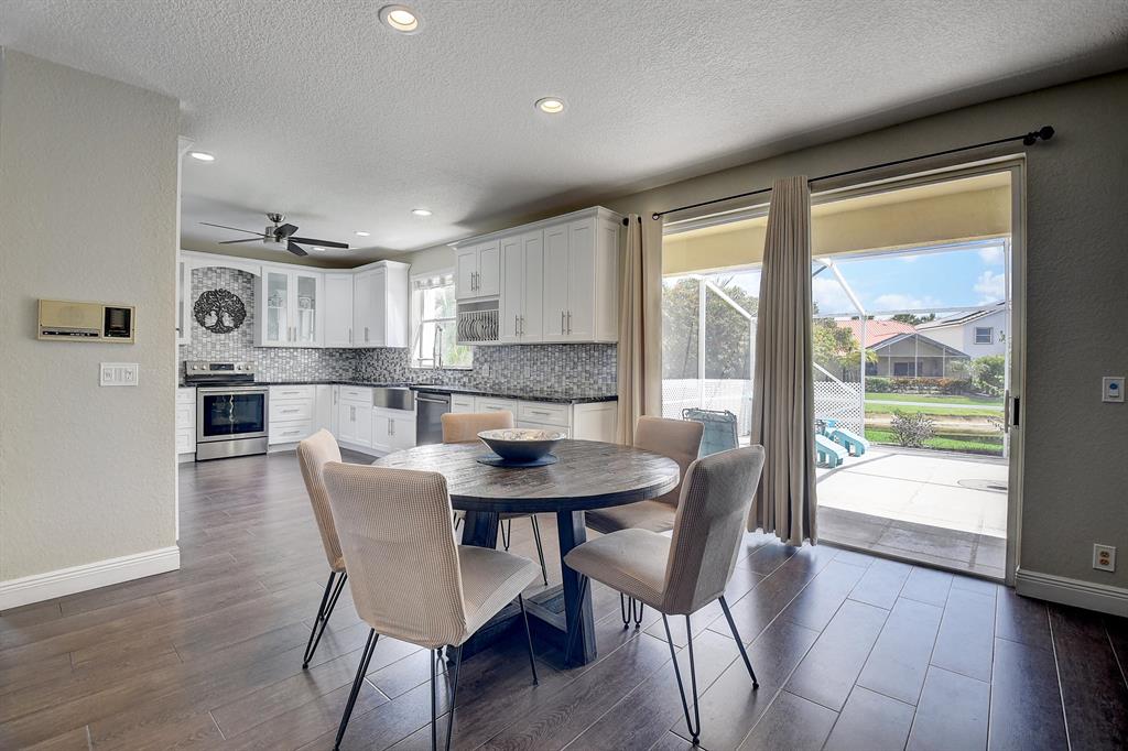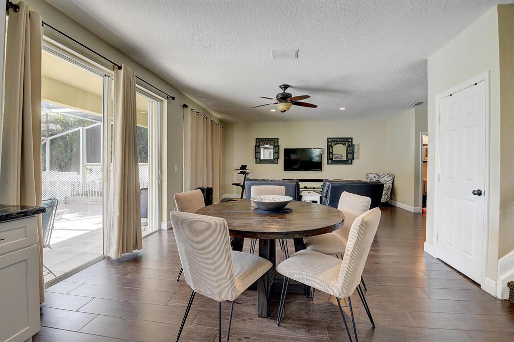 Upgraded throughout WOW WOW WOW ! Wood look tile floor throughout main level. New chefs delight white custom kitchen with plenty of cabinets and counter space. All bathrooms have gorgeous new tile, fixtures and more! Large Master en suite with wood laminate floors, walk in closet. sitting room/office and its own private balcony overlooking the sunsets. Plenty of storage space. Lakefront lot and charming screened in patio with room for a pool if desired. Larger lot with fenced in side yard and firepit. Hurricane shutters throughout. Rec Center includes 2 pools, tennis, basketball, pickleball and playground. Close to top schools, shopping, restaurants, and the largest park in two counties! 4th of July, food truck night, live concerts, and golf course, dog park and more!