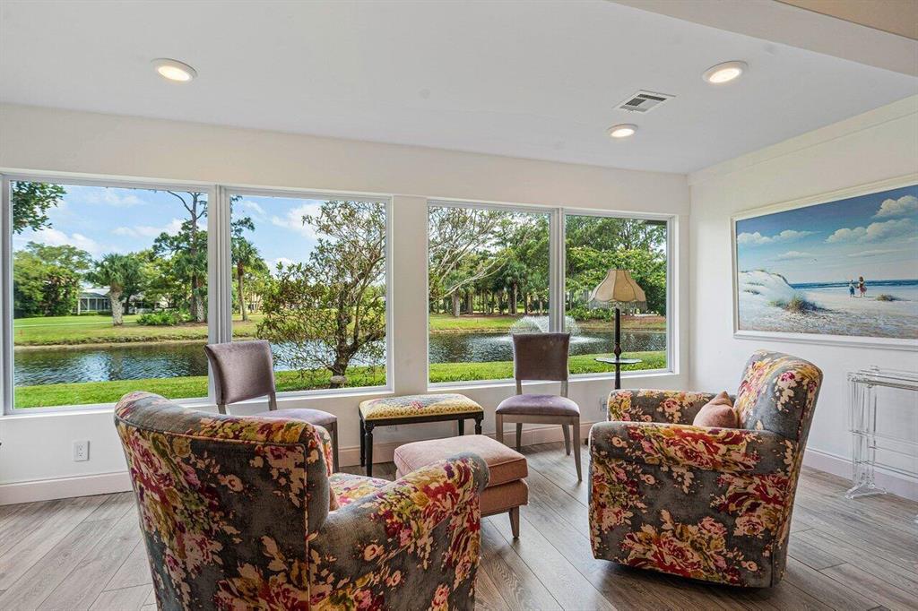 Fully renovated 3-bedroom, 2-bath house is situated in a picturesque location directly on the 6th hole of the West course, offering stunning views and a serene atmosphere. The open floor plan creates a spacious and inviting ambiance throughout the home.As you step inside, you are greeted by a bright and welcoming living area. Open floor plan with high ceilings. Large windows allow plenty of natural light to flood the space, accentuating the beauty of the surrounding landscape.The kitchen is a highlight of the home, featuring Italian made Bertazzoni appliances, sleek quartz countertops, and ample storage space. It seamlessly flows into the dining area, creating an ideal space for entertaining guests or enjoying family meals. Two bedrooms in the front of the house share a full bath