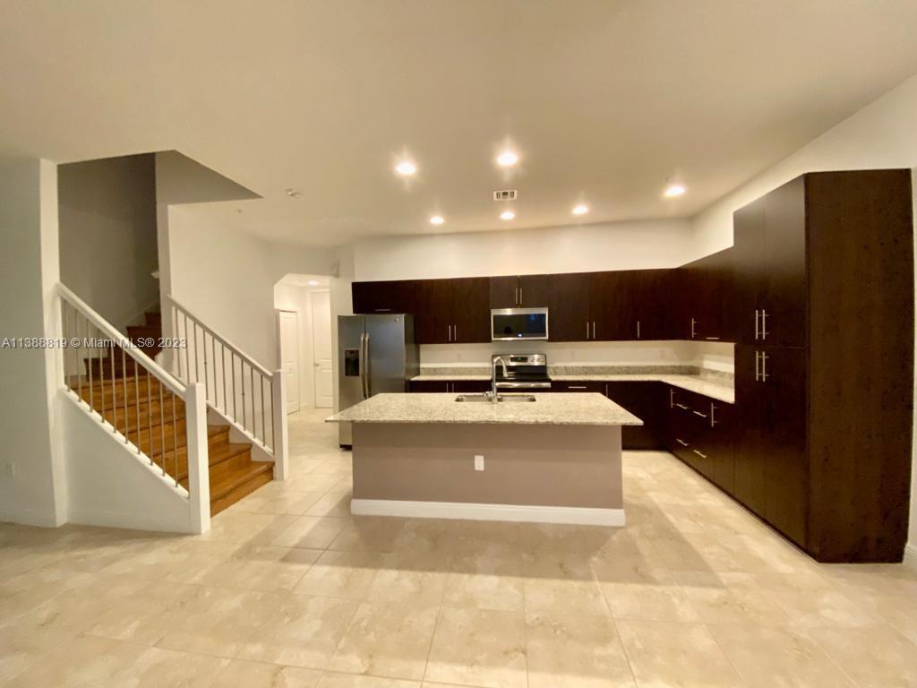 Spacious 2-story townhouse 3 BR & 2.5 baths with 1933 SF in the beautiful gated community of Centra Falls in Pembroke Pines, with 2 car garage, great open kitchen with large cabinets, granite island and countertop, plenty of storage all over, with high impact glass windows, 10’ ceilings, balcony in master. Low HOA maintenance fee. Fitness center, heated pool and Jacuzzi. Walking distance to high performance gym, coffee shops, restaurants, schools, and short drive to Memorial Hospital, CB Smith Park, and major shopping malls.