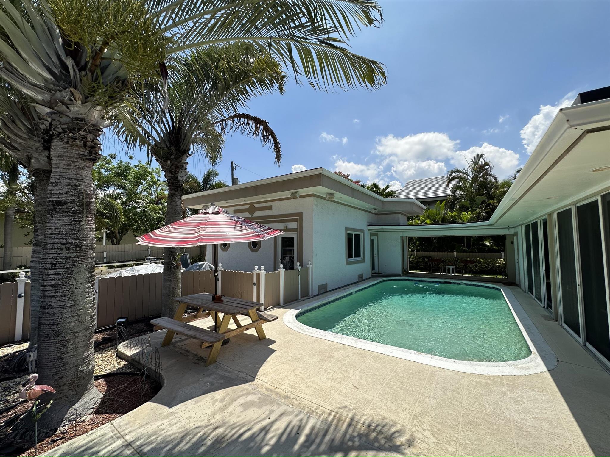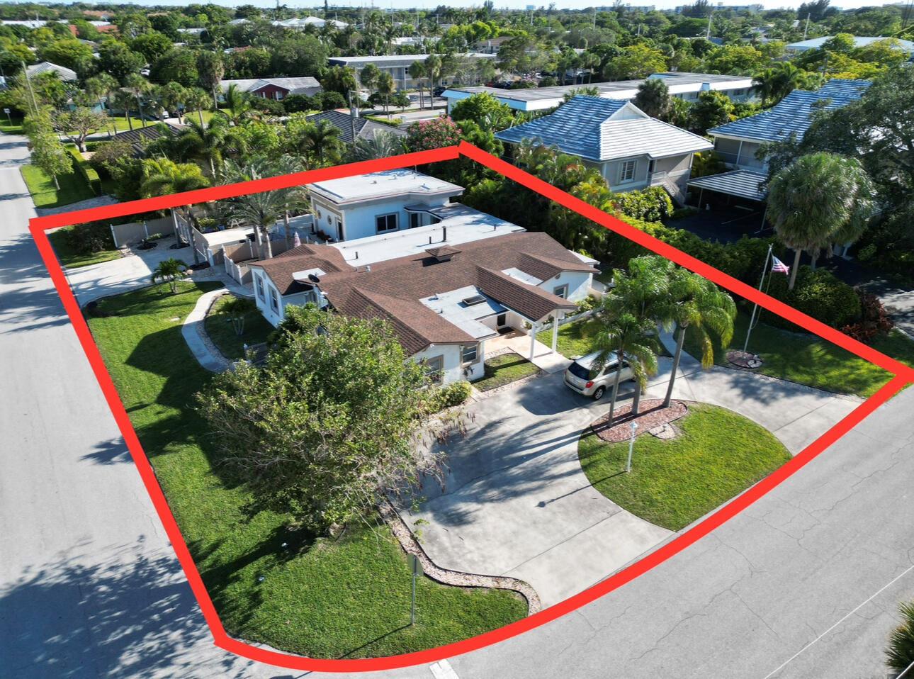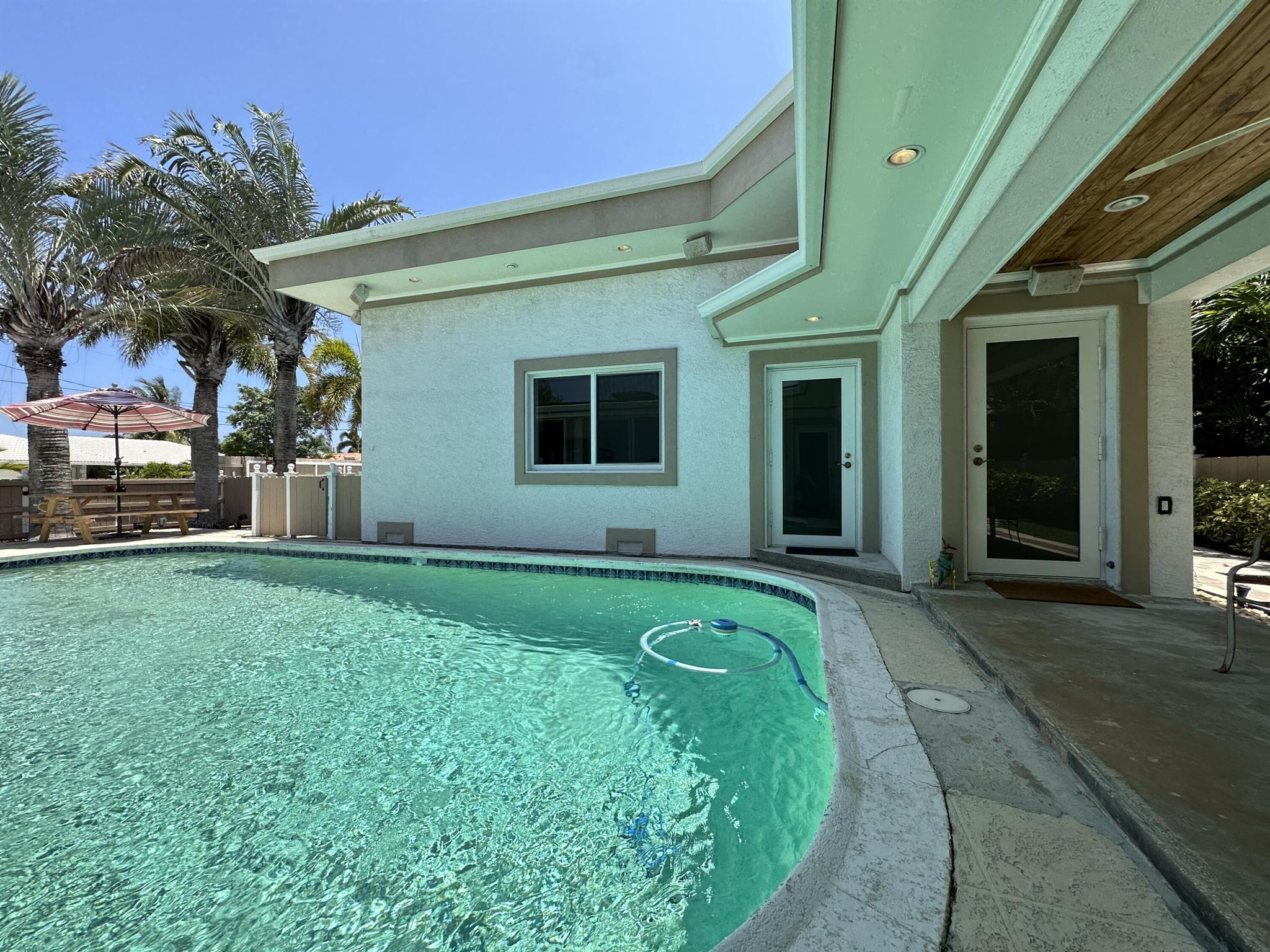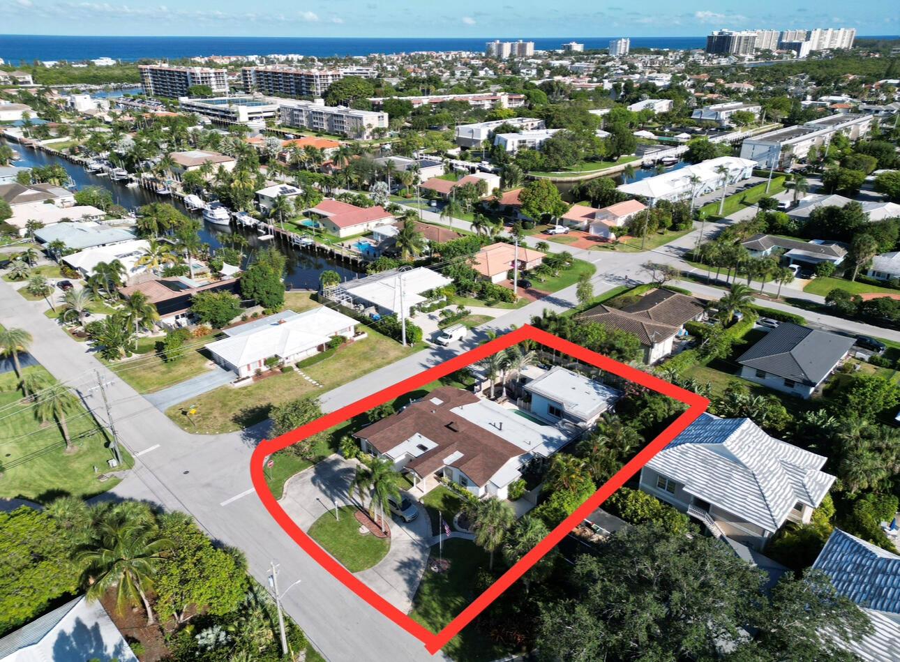 Rarely available oversized corner lot on .28 acres EAST of Federal Hwy. Located directly across from canal just off the intracoastal, which means building up may potentially provide water views. Custom build with a total of 4 bedrooms & 5.5 bathrooms. Main house consists of 2 bedrooms & 2.5 bathrooms along with a connected efficiency apartment with full bath & its own private entrance. Large covered patio provides additional living space with a built-in summer kitchen. Second building consists of a cabana bath for the pool & also a separate 1 bedroom efficiency apartment with full kitchen & private bath. Covered walkway connecting the 2 buildings. Corner lot provides 2 separate driveways. Property is immaculate & well maintained. Lots of potential for a family wanting some separate spaces