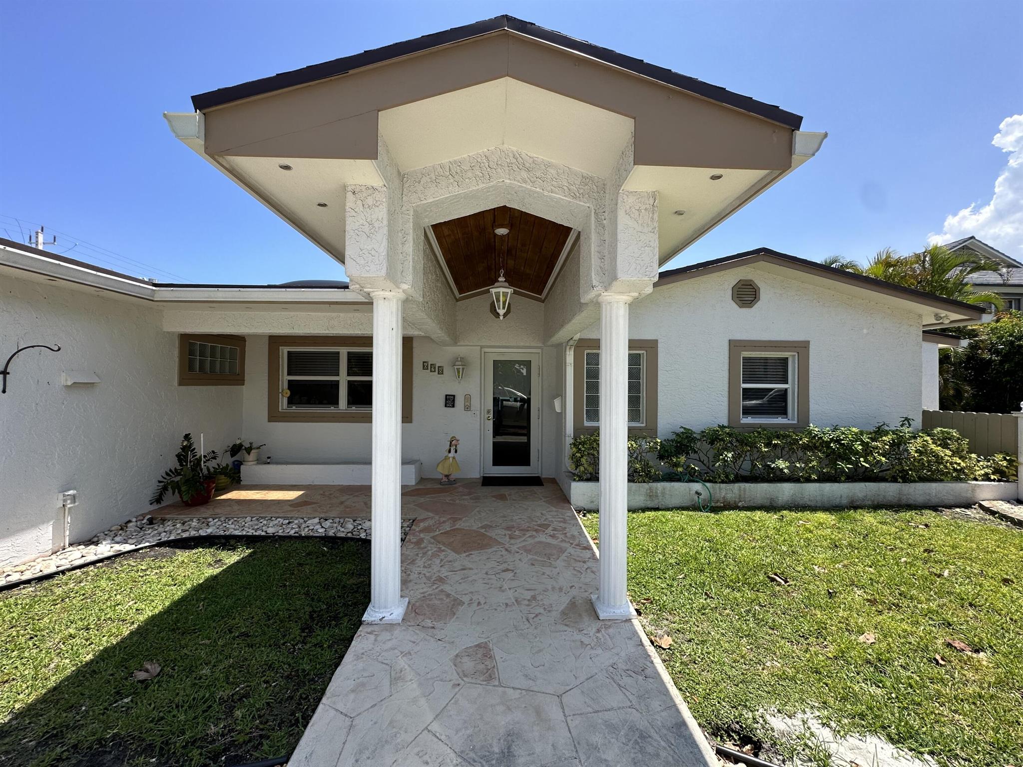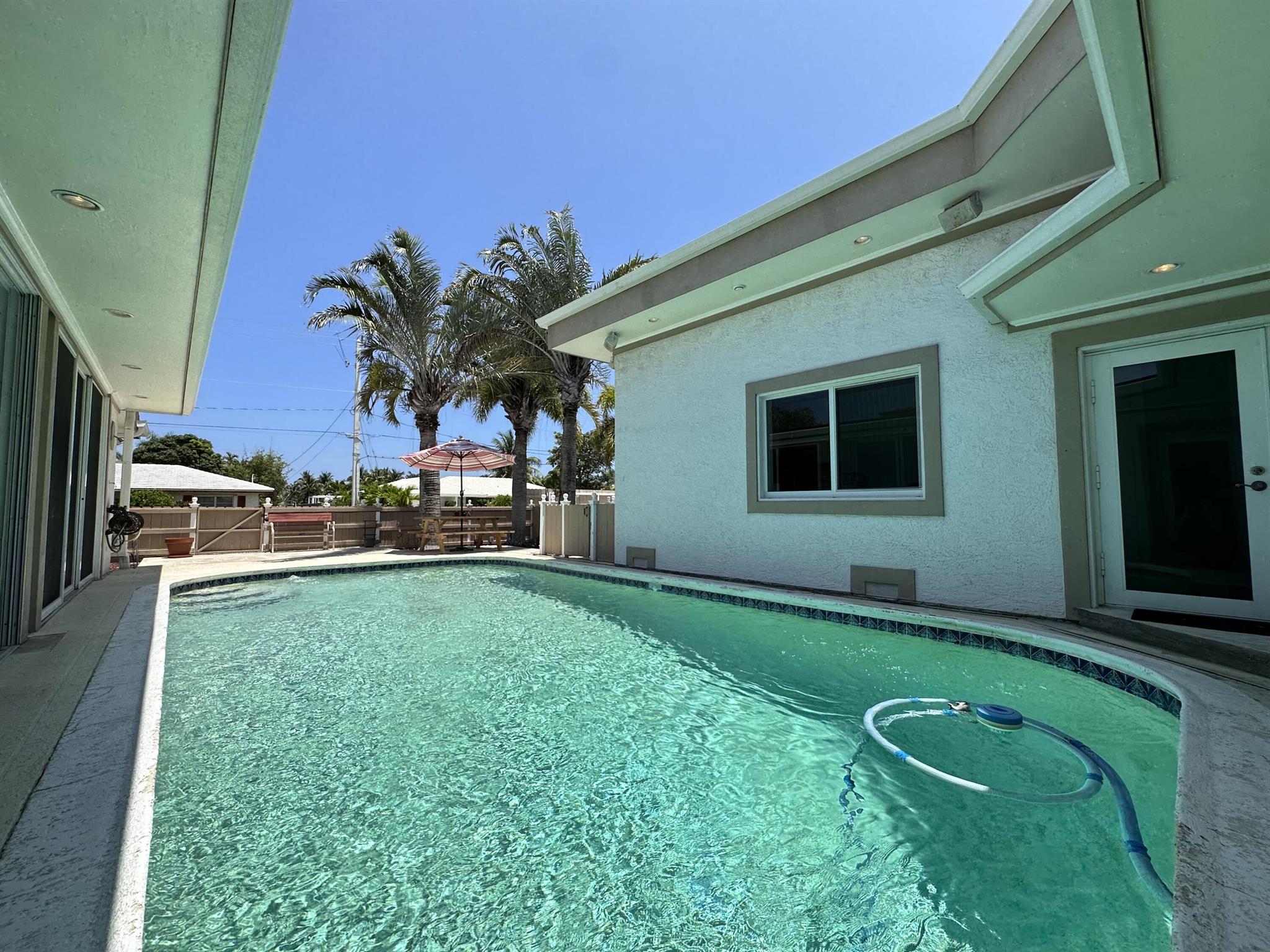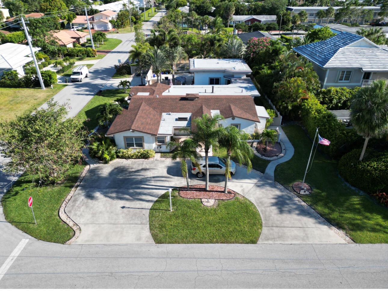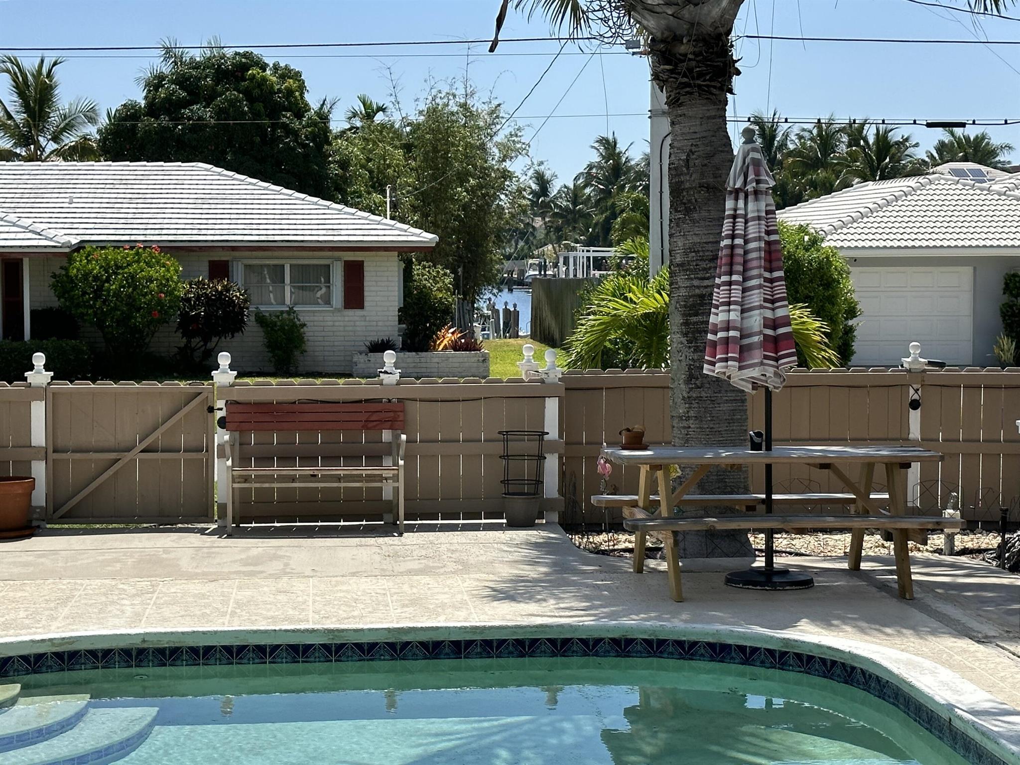 Rarely available oversized corner lot on .28 acres EAST of Federal Hwy. Located directly across from canal just off the intracoastal, which means building up may potentially provide water views. Custom build with a total of 4 bedrooms & 5.5 bathrooms. Main house consists of 2 bedrooms & 2.5 bathrooms along with a connected efficiency apartment with full bath & its own private entrance. Large covered patio provides additional living space with a built-in summer kitchen. Second building consists of a cabana bath for the pool & also a separate 1 bedroom efficiency apartment with full kitchen & private bath. Covered walkway connecting the 2 buildings. Corner lot provides 2 separate driveways. Property is immaculate & well maintained. Lots of potential for a family wanting some separate spaces