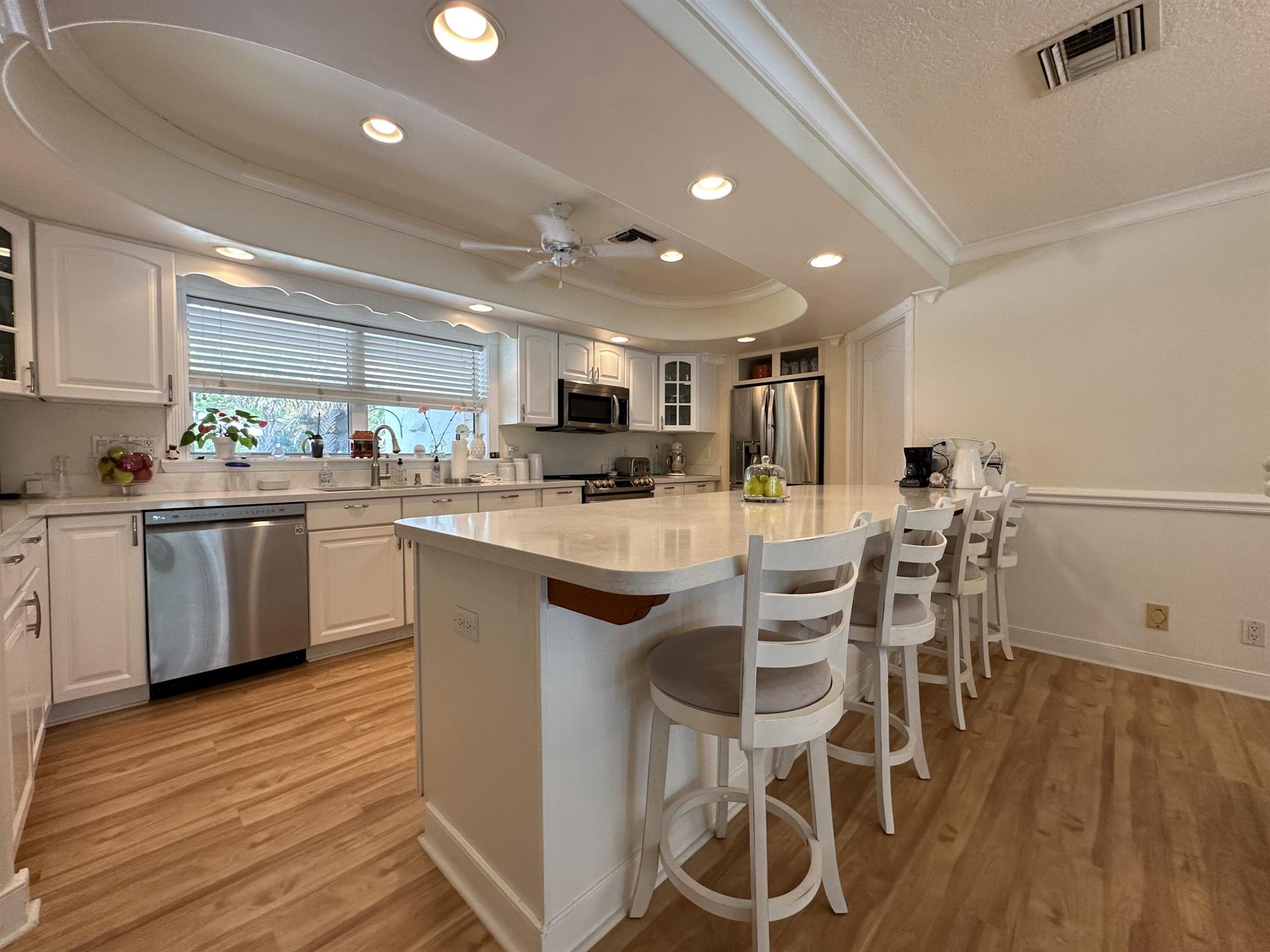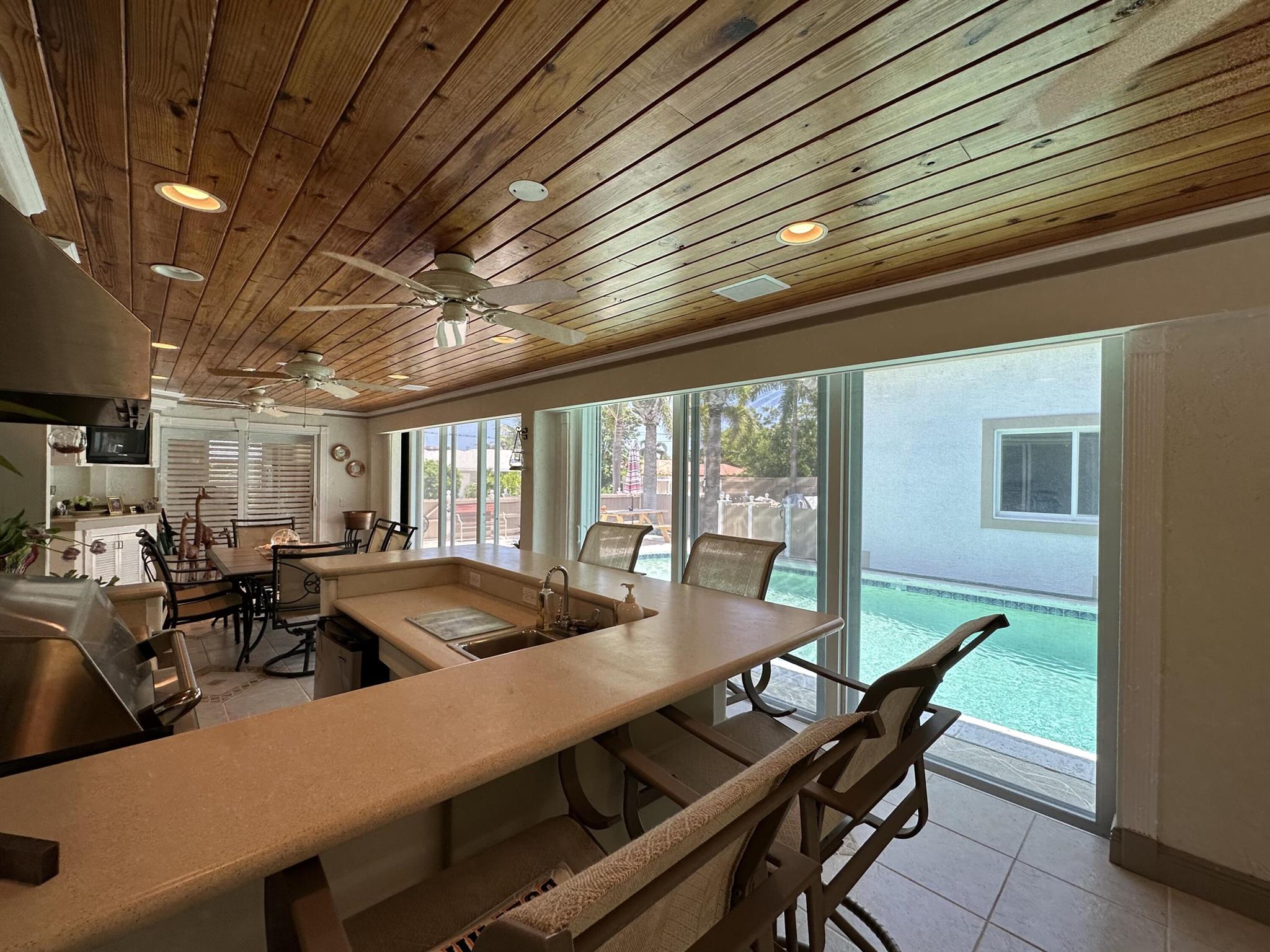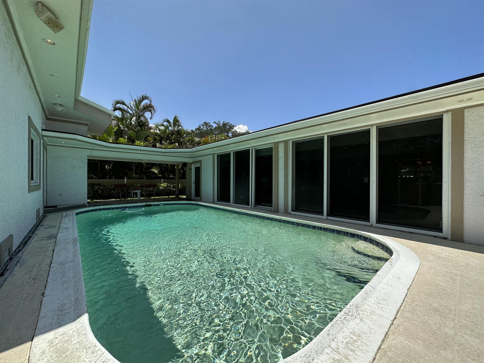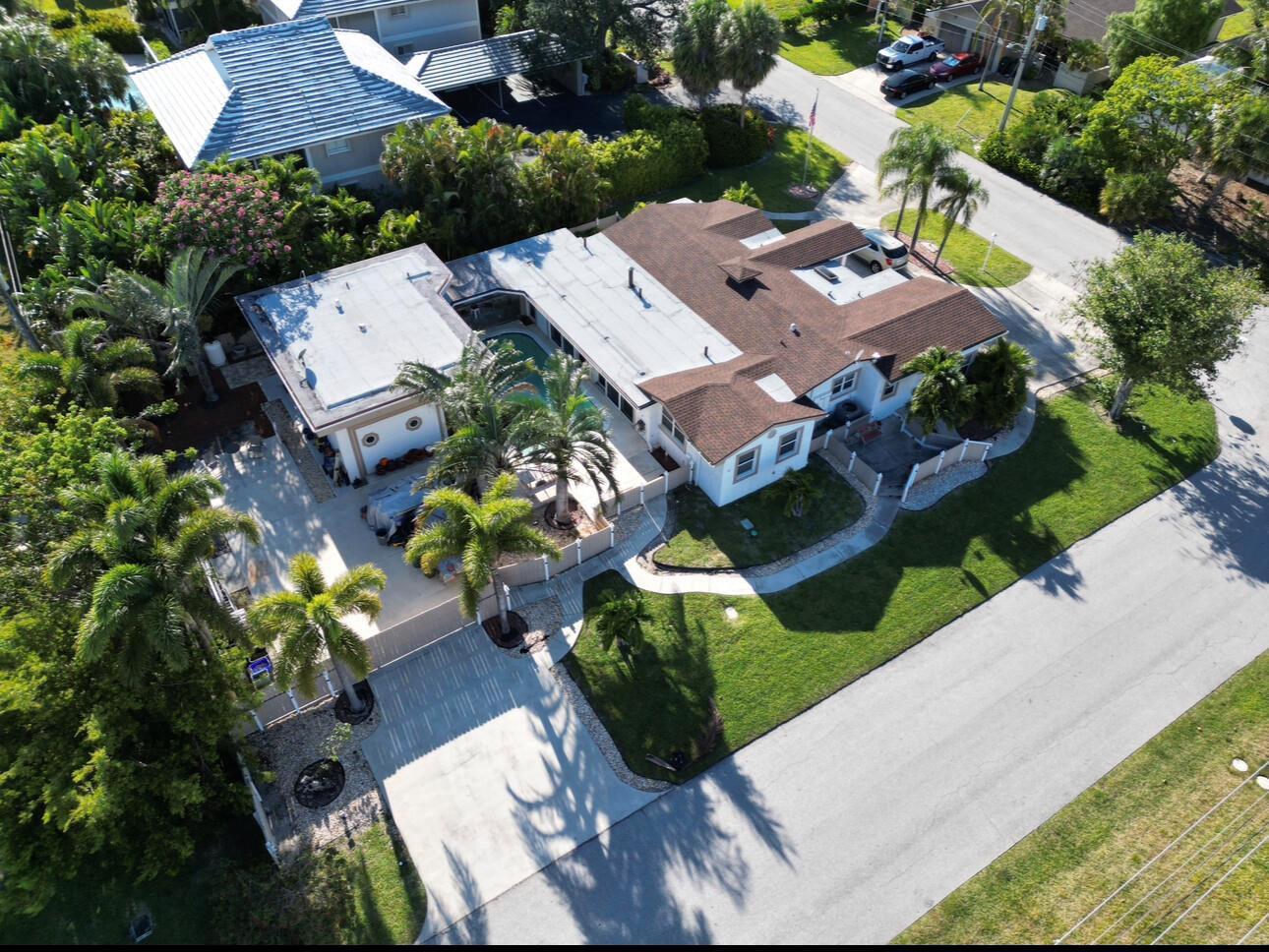 Rarely available oversized corner lot on .28 acres EAST of Federal Hwy. Located directly across from canal just off the intracoastal, which means building up may potentially provide water views. Custom build with a total of 4 bedrooms & 5.5 bathrooms. Main house consists of 2 bedrooms & 2.5 bathrooms along with a connected efficiency apartment with full bath & its own private entrance. Large covered patio provides additional living space with a built-in summer kitchen. Second building consists of a cabana bath for the pool & also a separate 1 bedroom efficiency apartment with full kitchen & private bath. Covered walkway connecting the 2 buildings. Corner lot provides 2 separate driveways. Property is immaculate & well maintained. Lots of potential for a family wanting some separate spaces