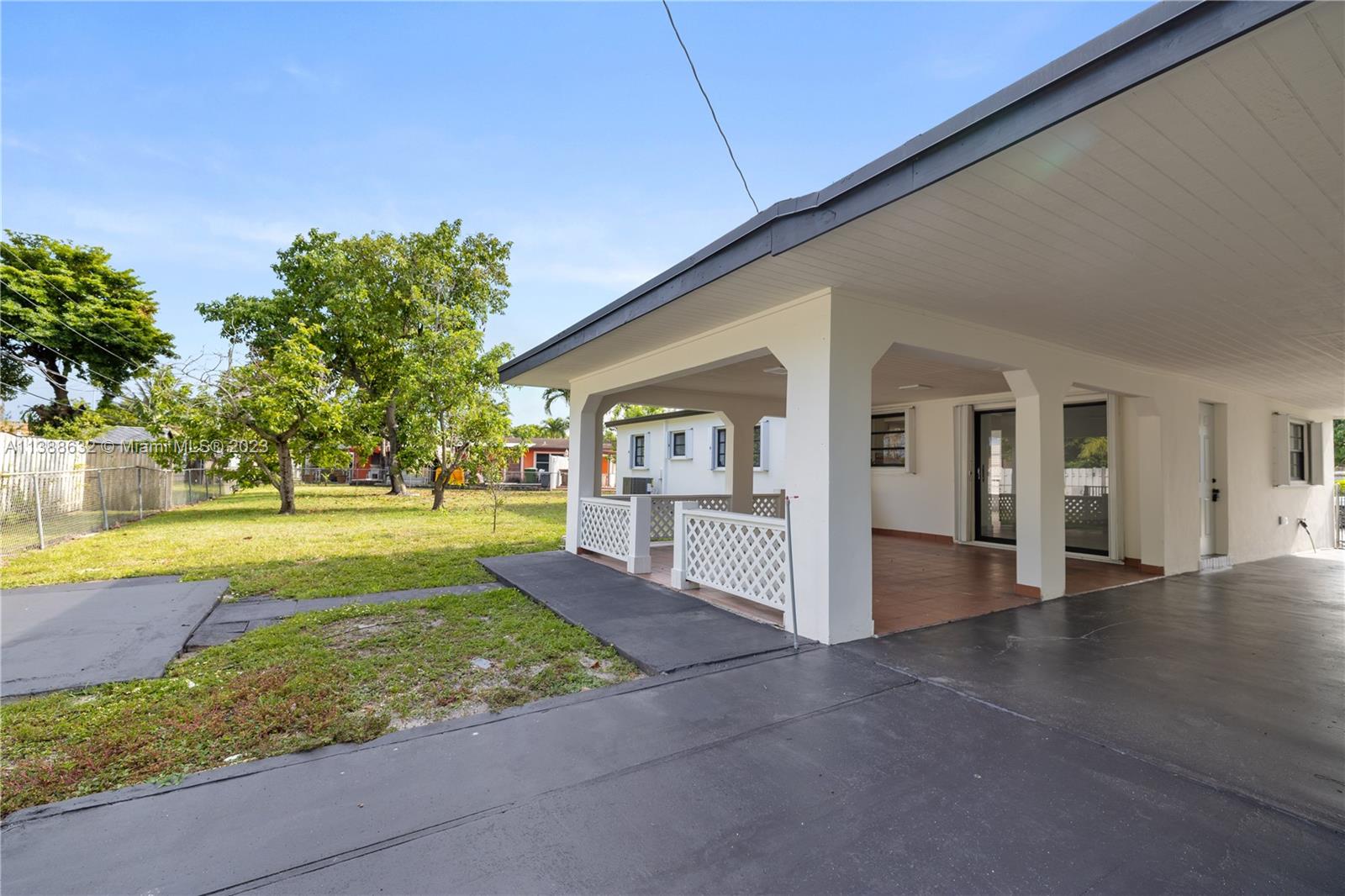 Beautiful West Hialeah Home with an OVERSIZED, PIE-SHAPED LOT that offers plenty of ROOM FOR A POOL OR FUTURE EXPANSION. RECENT UPGRADES INCLUDE, NEW ROOF, NEW AC SYSTEM, NEW FLOORING, and updated STAINLESS STEEL APPLIANCES. All of the windows and doors are STORM PROTECTED with ACCORDIAN SHUTTERS (SAVE $$$ ON INSURANCE). The kitchen and bathrooms need updating but this home is MOVE-IN READY and has tons of potential. The home features a VERY LARGE CARPORT that can accommodate approximately 4 CARS and a HUGE PATIO TERRACE that CAN EASILY BE ENCLOSED TO ENLARGE THE HOME or to GENERATE RENTAL INCOME. Just past the kitchen is a DEN WITH A PRIVATE ENTRANCE... again, more potential to use OR re-purpose for rental income. See broker remarks for showing instructions!
