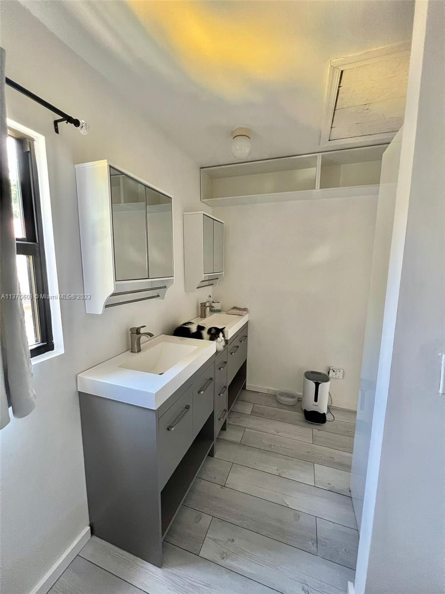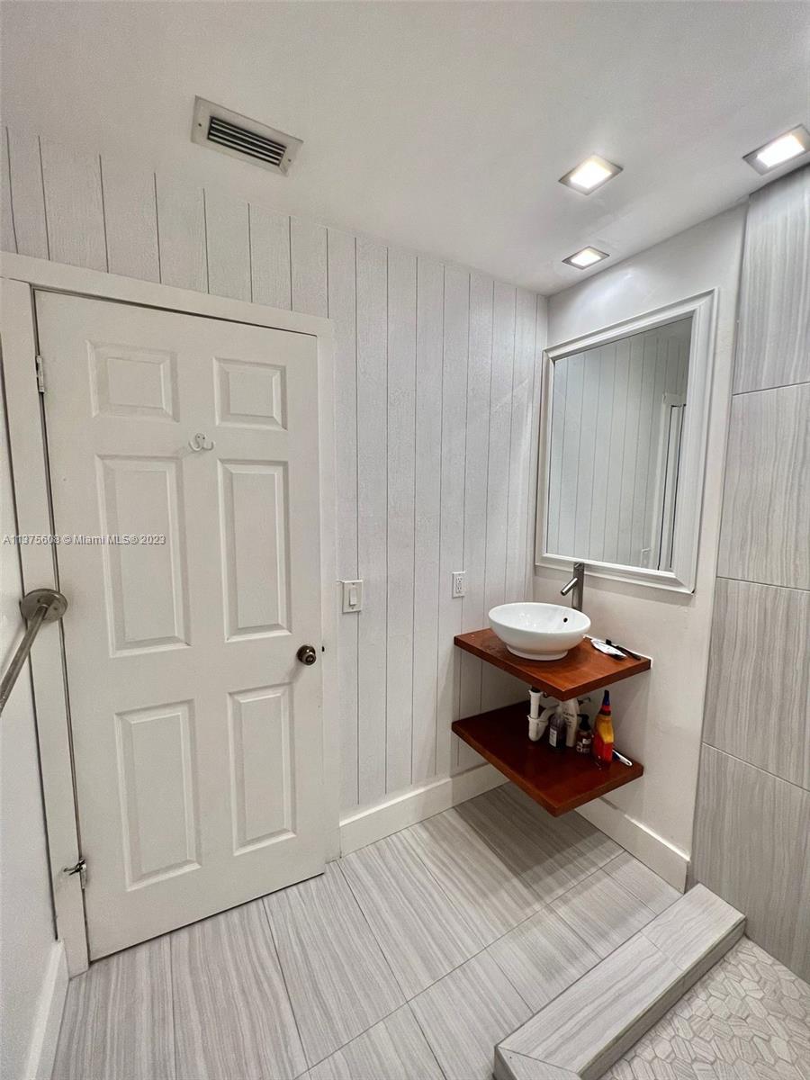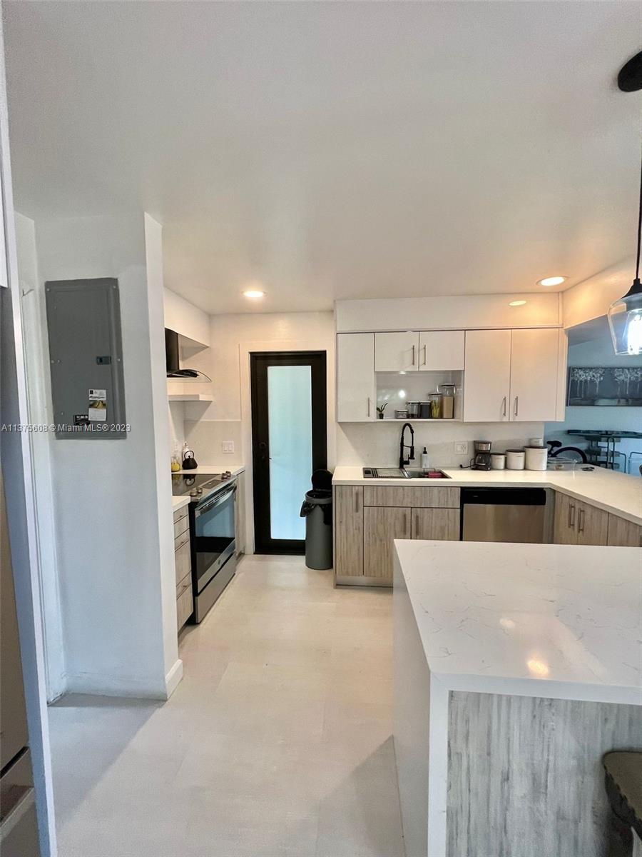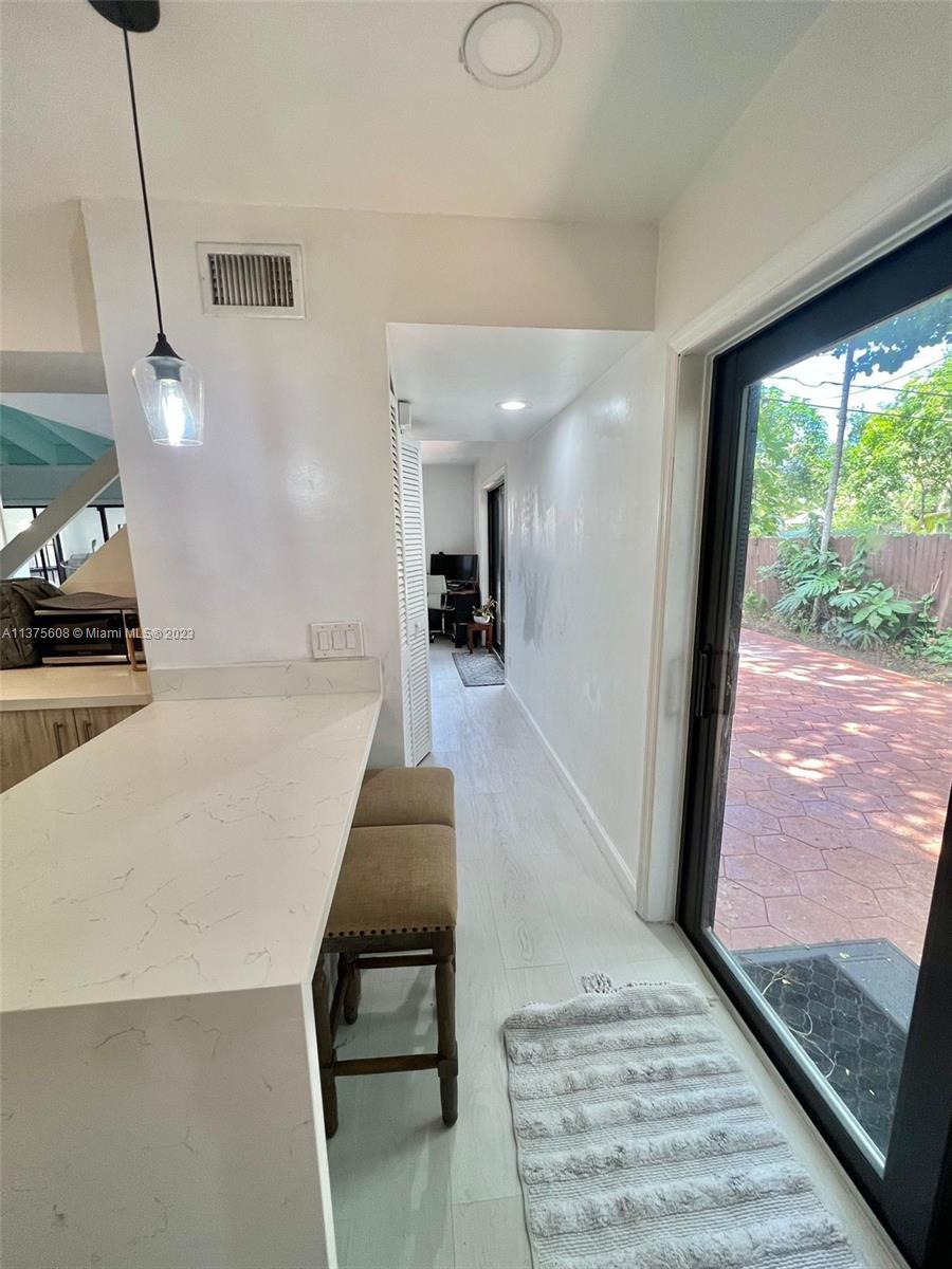 Amazing corner townhouse with extra-large private patio [backyard] (Great for pets, large family gatherings, gardening). Home has the barnstyle beach feel to it. Only unit in the bldg to have an extra rm downstairs to use as an office or 3rd bedrm. Updated Floors & kitchen with stainless steel appliances - Hurricane Impact Windows. Updated half bathrm on 1st floor. Washer and Dryer in the unit. Beautiful wood beams on the ceiling in the living room (Vaulted ceiling). Updated & modern looking large master bedrm w balcony & bath with beautiful, modern. Renovated Large walk-in closets! AC and water heater fairly new. Close to the beaches, Young Circle, Aventura Mall & Only one block west of US1. No pet restrictions. Low HOA fees. Truly a find! Do not miss this opportunity!