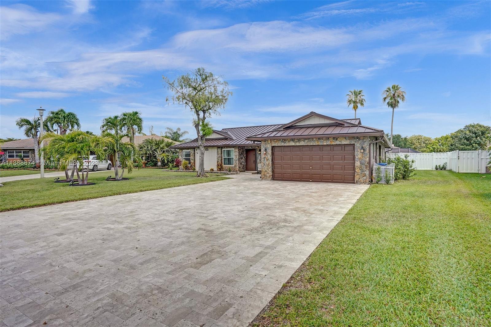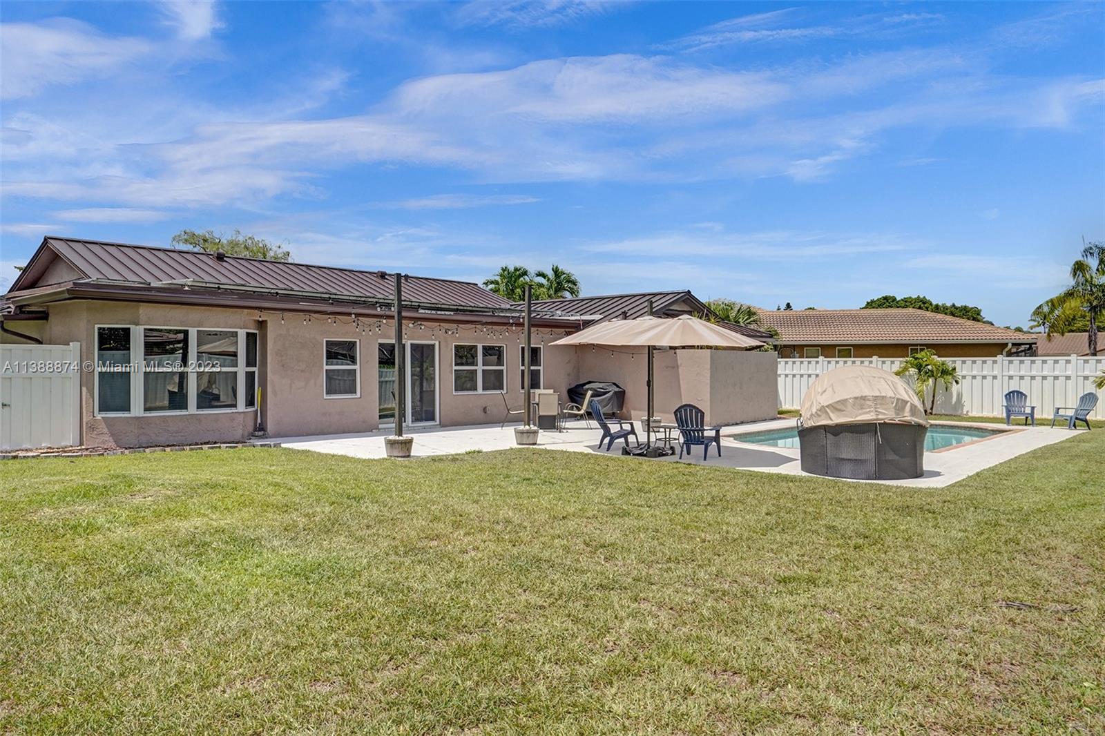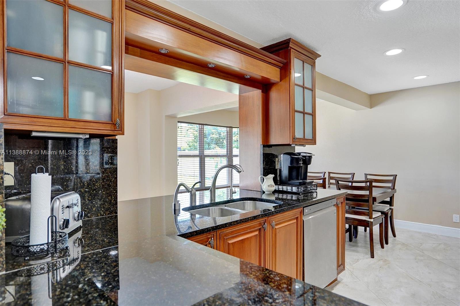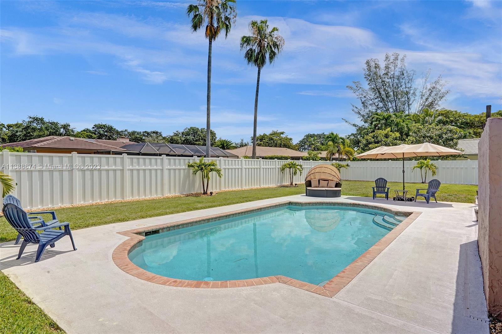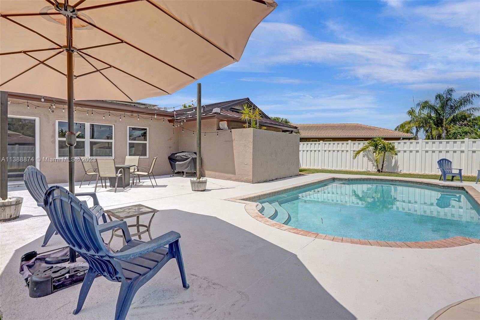 Meticulous Coral Springs 4 bed 2 bath 2 car garage home on a private cul de sac. Home features gourmet kitchen with granite counters, custom wood cabinets, cooking island & SS appliances, vaulted ceiling, Florida room, formal dining room, laundry room, built-in dry bar w/wine cooler & upgraded bathrooms. Primary suite features a spacious bedroom with a walk-in closet. Primary bathroom suite features dual sinks & rain head shower with detailed stone tile work. Impact windows, gutters, RainSoft water treatment system, RO system, new driveway and many more upgrades. Spacious Backyard with crystal clear salt water pool for outdoor entertaining.NO HOA.