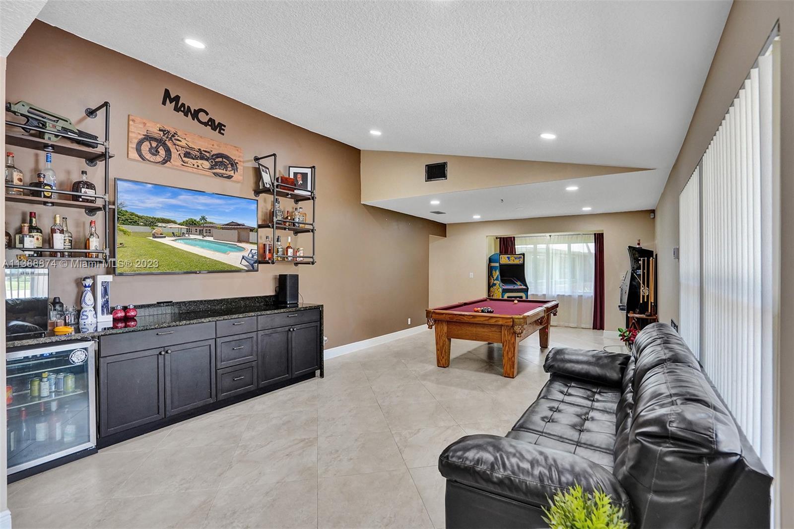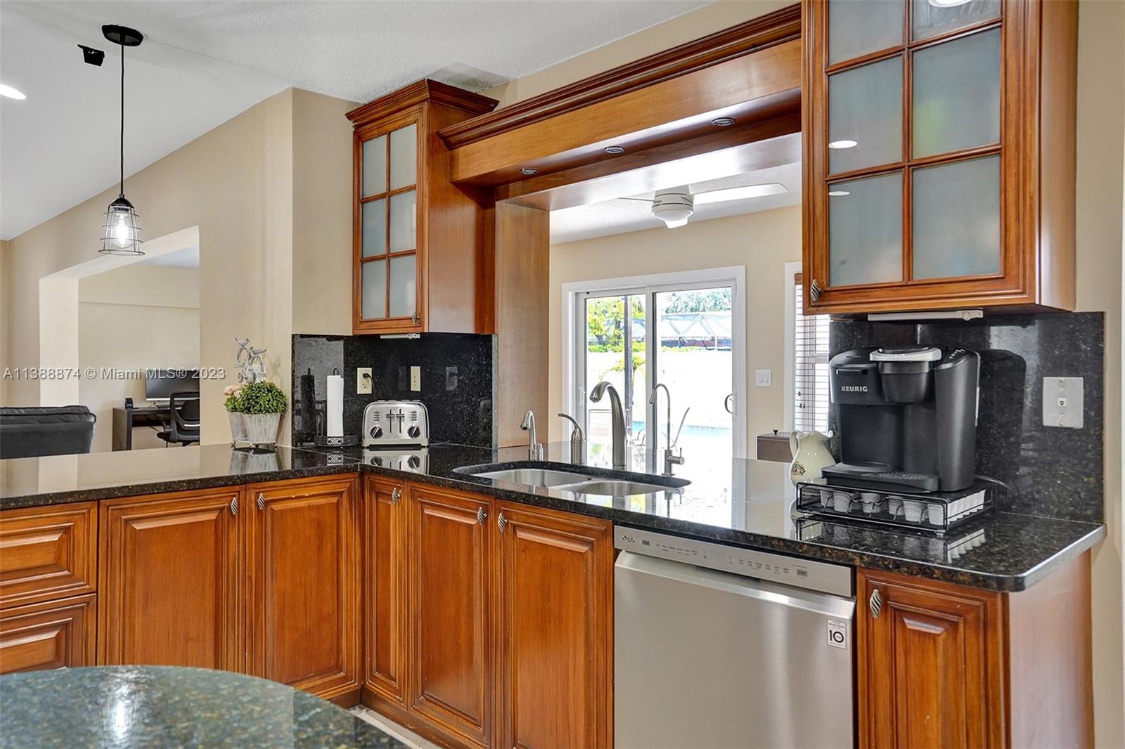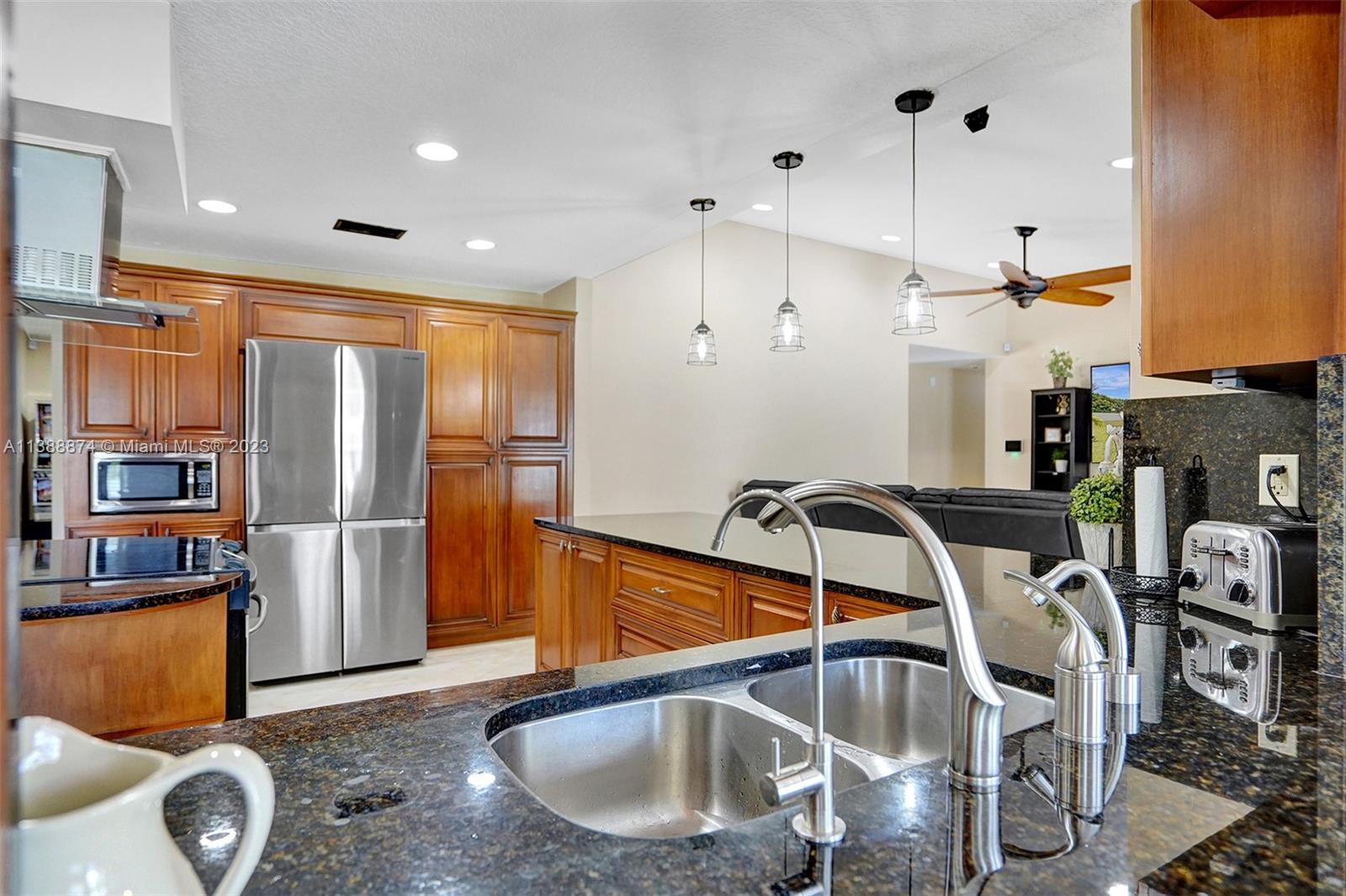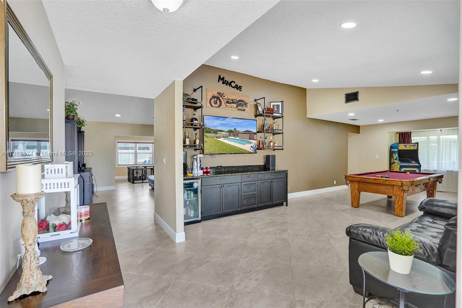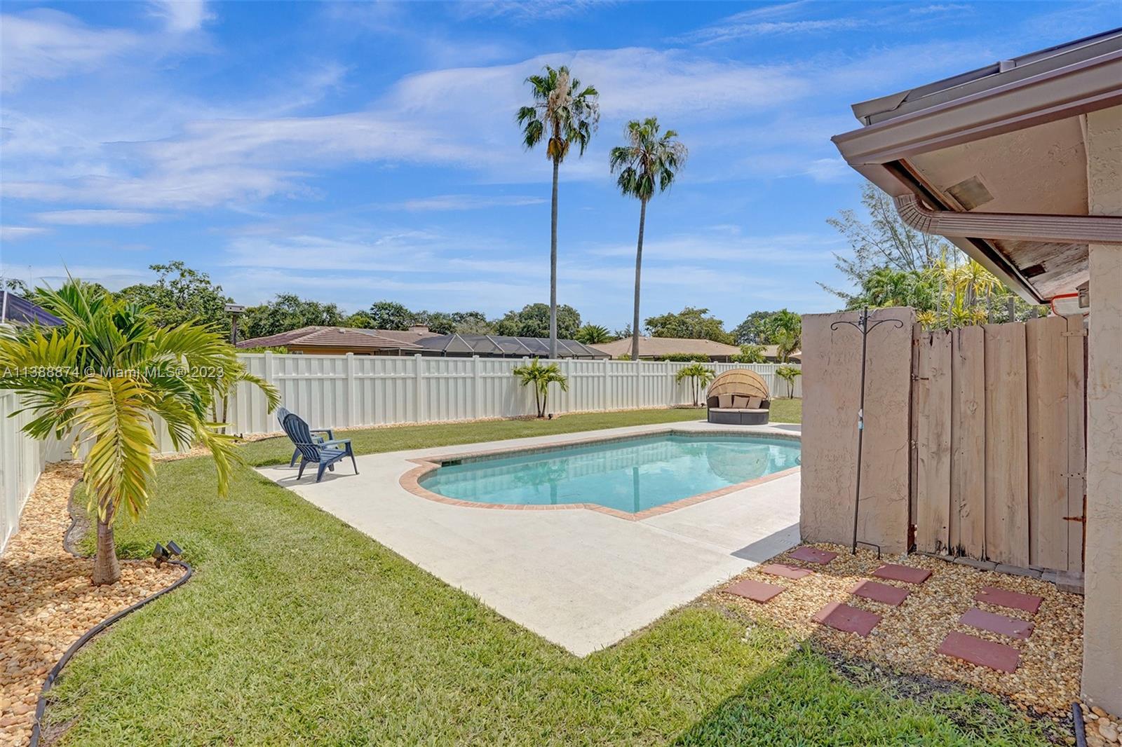 Meticulous Coral Springs 4 bed 2 bath 2 car garage home on a private cul de sac. Home features gourmet kitchen with granite counters, custom wood cabinets, cooking island & SS appliances, vaulted ceiling, Florida room, formal dining room, laundry room, built-in dry bar w/wine cooler & upgraded bathrooms. Primary suite features a spacious bedroom with a walk-in closet. Primary bathroom suite features dual sinks & rain head shower with detailed stone tile work. Impact windows, gutters, RainSoft water treatment system, RO system, new driveway and many more upgrades. Spacious Backyard with crystal clear salt water pool for outdoor entertaining.NO HOA.
