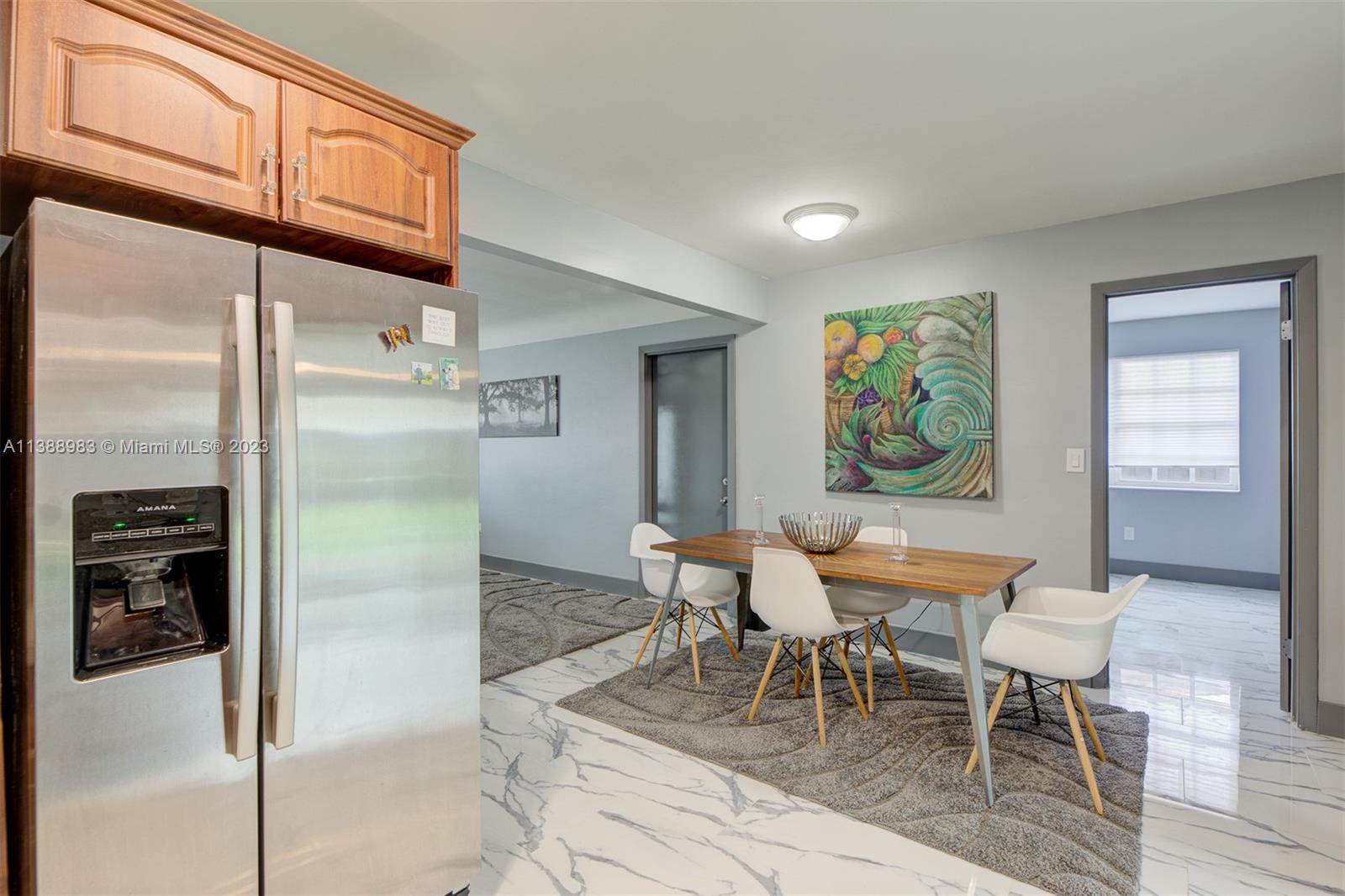 Nicely done 4 bedroom, 2 bath home with a garage. This home has many features including; oversized corner lot, stainless steel appliances, modern bathrooms, spacious open floor plan, large utility room, mature landscaping, new energy efficient A/C, separate living and dining area, no HOA fees, and lots of parking. Great home in a great East Pompano Location. New 6 feet privacy fence. New A/C including complete duc work replacement. LOTS OF NEW IMPACT GLASS Easy to Show!! Actual Living Sqft 1,500 as per Owner