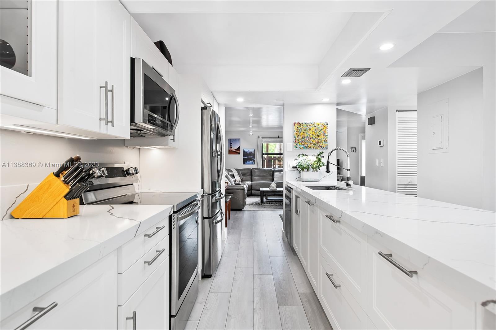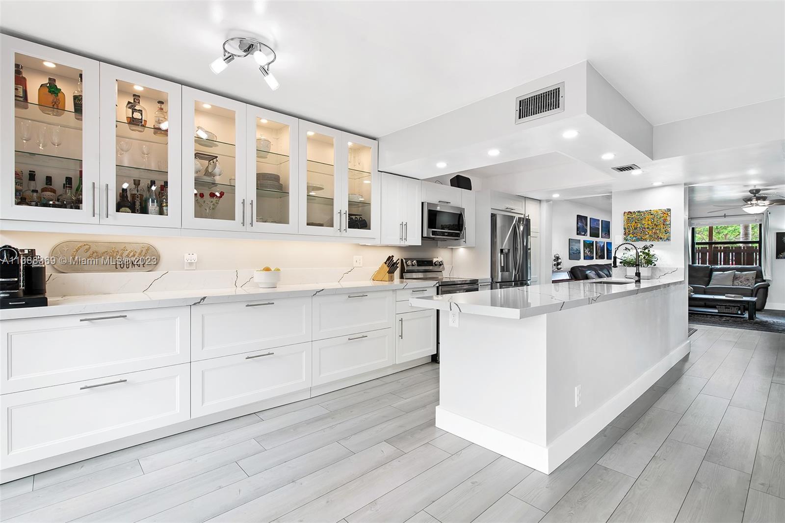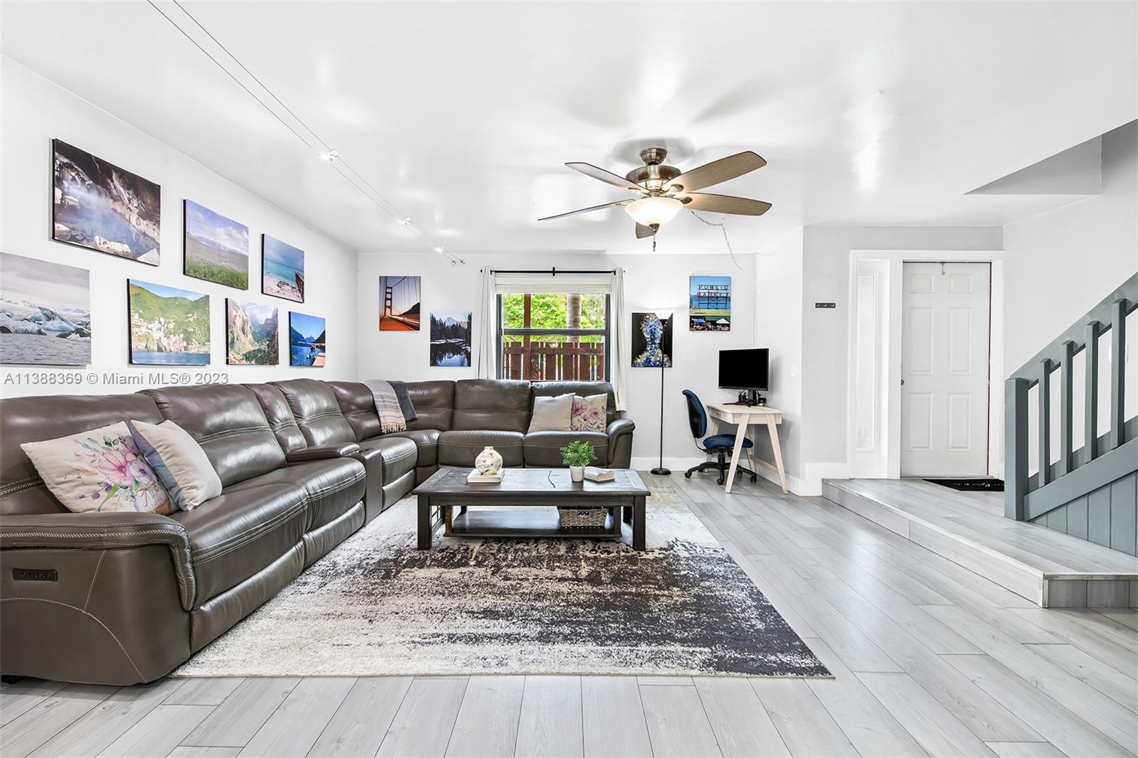 Stunningly renovated lake-side townhouse in the heart of Plantation. Step inside to the large living room that flows through to the kitchen and dining spaces. Entertainers will be thrilled by the beautiful kitchen with extended cabinetry and large island topped w/ white quartz countertops that opens up to the oversized deck and tranquil lake views. The first level features a 1/2 bath, laundry and cleverly added large storage spaces. Upstairs you will find a primary bedroom with updated ensuite bath and two spacious guest bedroom that share a guest bath. Impact glass/doors throughout. 2 assigned parking spaces. Community features a clubhouse, pool and tennis court. Fiber optic cable available. Convenient location near shopping, restaurants, schools & highways.