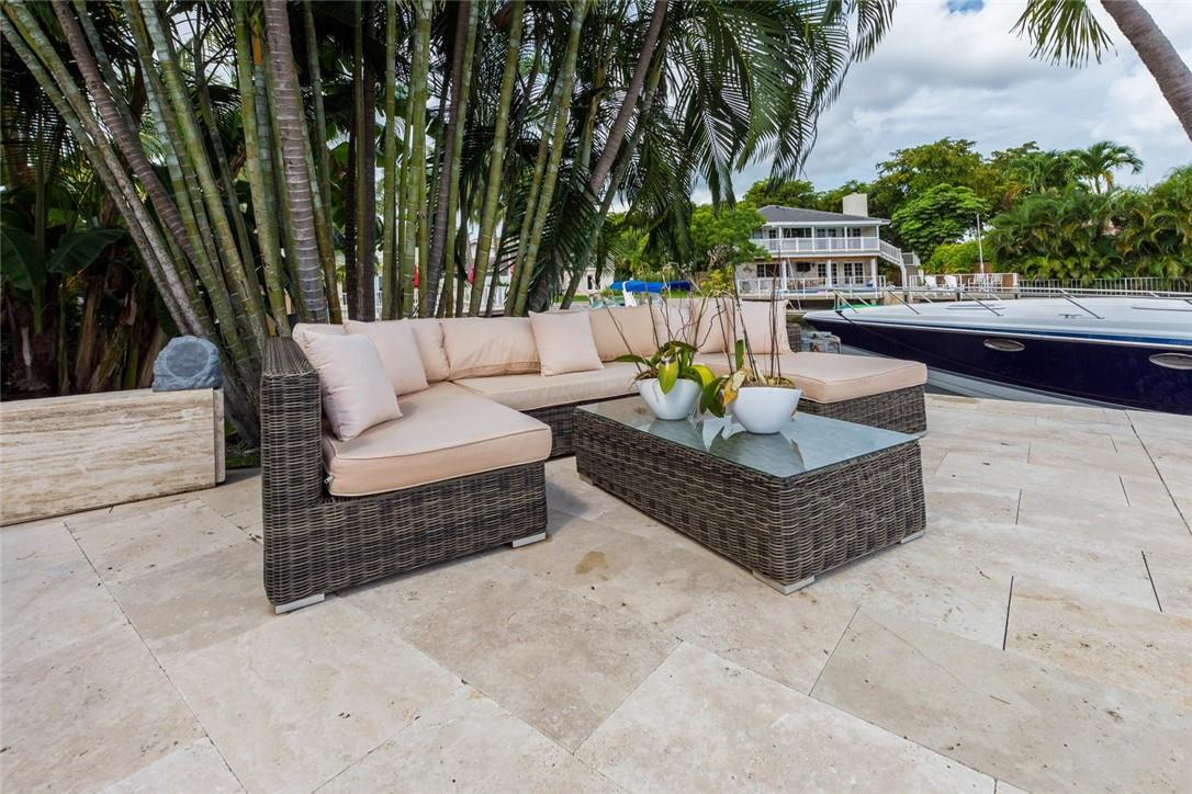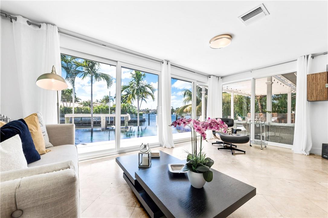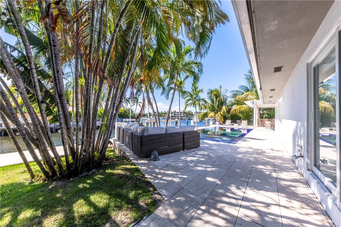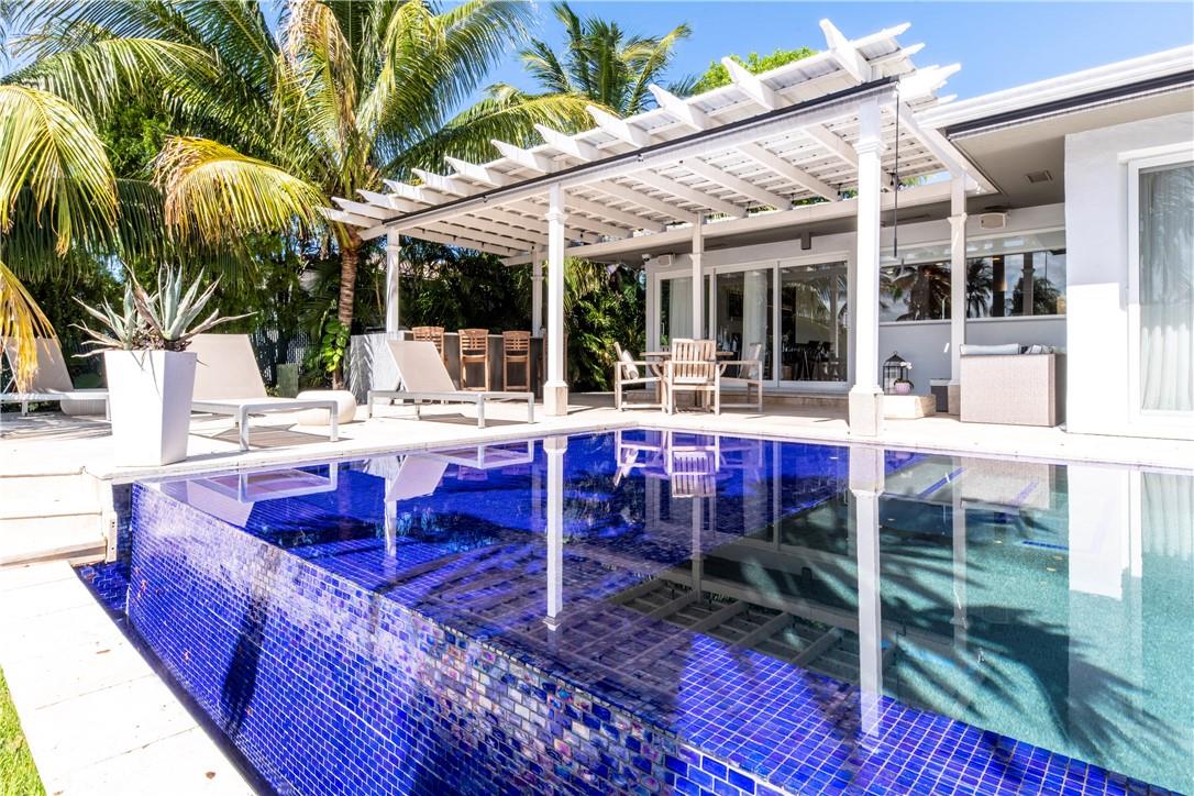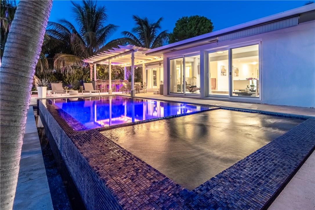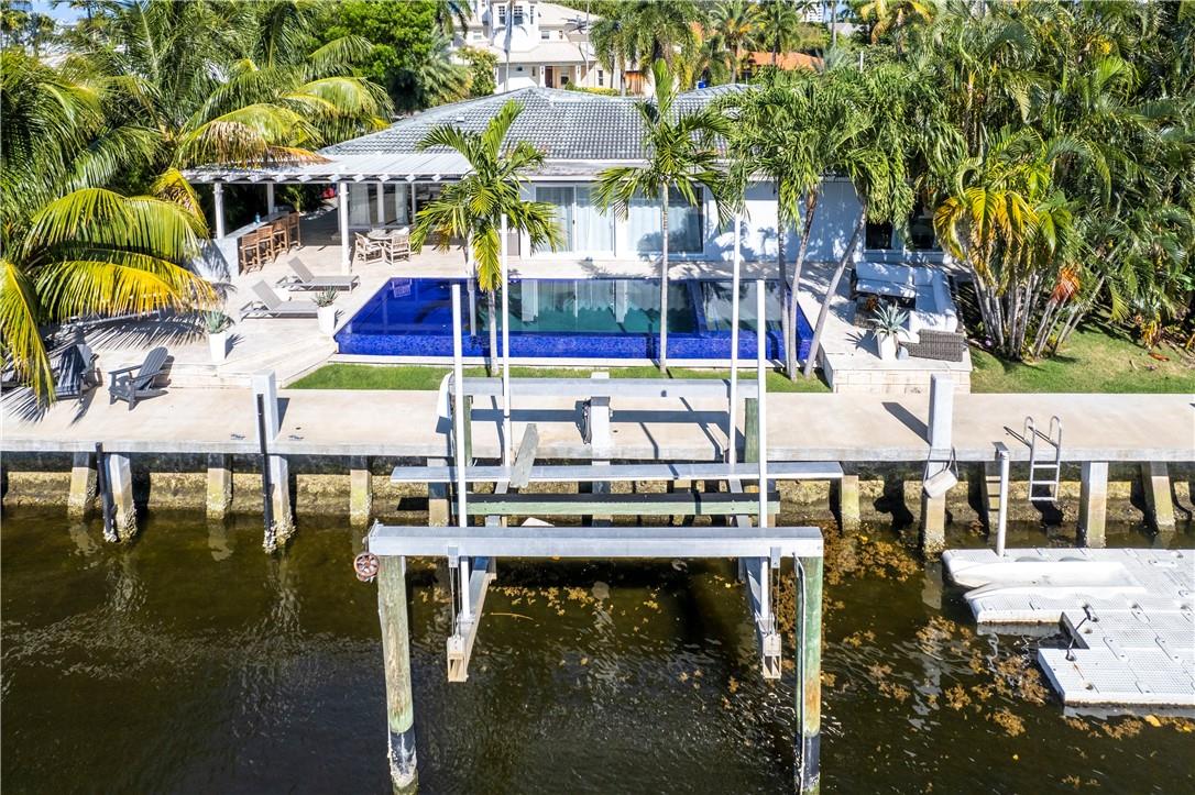 Breathtaking views of Lake Santa Barbara - This beautiful home is fully upgraded and has 4 Bedrooms, a Den/Office that can serve as a guest room, and 3 Full Baths. Eat-in Gourmet Kitchen, Custom Cabinets, Granite Counters, all new appliances, Saturnia Marble, Brazilian Cherry Hardwood Floors in Master Bedroom. Features open floor plan, resort-style infinity heated pool, and spa, New boat dock, boat lift, outdoor kitchen and more! Located in the nicest neighborhood in East Pompano Beach, East of US1 on a Cul-de-Sac situated directly on Lake Santa Barbara, only minutes to the beach! Lots of smart home features. Available now.