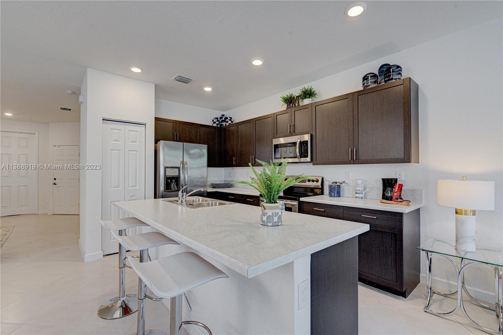 Spectacular single-family turn-key home fully furnished and professionally decorated, located at the gated Aquabella Community with a beautiful 4 bedrooms,2 and a half bathrooms, private patio, and a covered garage. The Aquabella clubhouse has amenities resort style. Pool, gym, toboggan for children, cabanas, grills, and much more. Your kids will have fun at the kid's splash park. The house has also Accordions hurricane shutters on doors and windows to be ready for the hurricane season. Please see the attachments.
